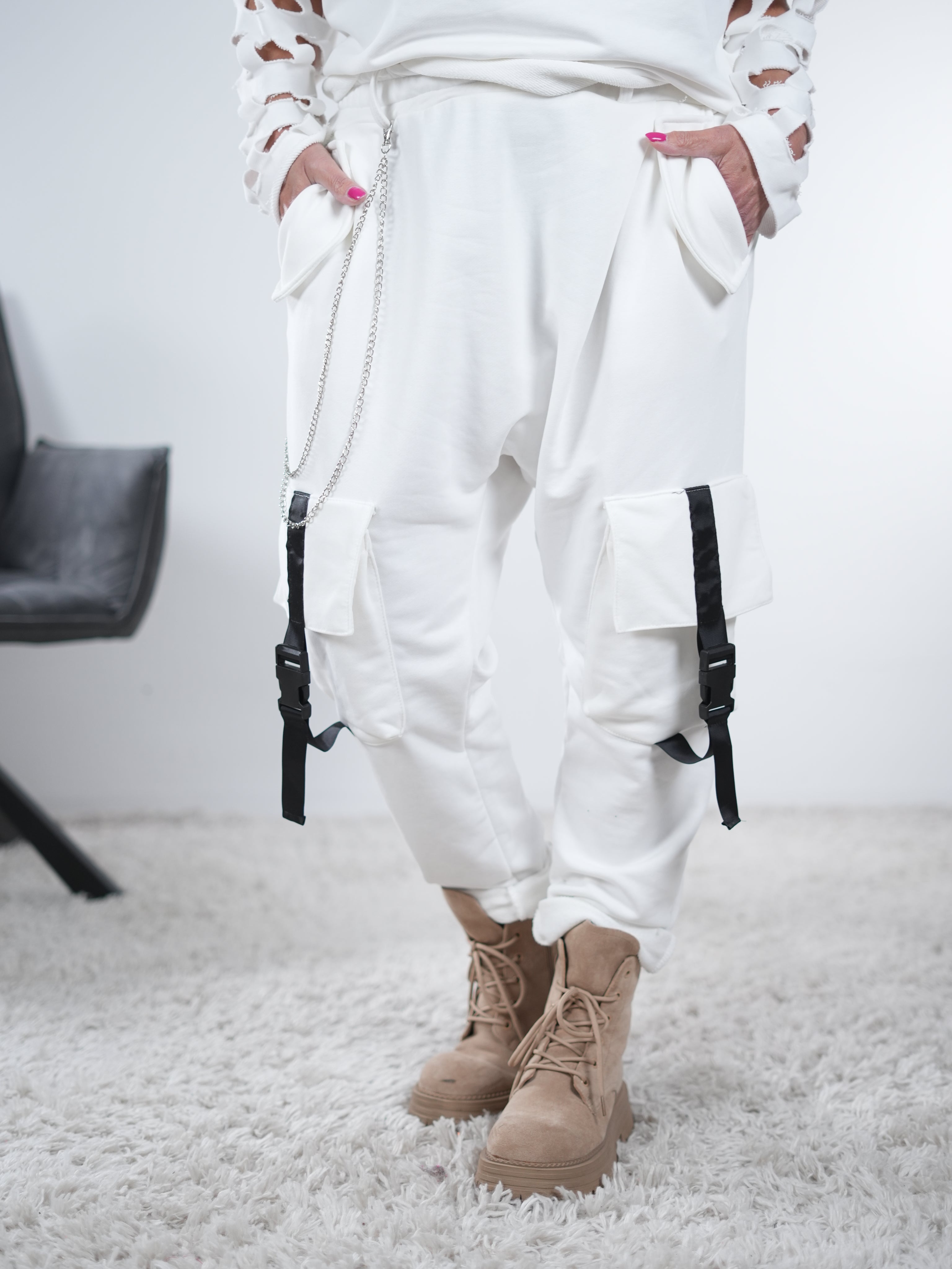 Velour Hose mit großen Eingriffstaschen