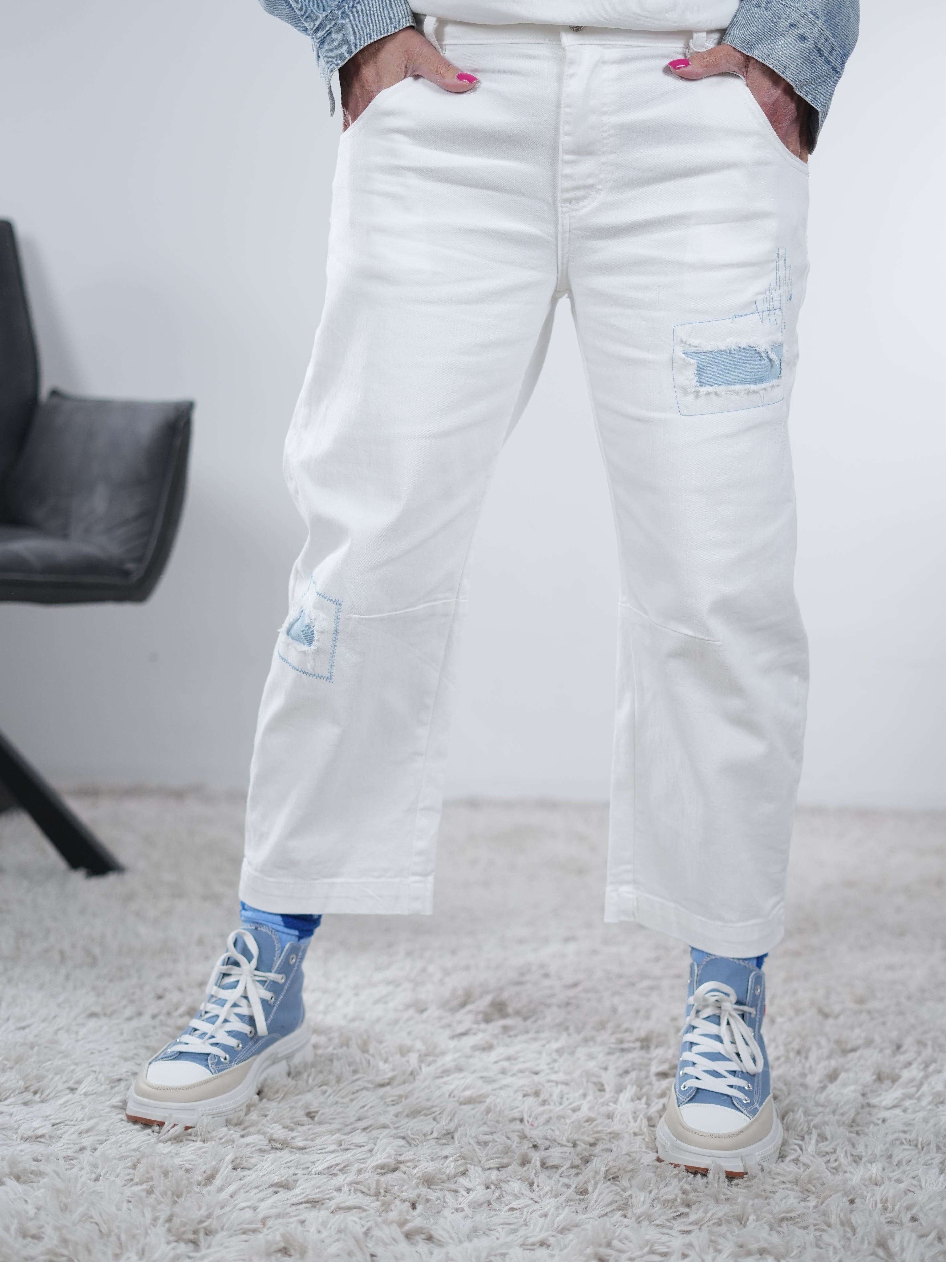 Blue Jeans mit Umschlag und buntem Schriftzug