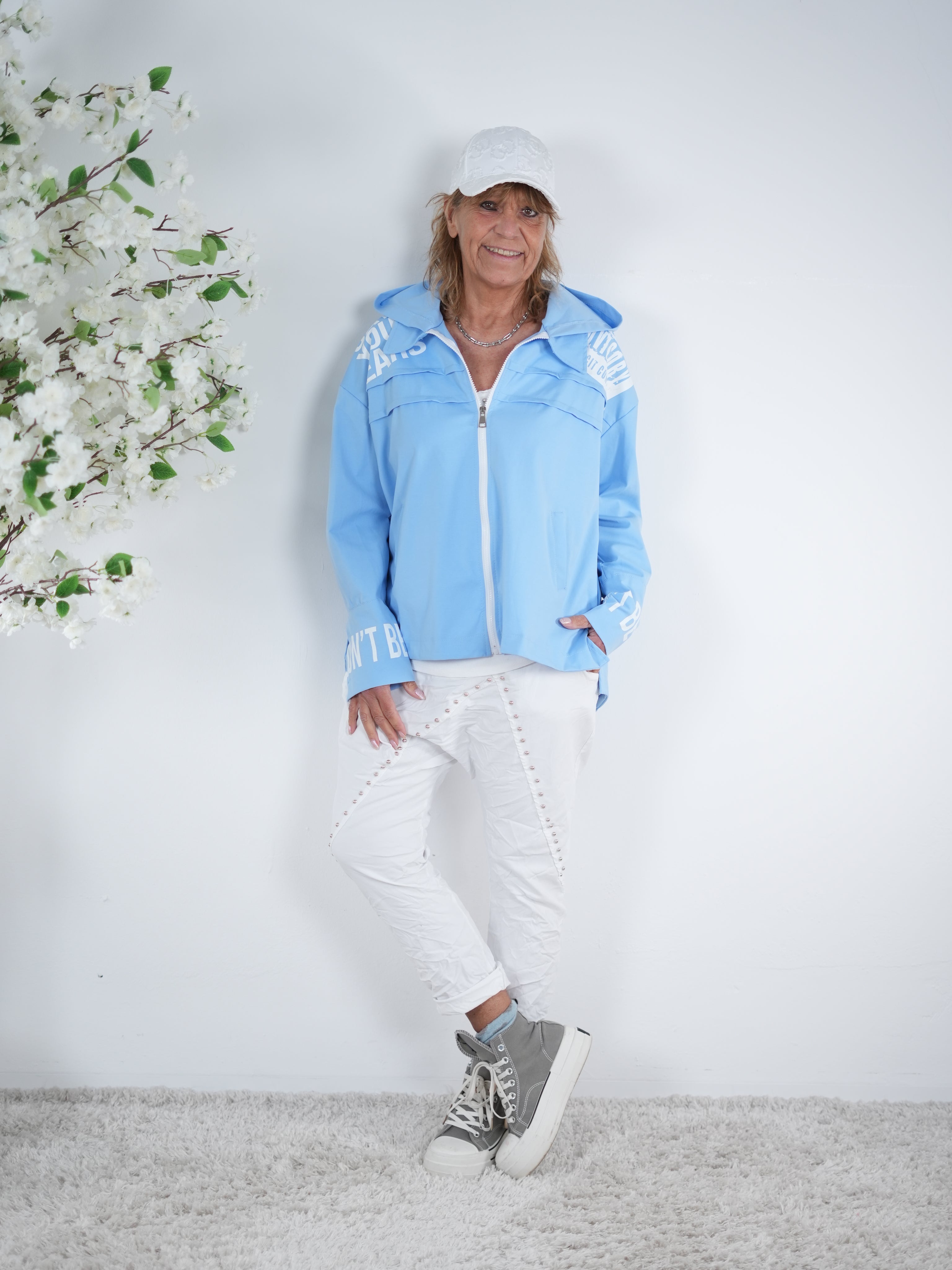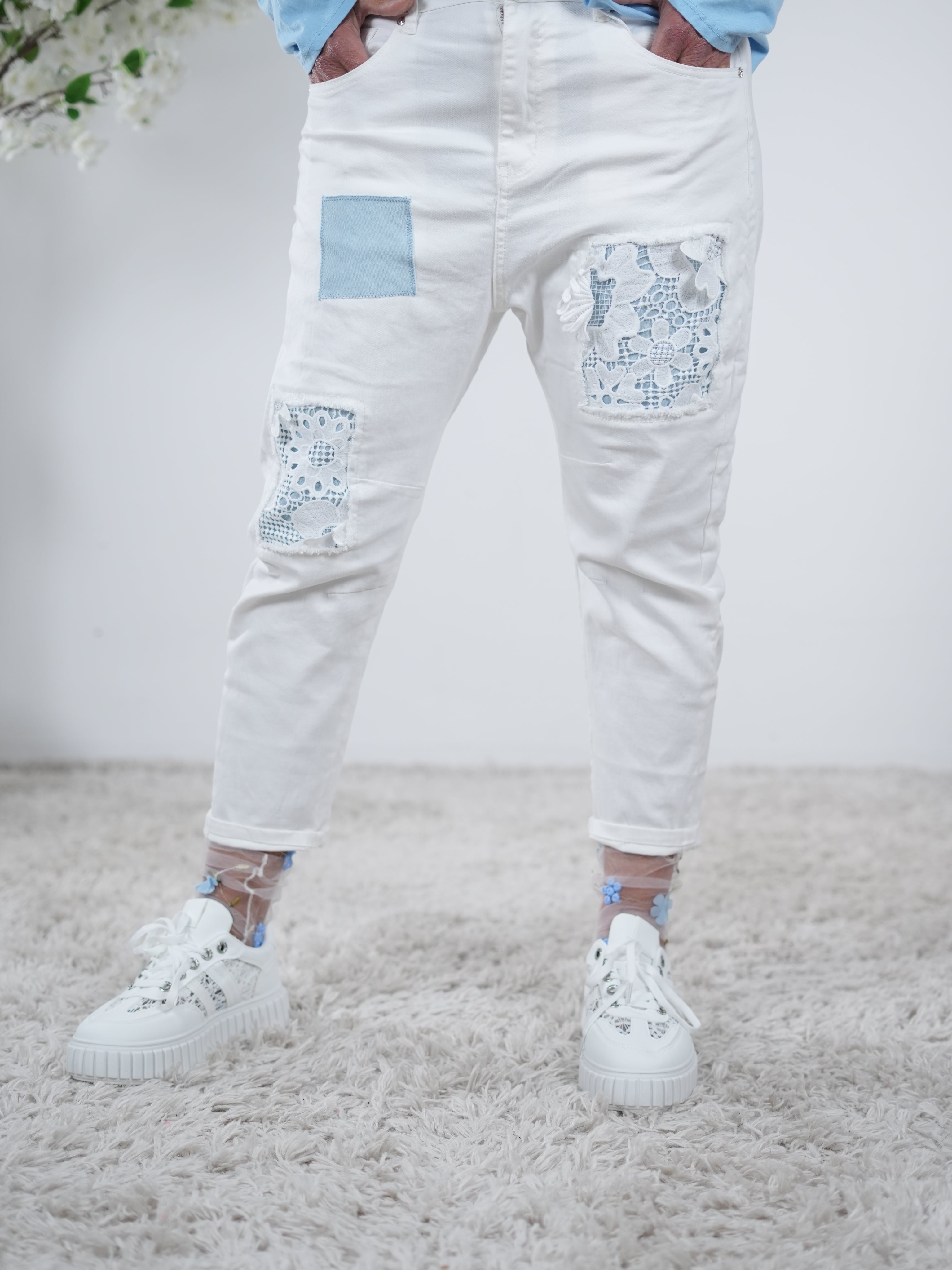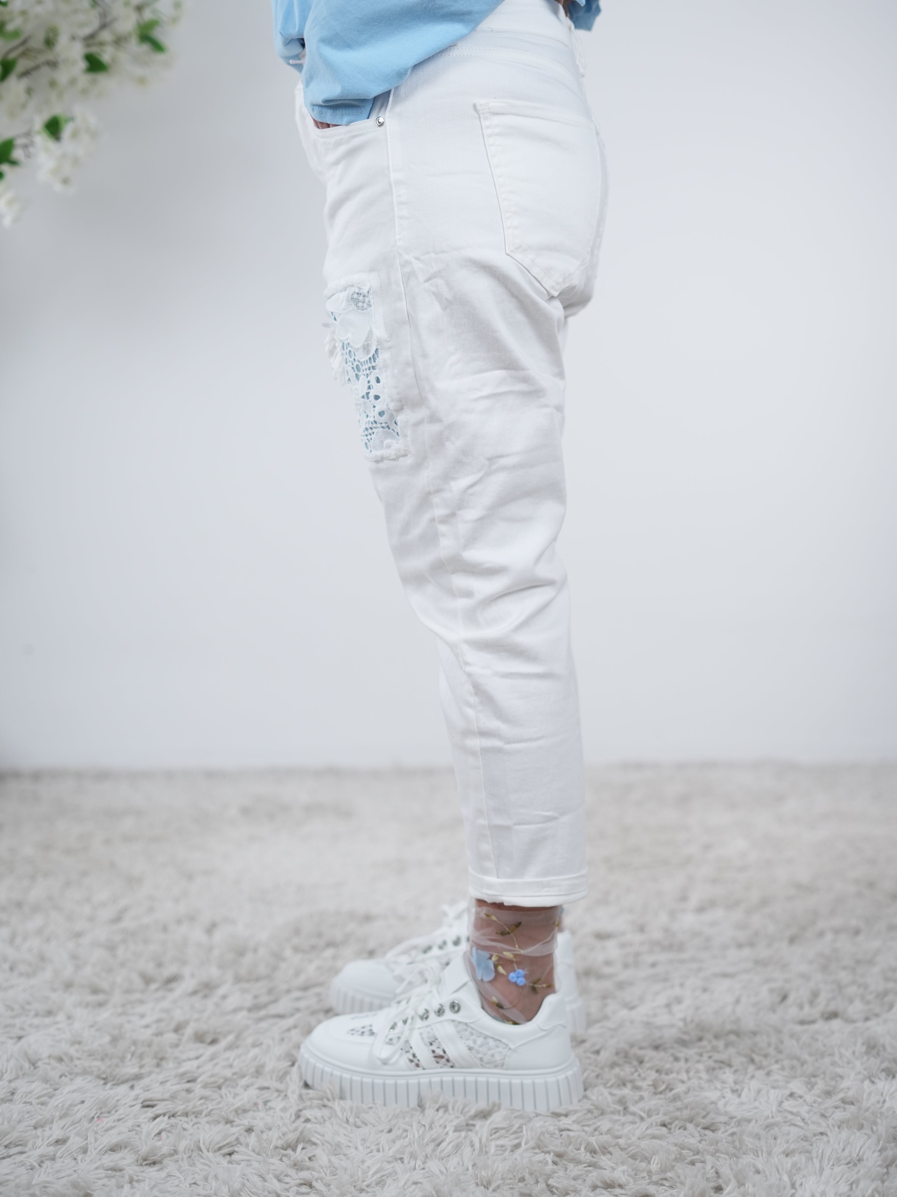 Blue Jeans mit Umschlag und buntem Schriftzug