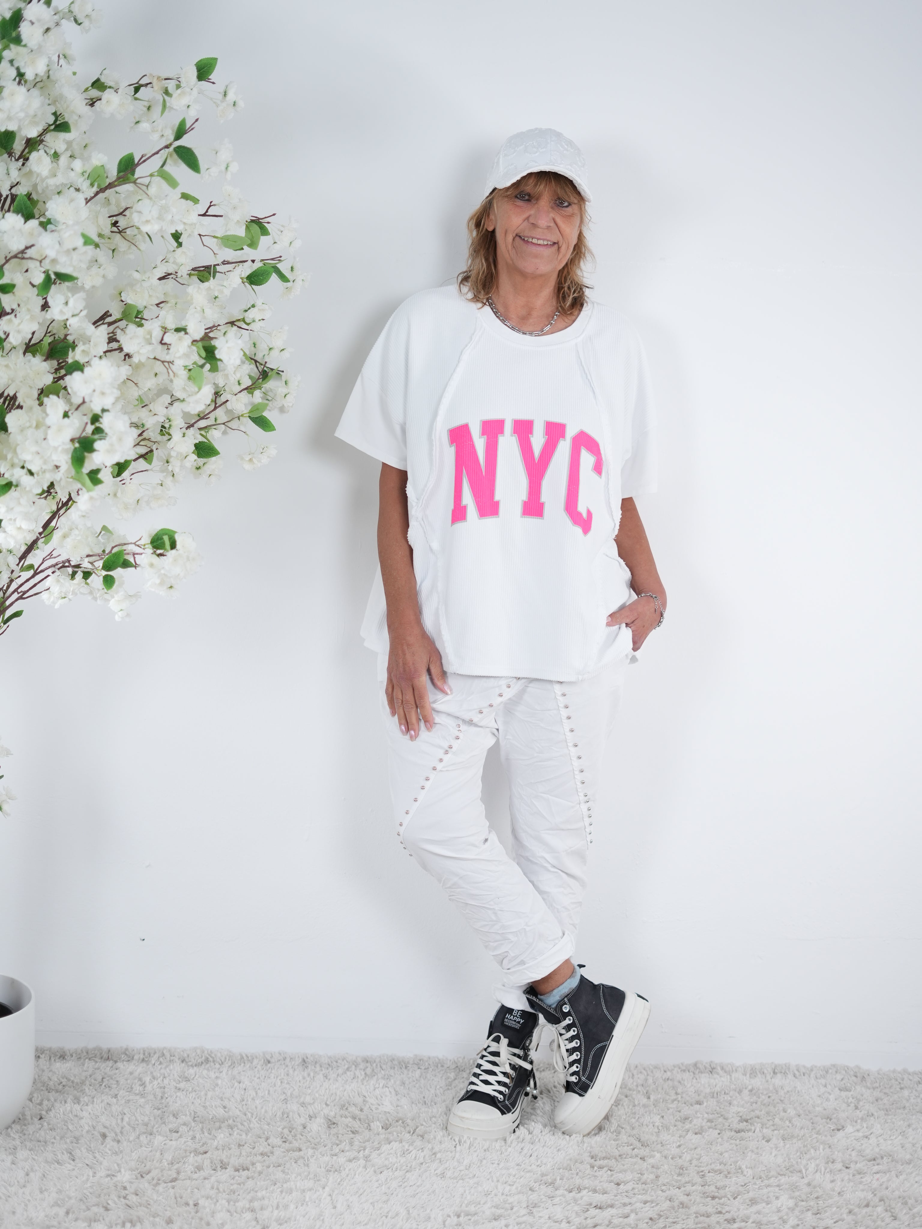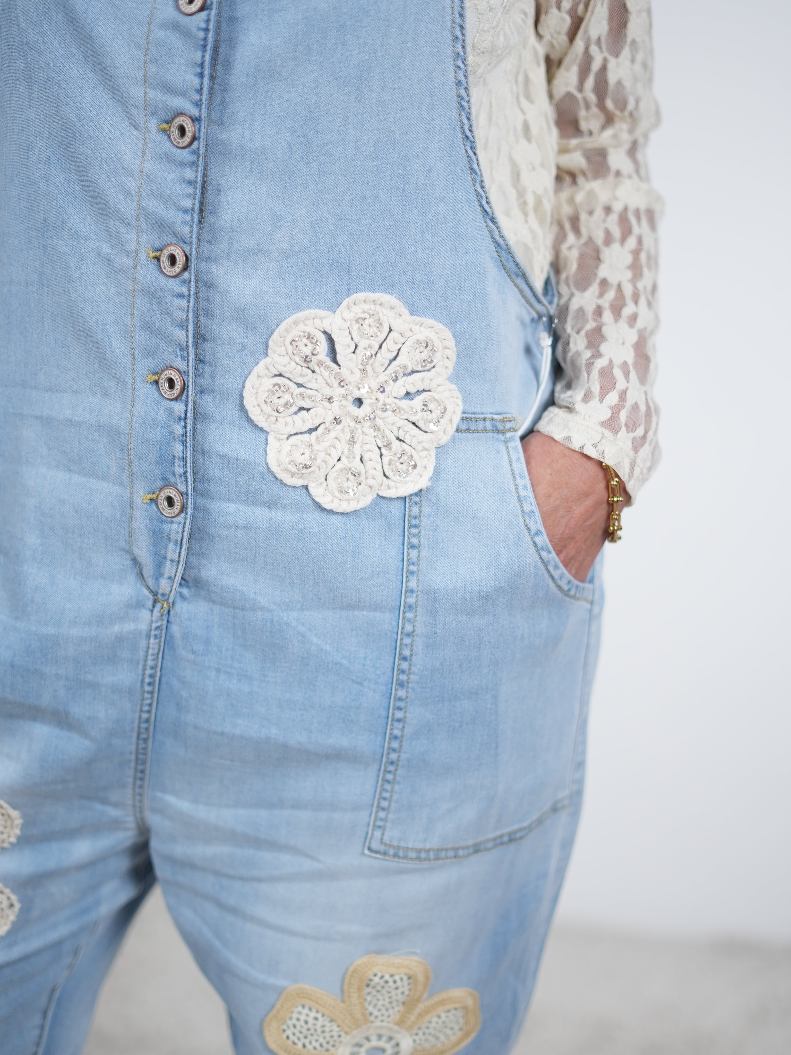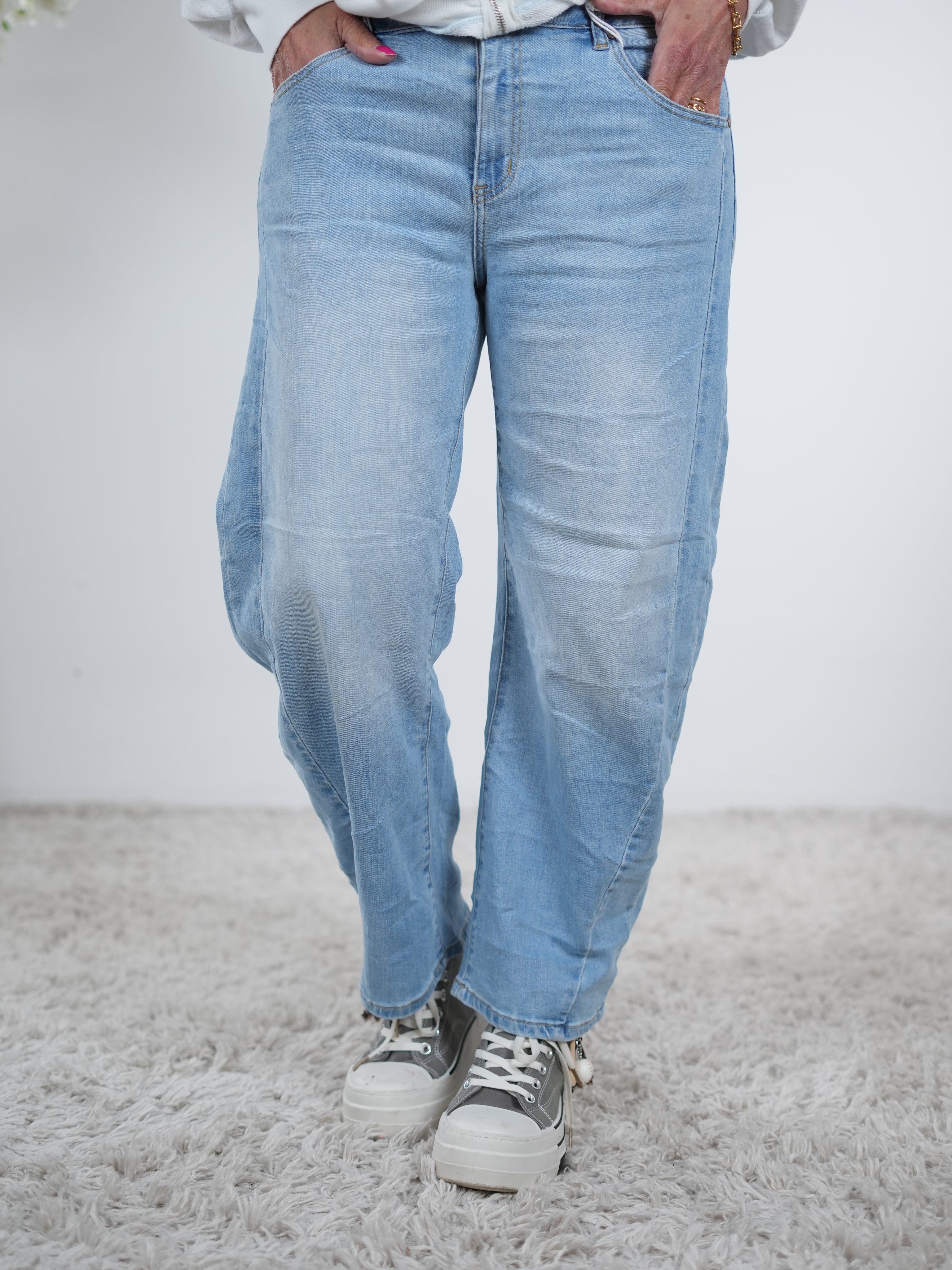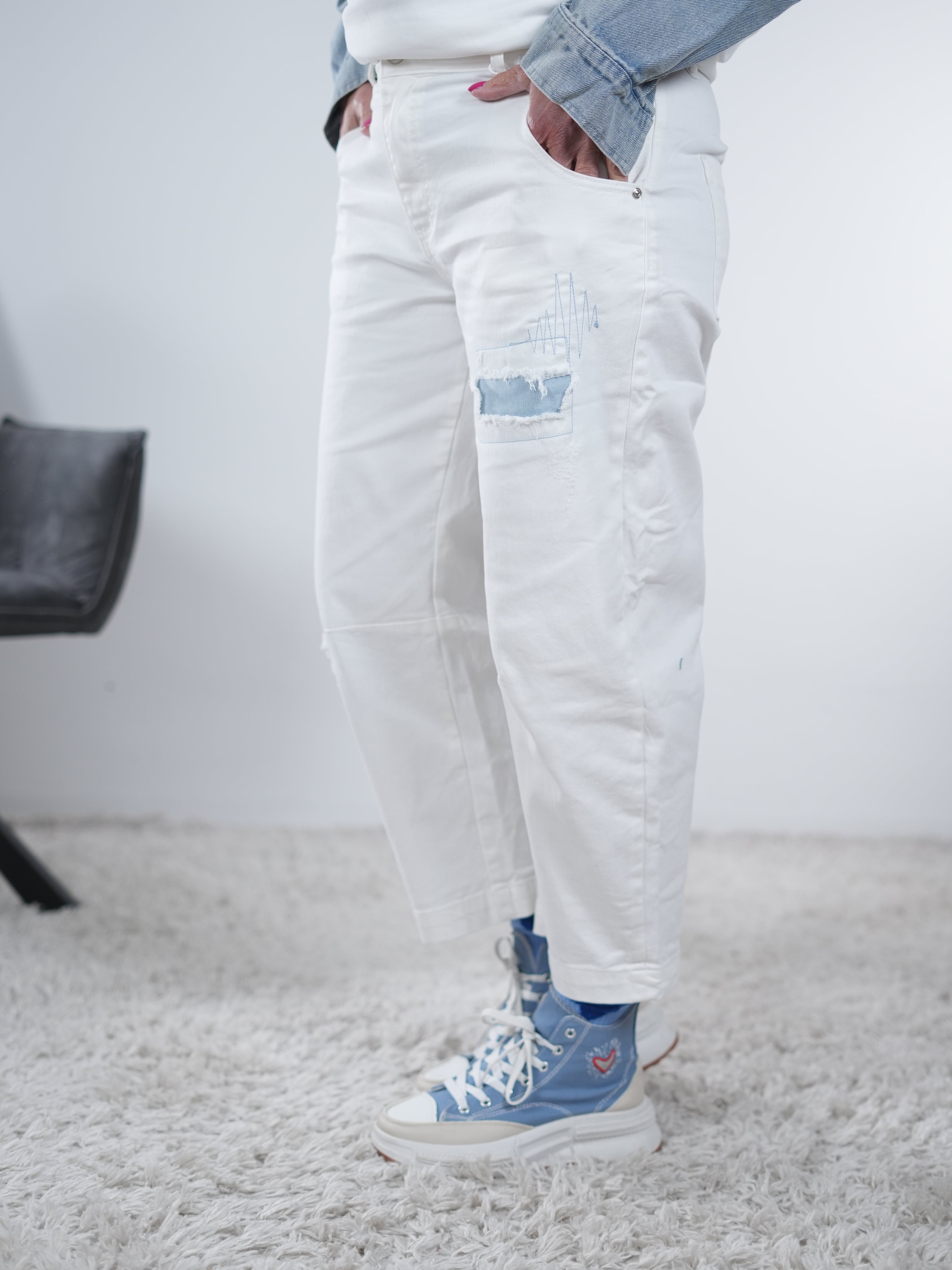 Blue Jeans mit Umschlag und buntem Schriftzug