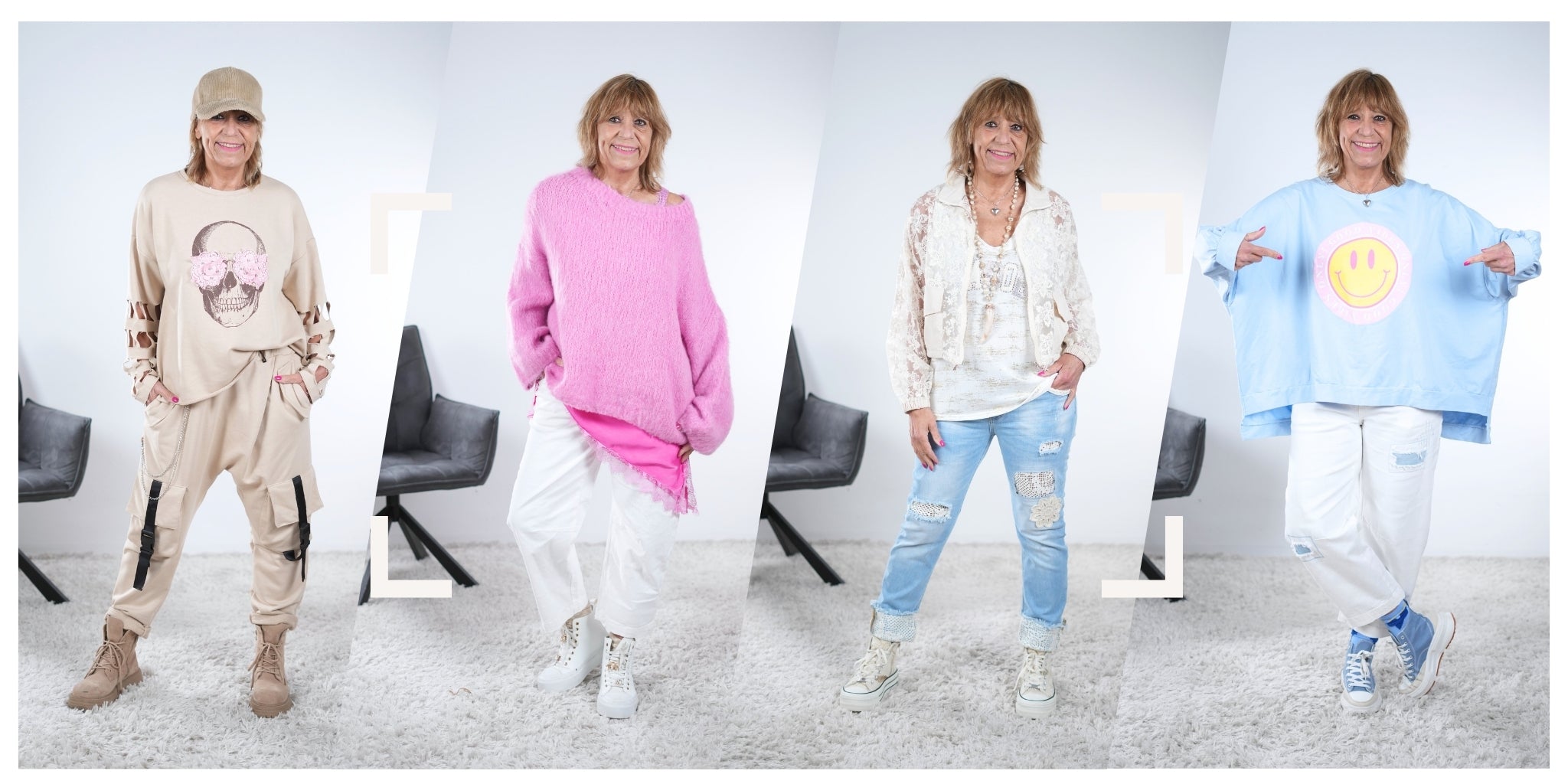Unsere Styles fallen weich, sitzen bequem und lassen sich mühelos kombinieren. Mode, die nicht kompliziert ist, sondern dich einfach begleitet: zur Arbeit, in die City, zu Freunden oder für gemütliche Momente zu Hause.
