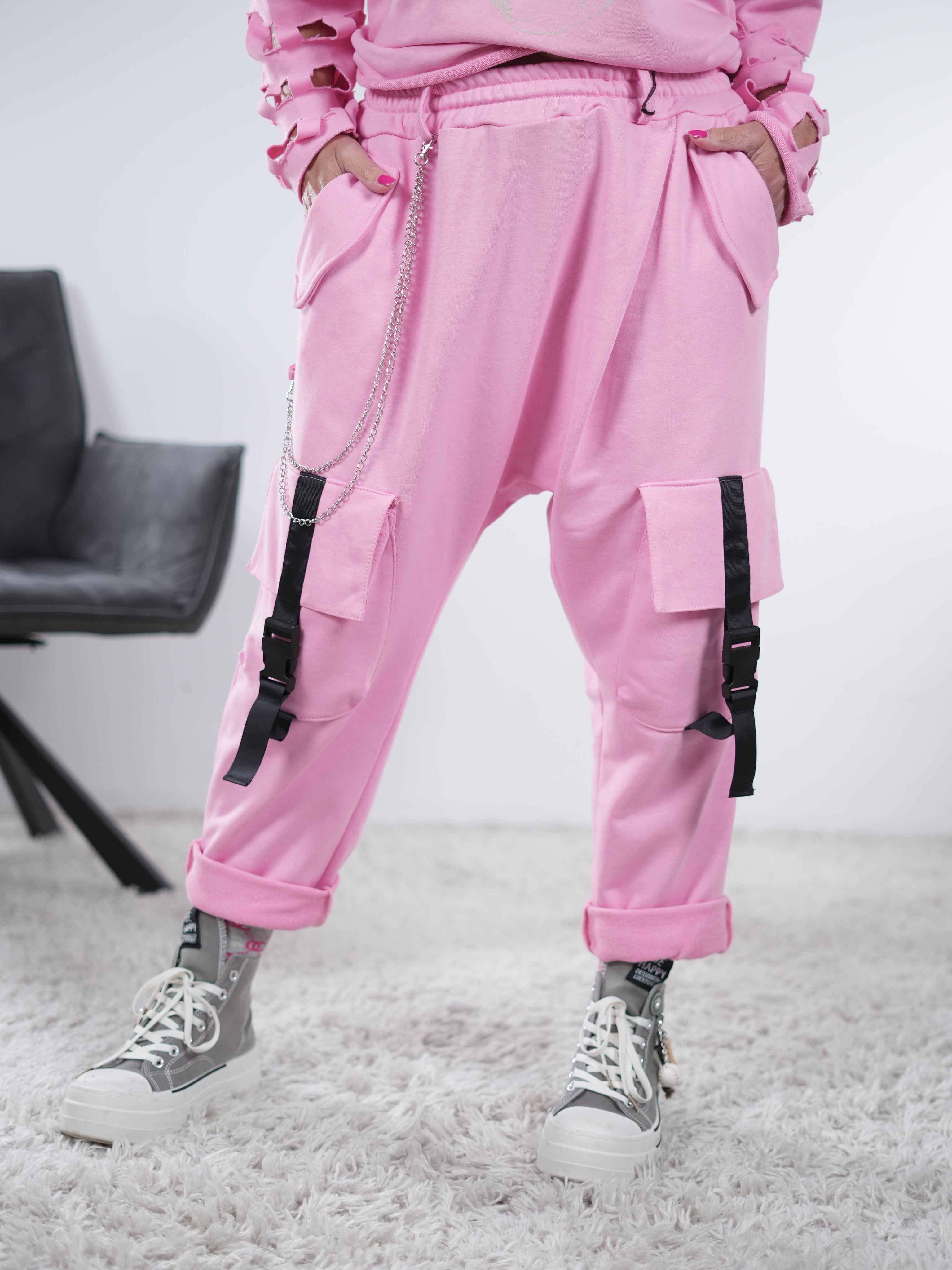 Velour Hose mit großen Eingriffstaschen