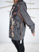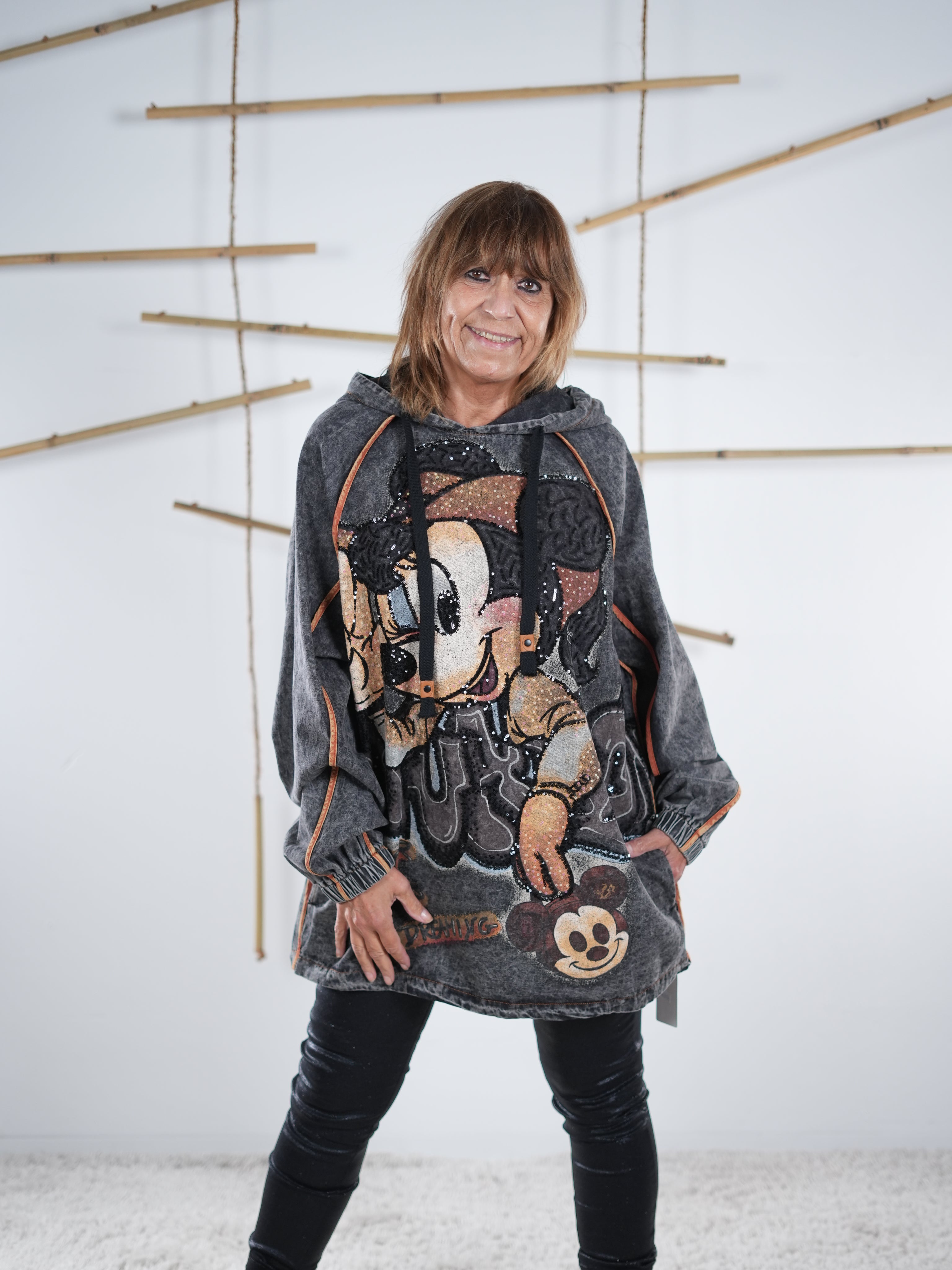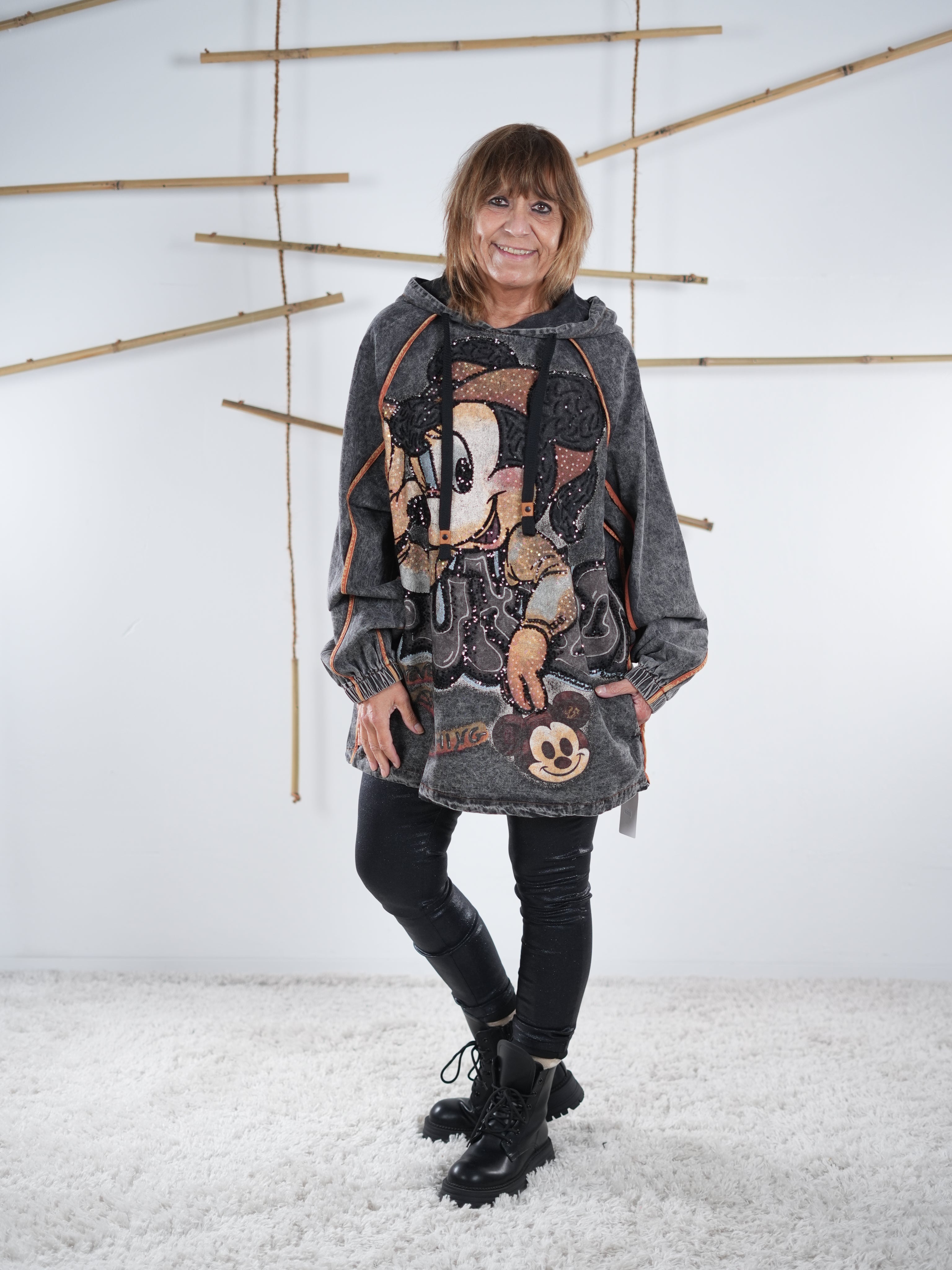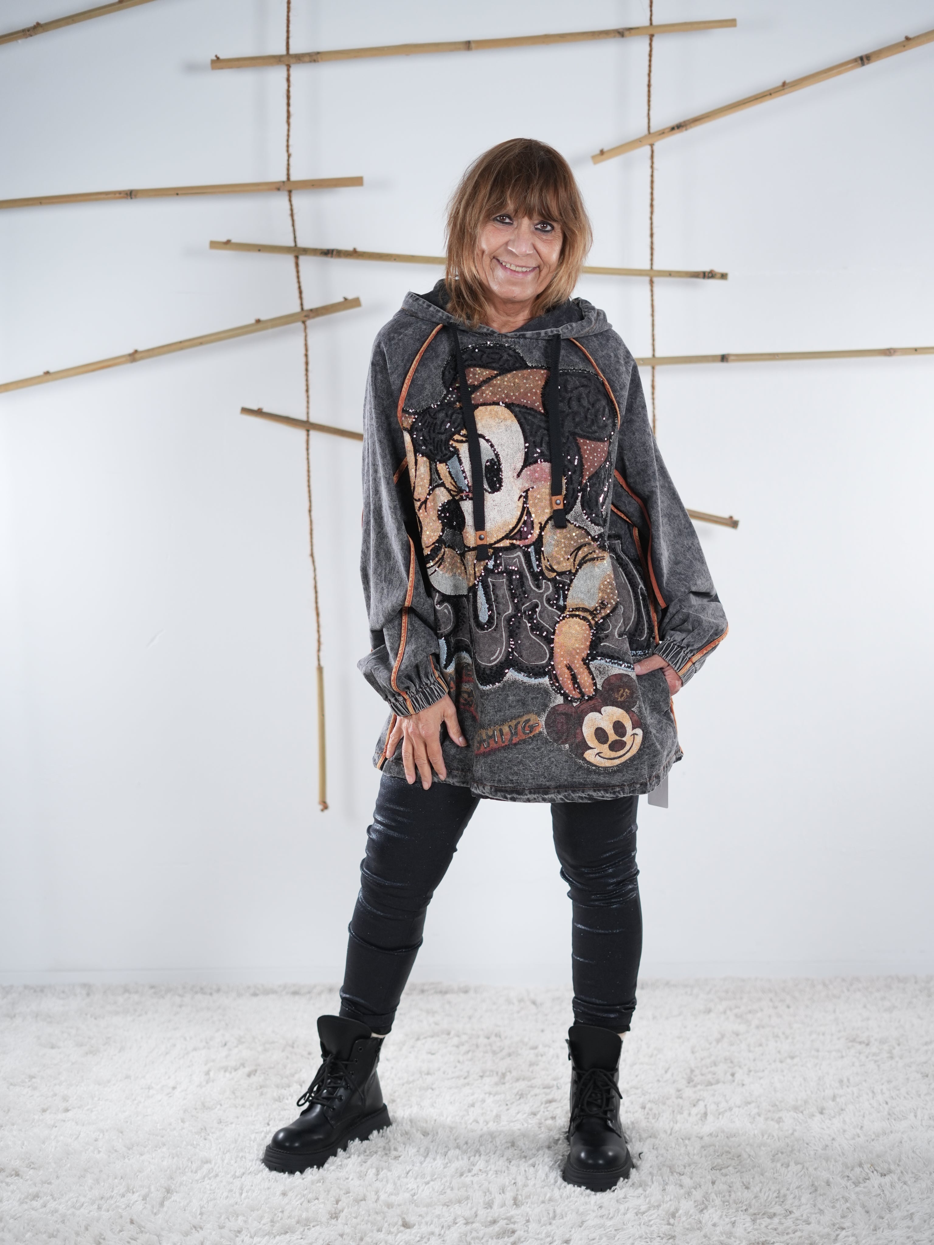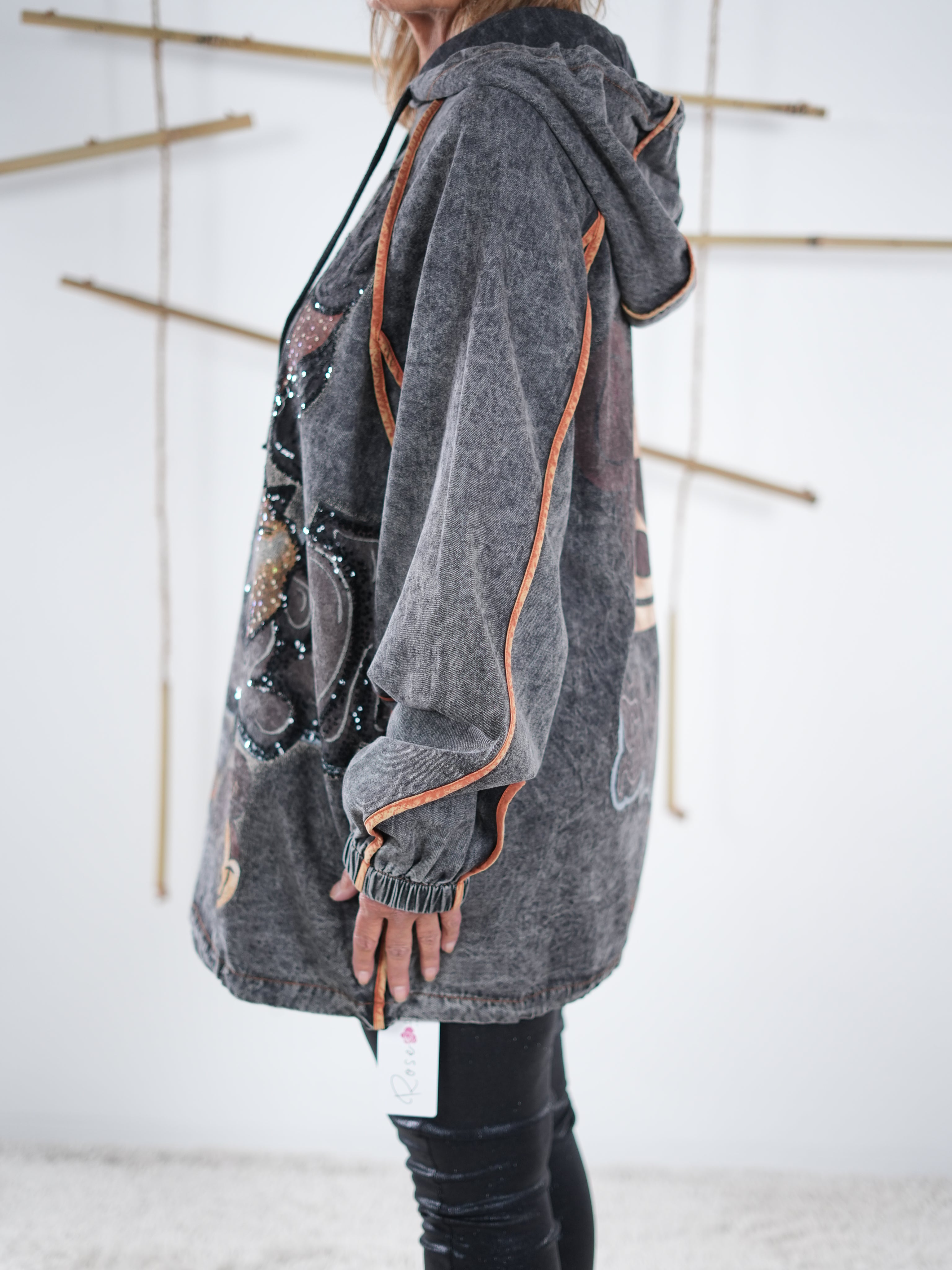 Ein ausgefallener Jeans-Hoody mit großem, auffälligem Print auf Vorder- und Rückseite – ein echtes Statement-Piece! 💫