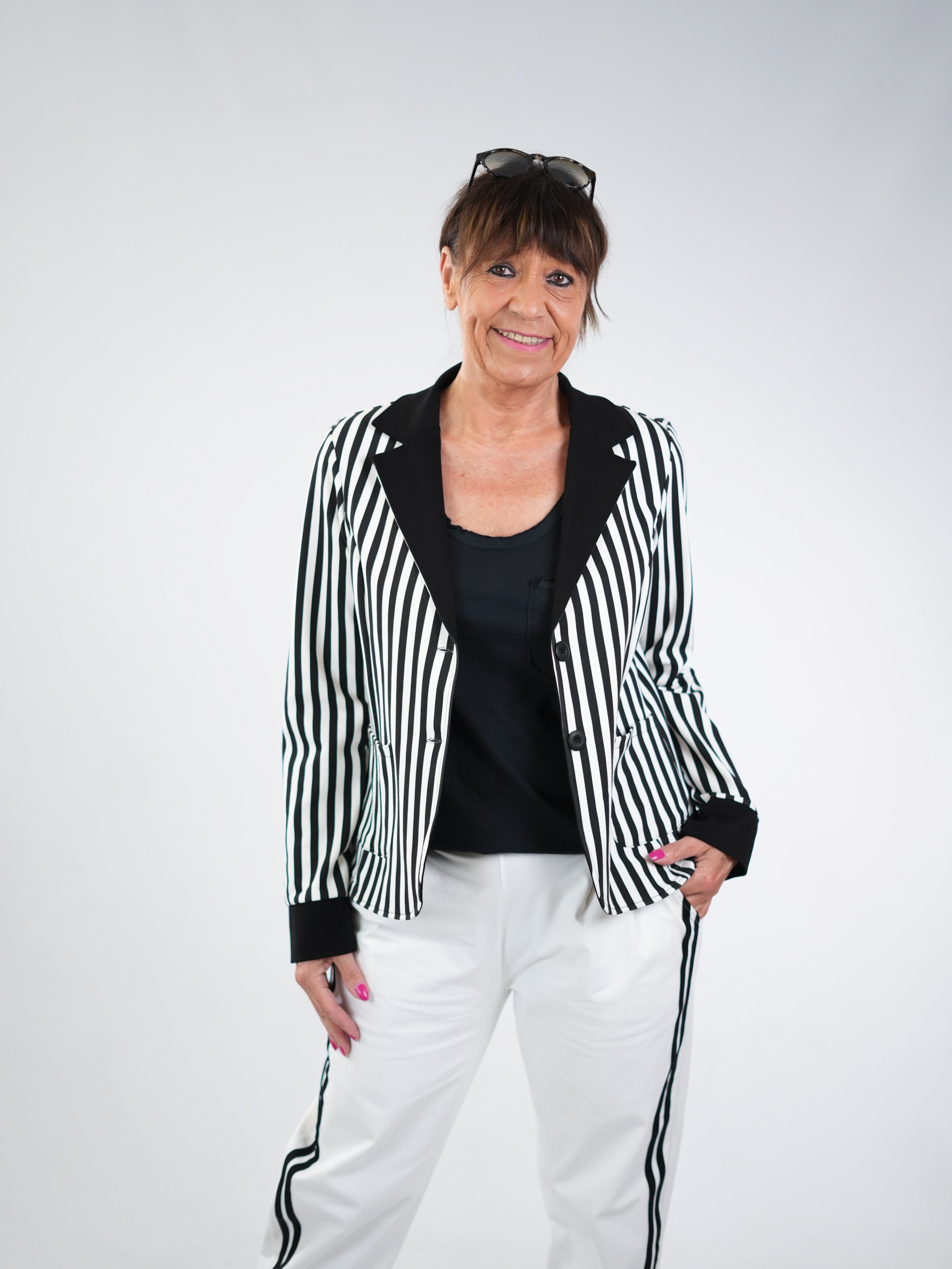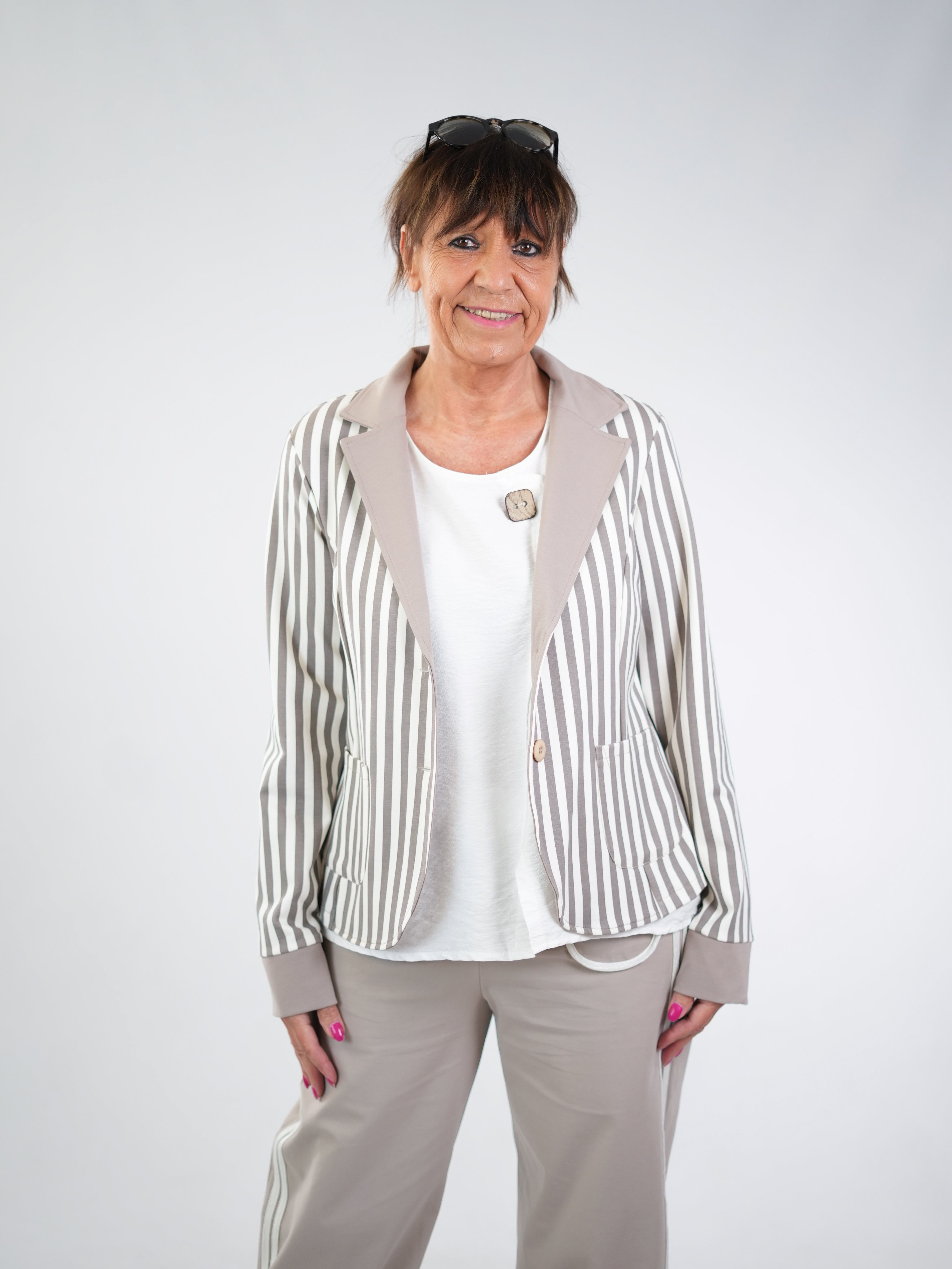 Marion ist 172cm groß und hat Konfektionsgröße 40/42.