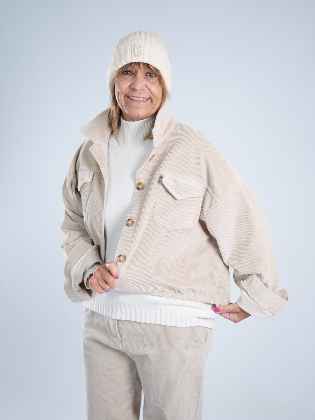 Marion ist 172cm groß und hat Konfektionsgröße 40/42.