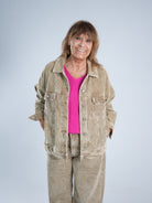 Marion ist 172cm groß und trägt Größe 40/42. Sie ist auf allen Produktbildern zu sehen und präsentiert die wunderschönen onesize Outfits.