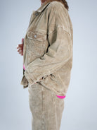 Die Kleidungsstücke sind absichtlich größer geschnitten als die üblichen Größen. Das verleiht dir noch einen lässigeren Look, wie Du auch auf manchen Produktbildern erkennen kannst. Die Kleidung hat eine größere Passform und liegt nicht eng am Körper an.