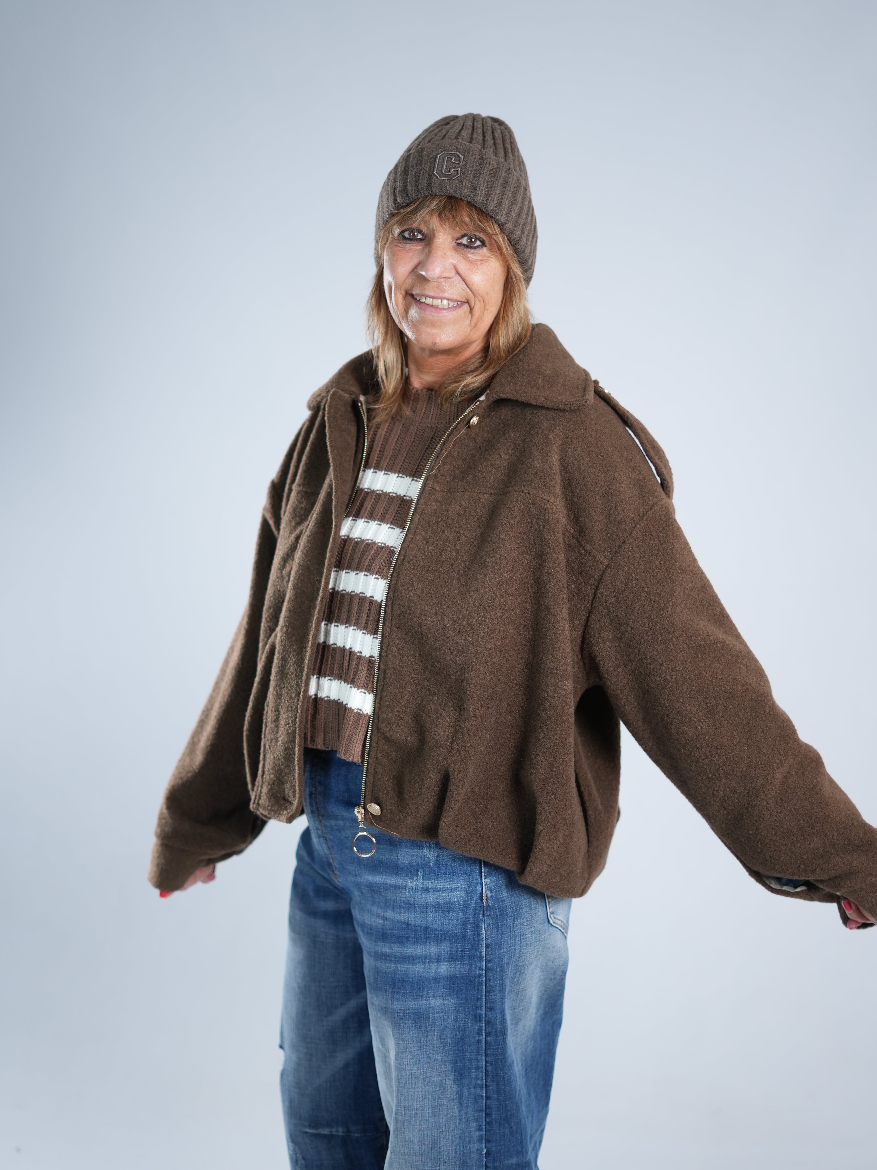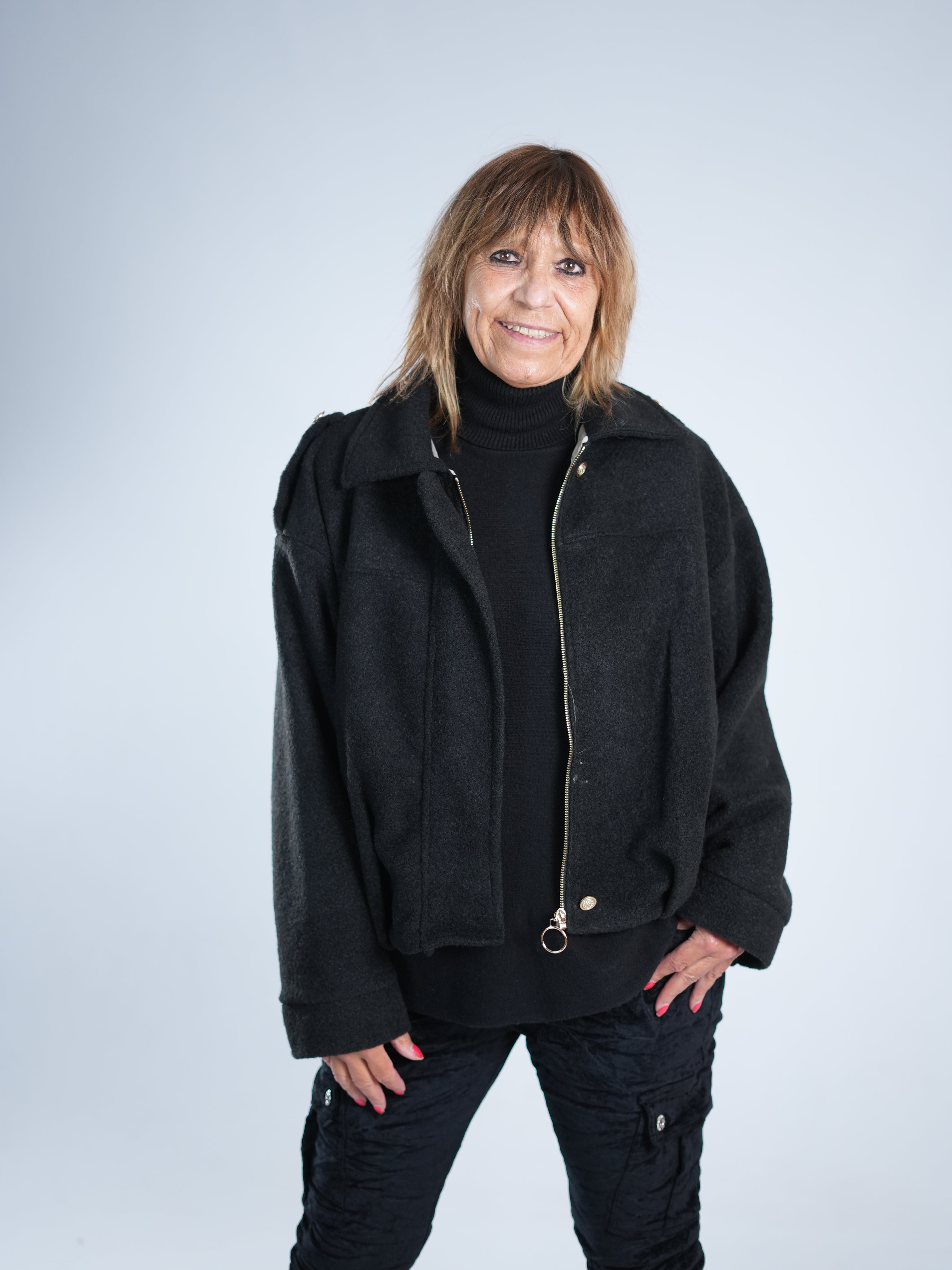 Marion ist 172cm groß und trägt Größe 40/42. Sie ist auf allen Produktbildern zu sehen und präsentiert die wunderschönen onesize Outfits.