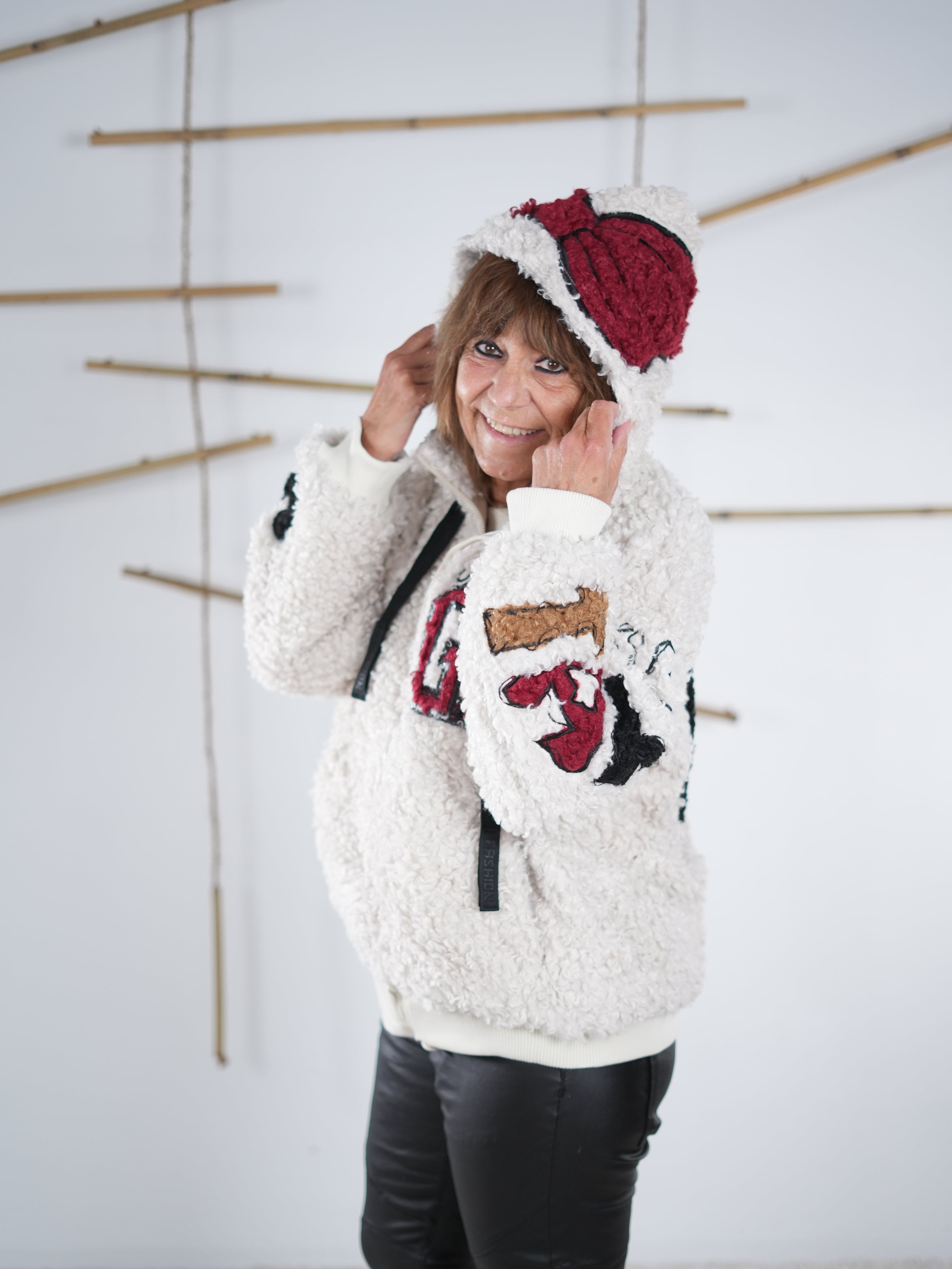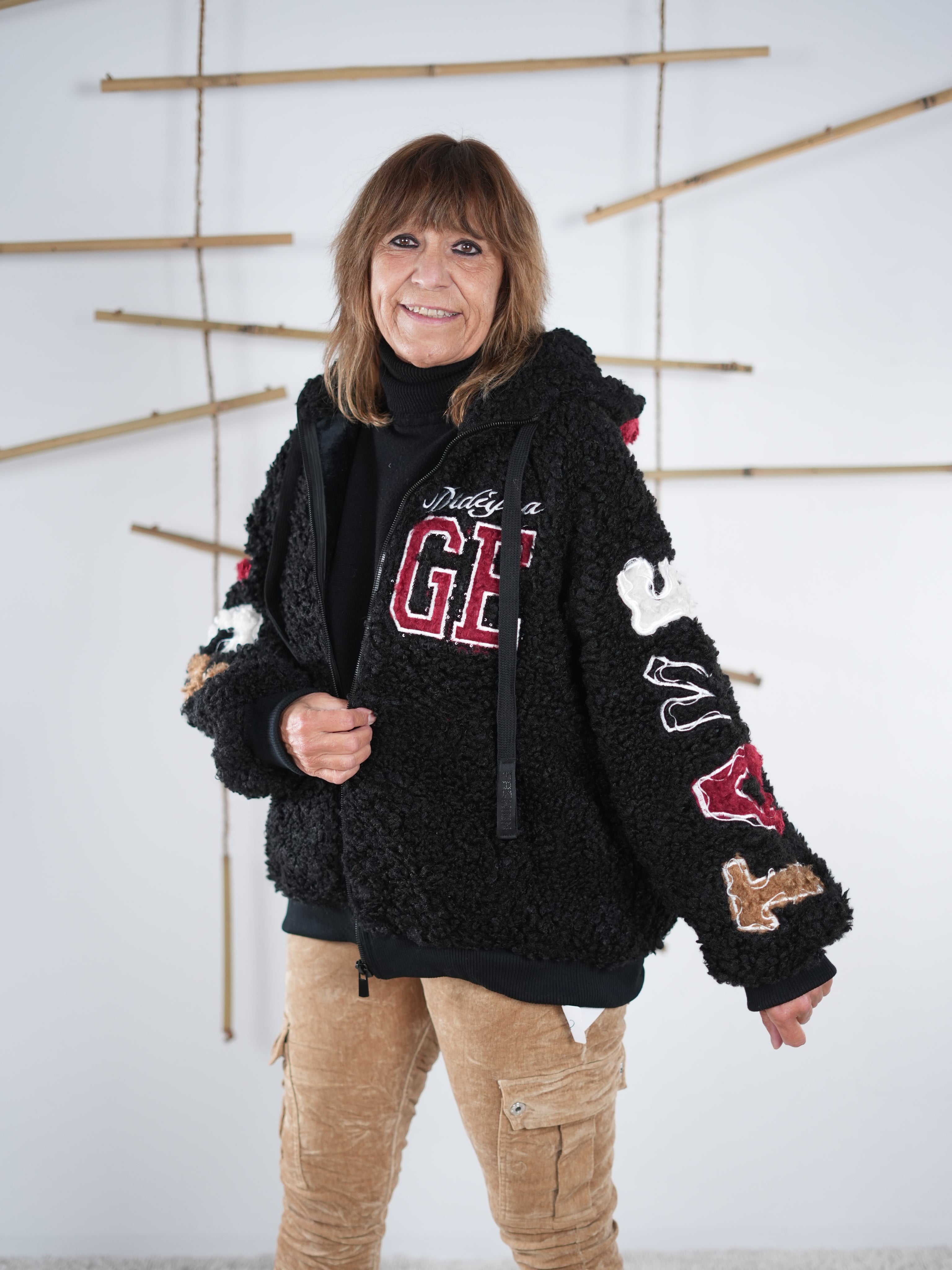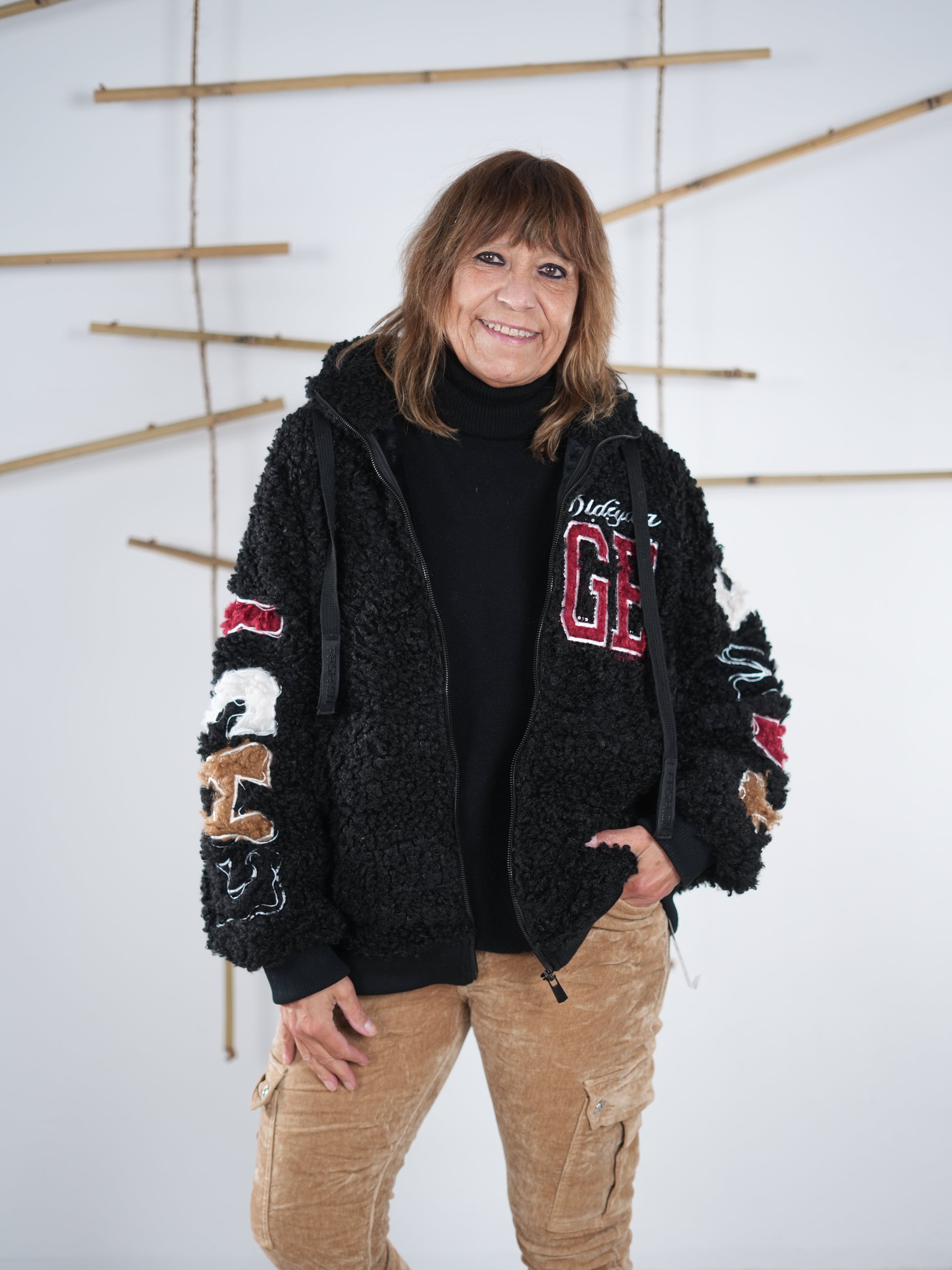 Marion ist 172cm groß und trägt Größe 40/42. Sie ist auf allen Produktbildern zu sehen und präsentiert die wunderschönen onesize Outfits.