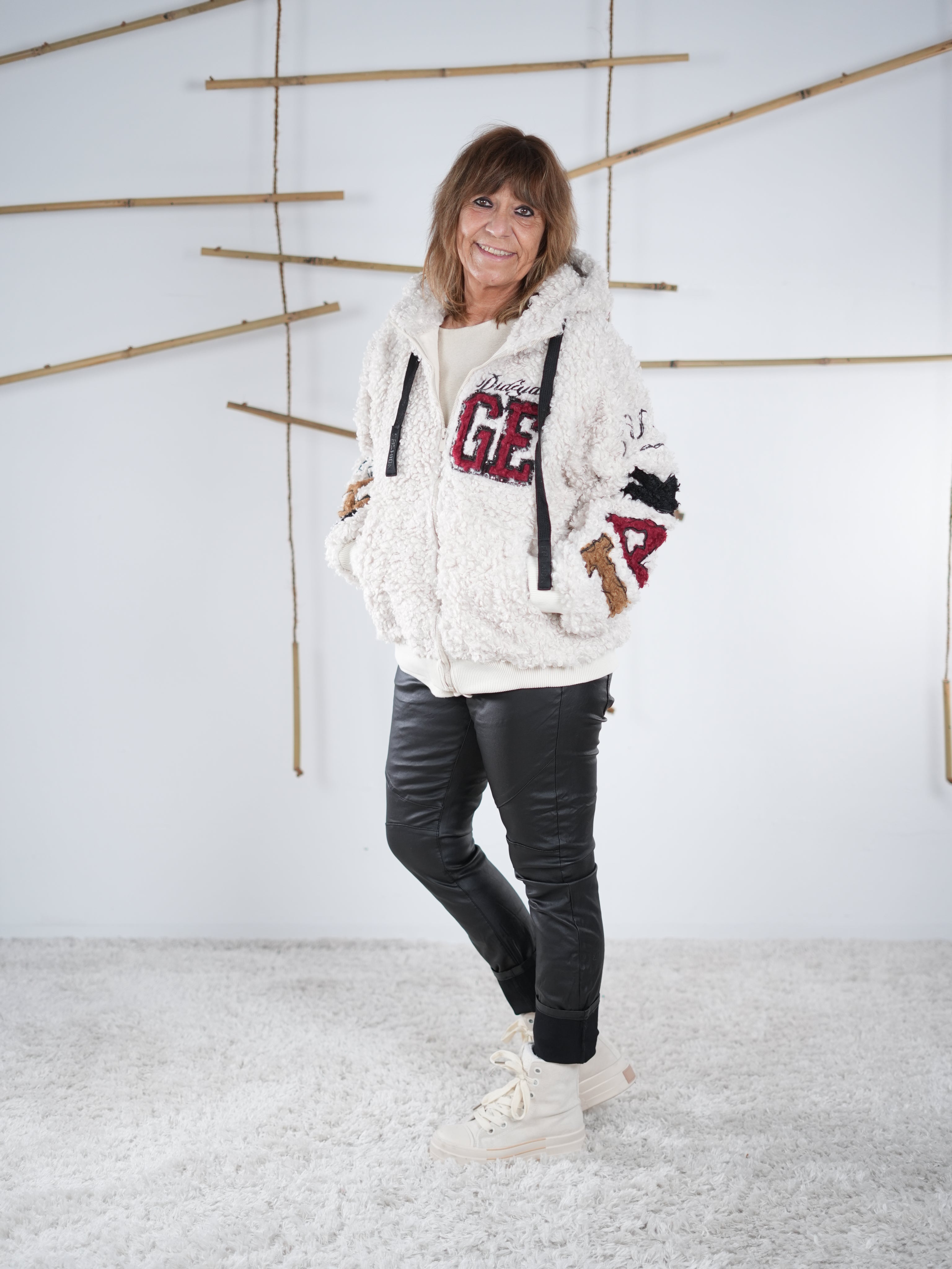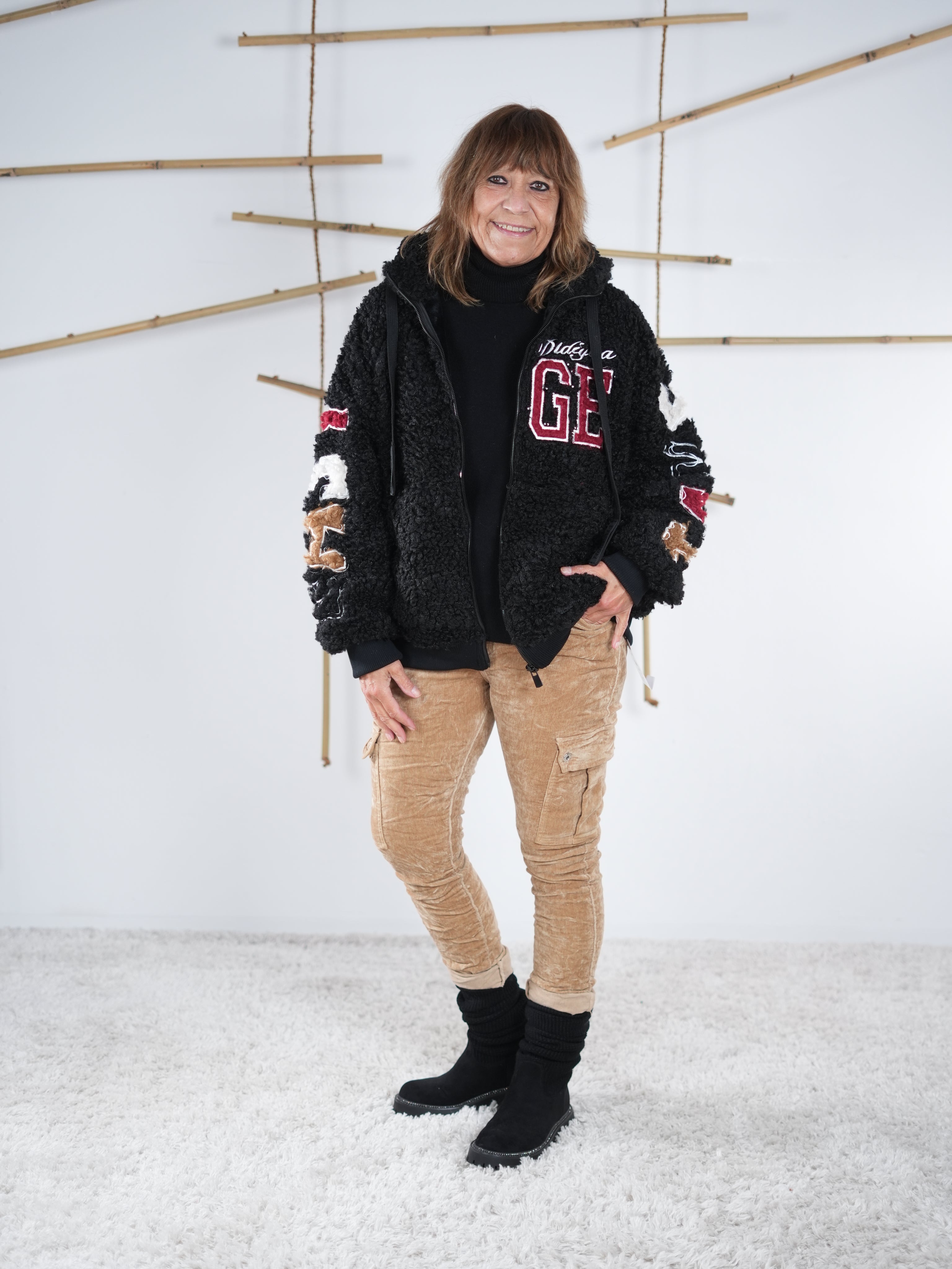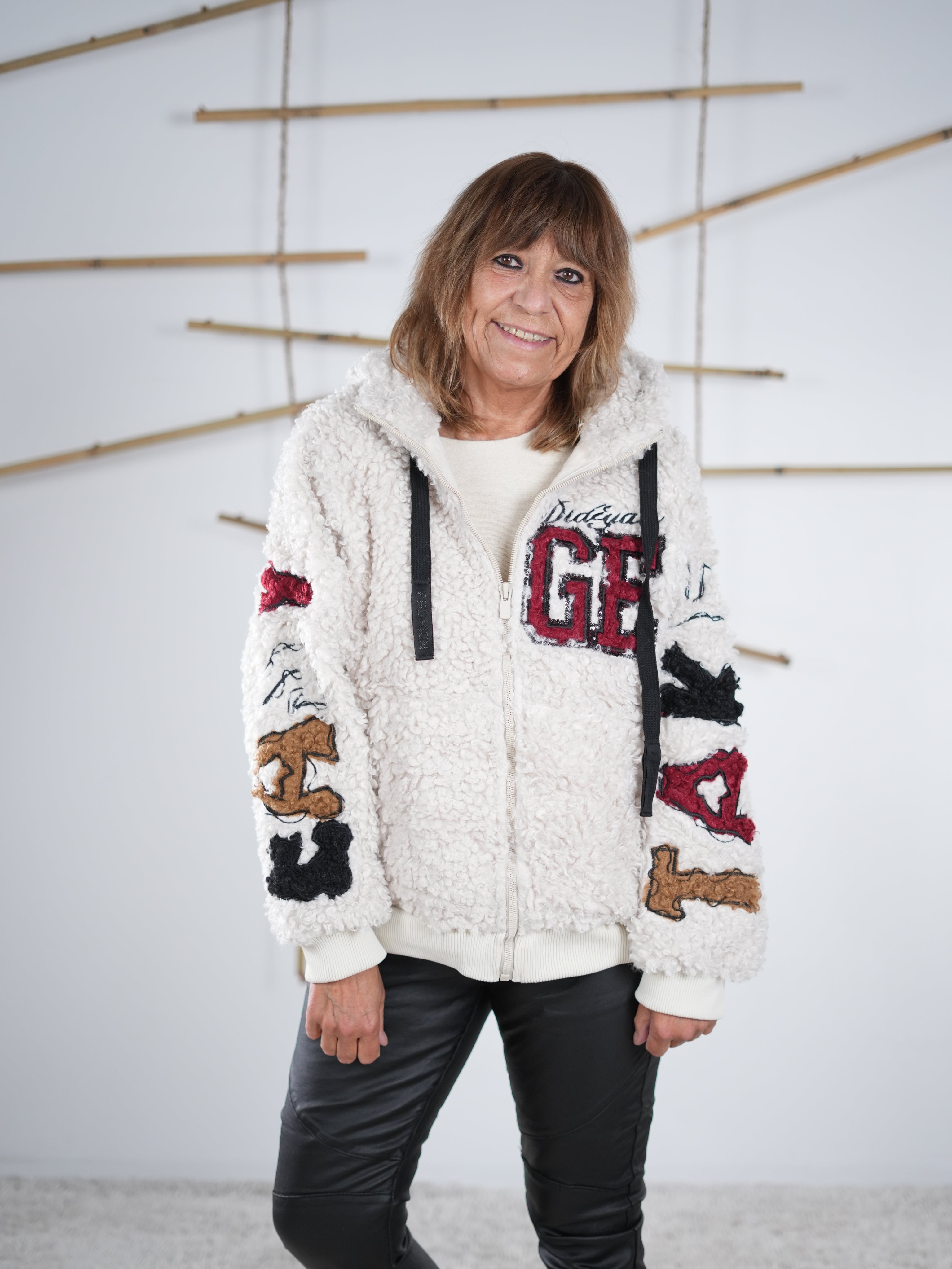 Marion ist 172cm groß und trägt Größe 40/42. Sie ist auf allen Produktbildern zu sehen und präsentiert die wunderschönen onesize Outfits.