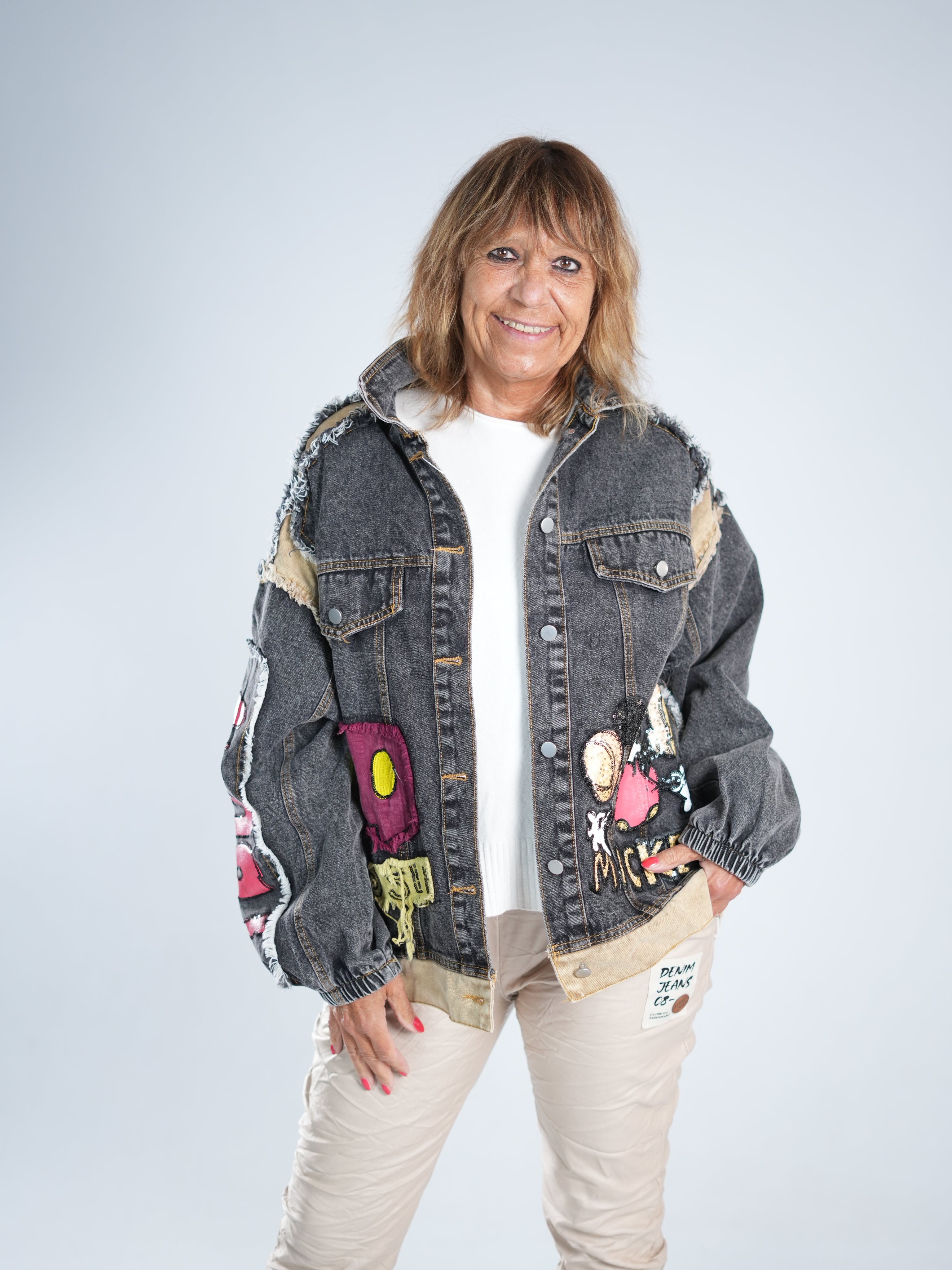 Marion ist 172cm groß und trägt Größe 40/42. Sie ist auf allen Produktbildern zu sehen und präsentiert die wunderschönen onesize Outfits.