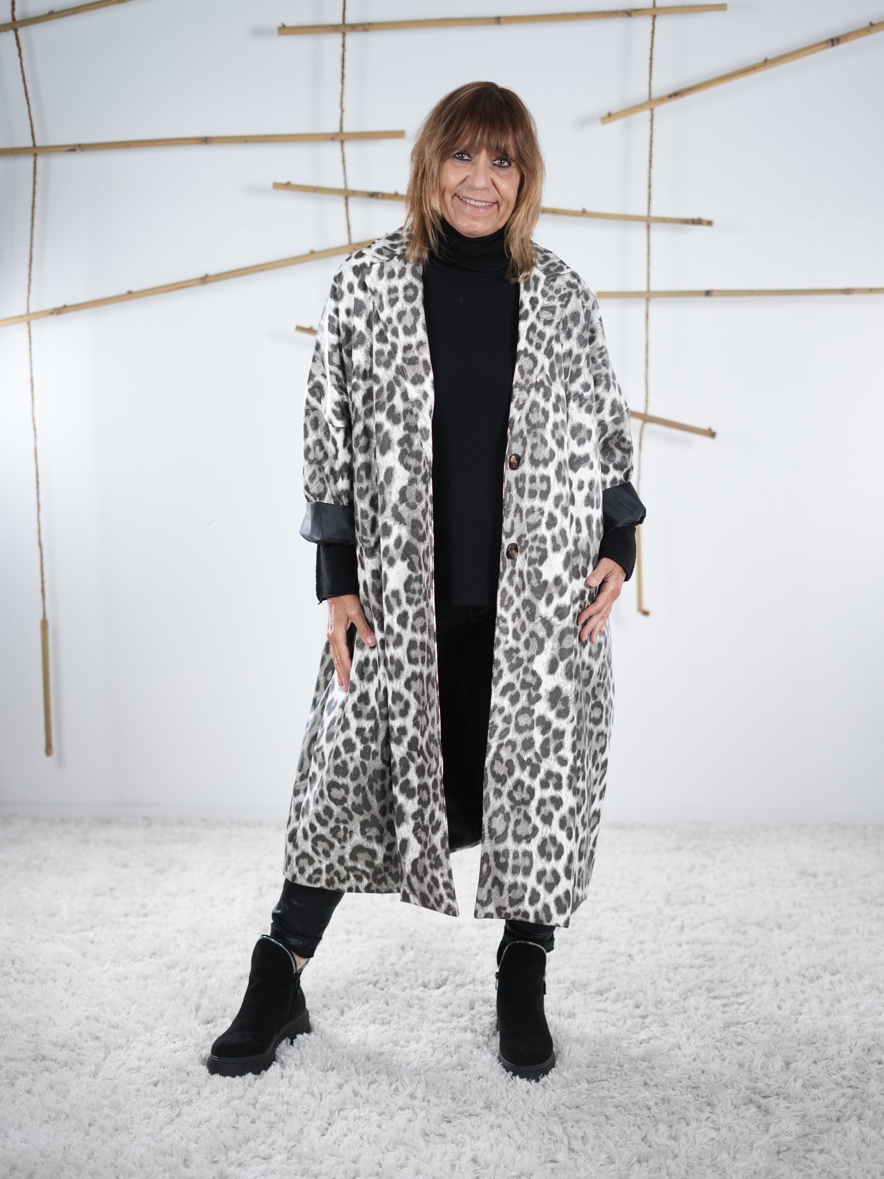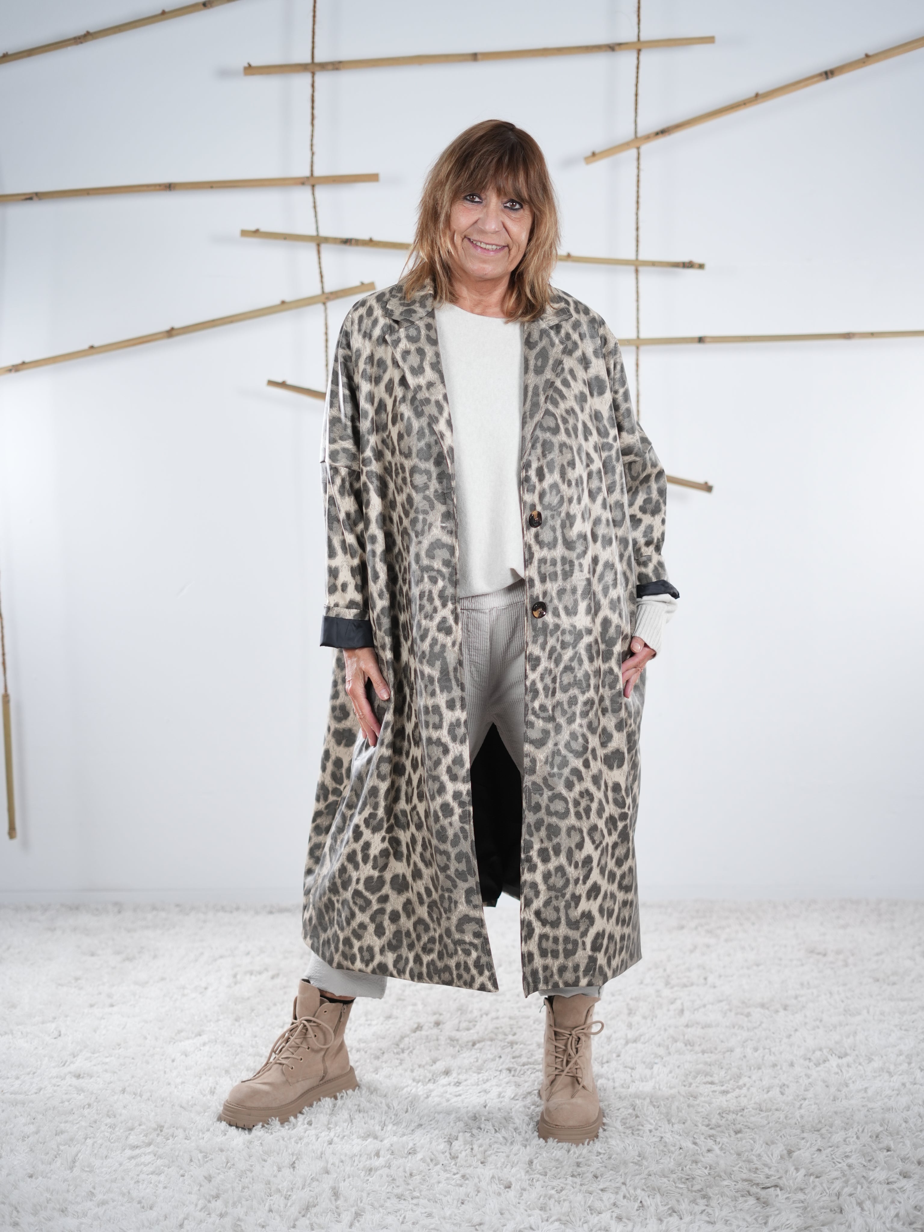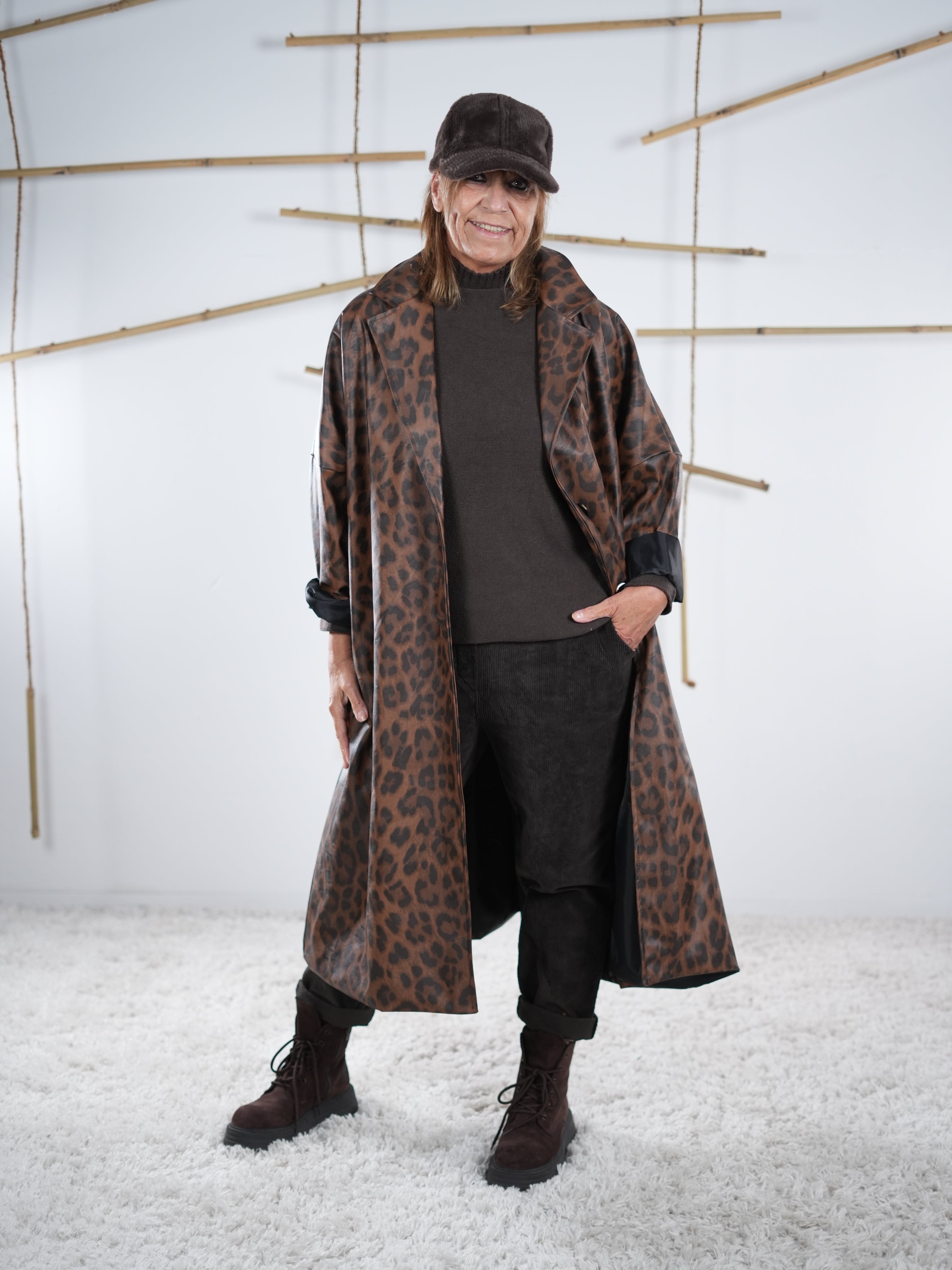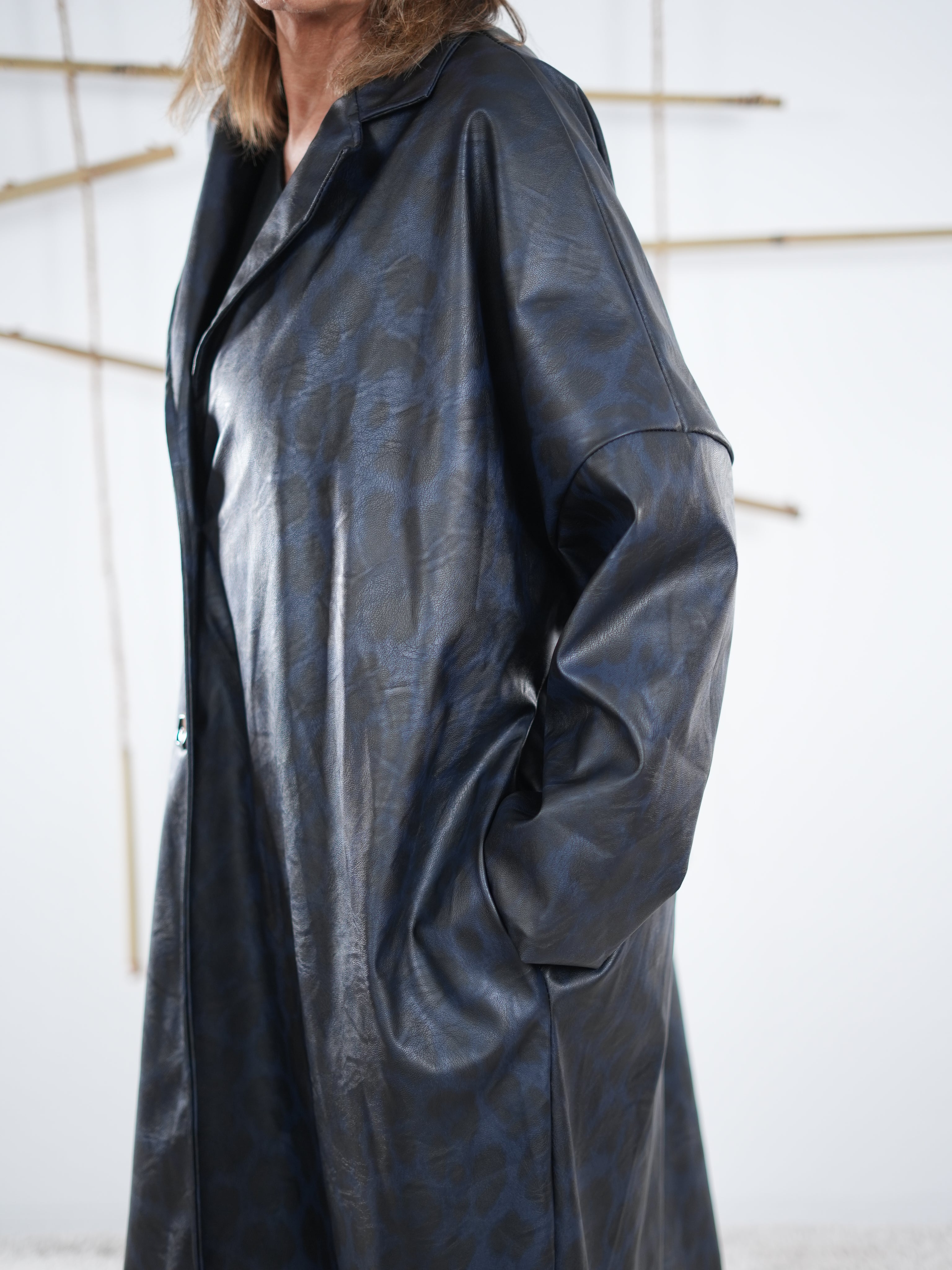 Ein ausgefallener, weiter Kunstledermantel im Leoprint – ein echtes Statement-Piece! 🖤