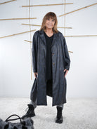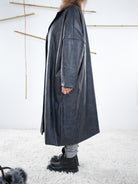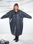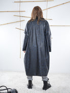 Der Mantel ist leicht gefüttert und trägt sich herrlich bequem. Durch den weiten Oversize-Schnitt kann er ab Größe 42/44 getragen werden, ideal sitzt er ab Größe 46.