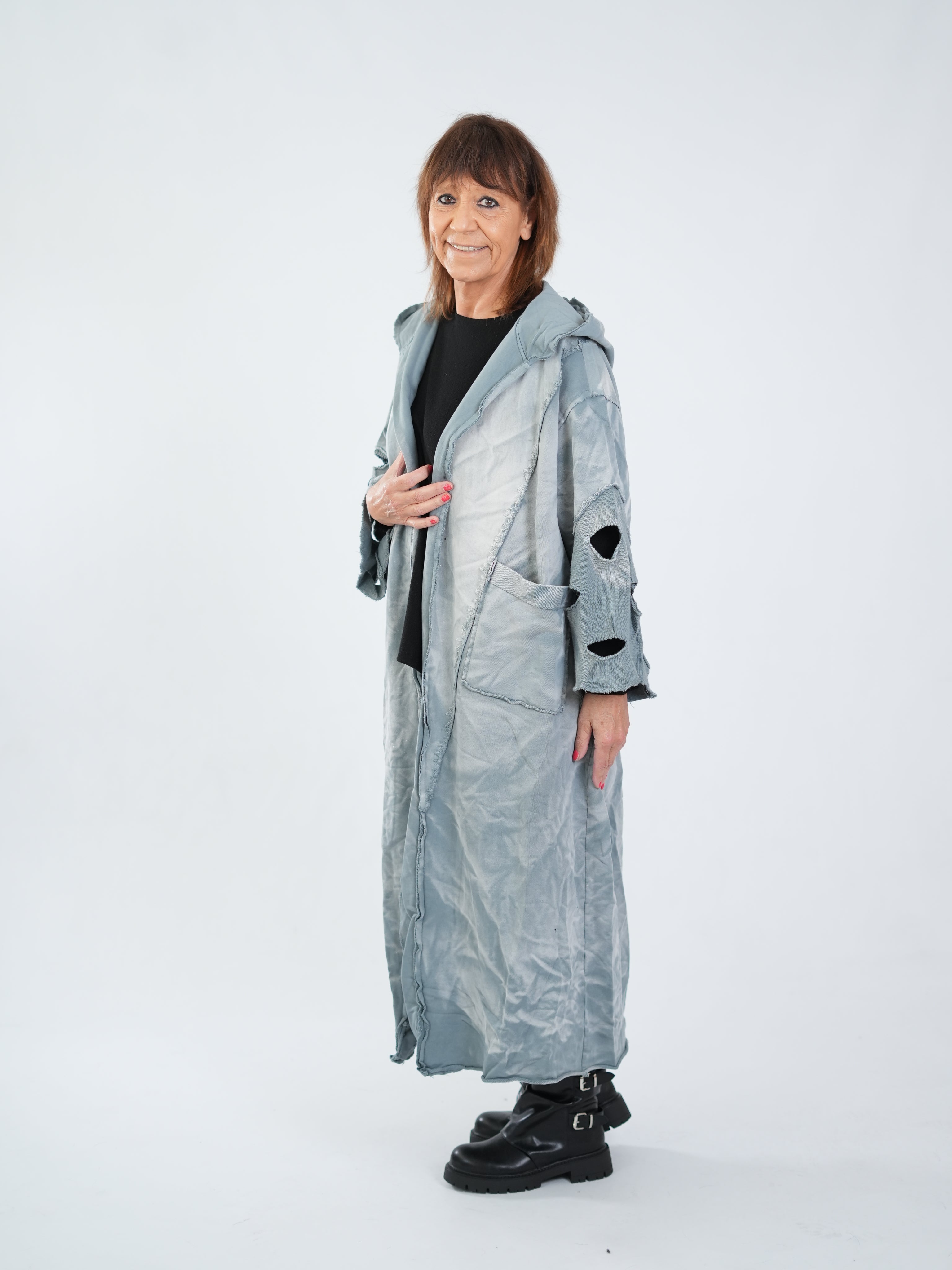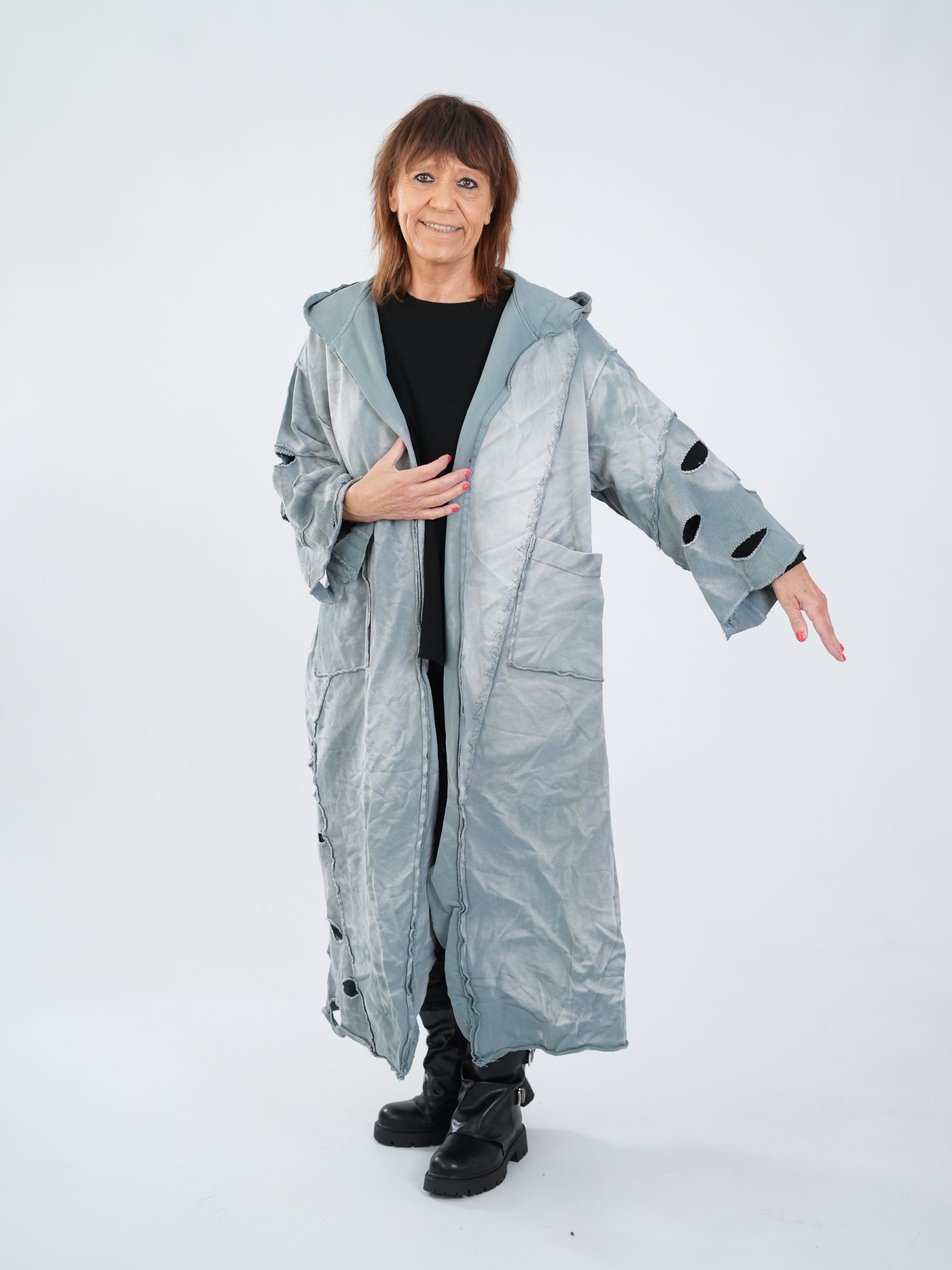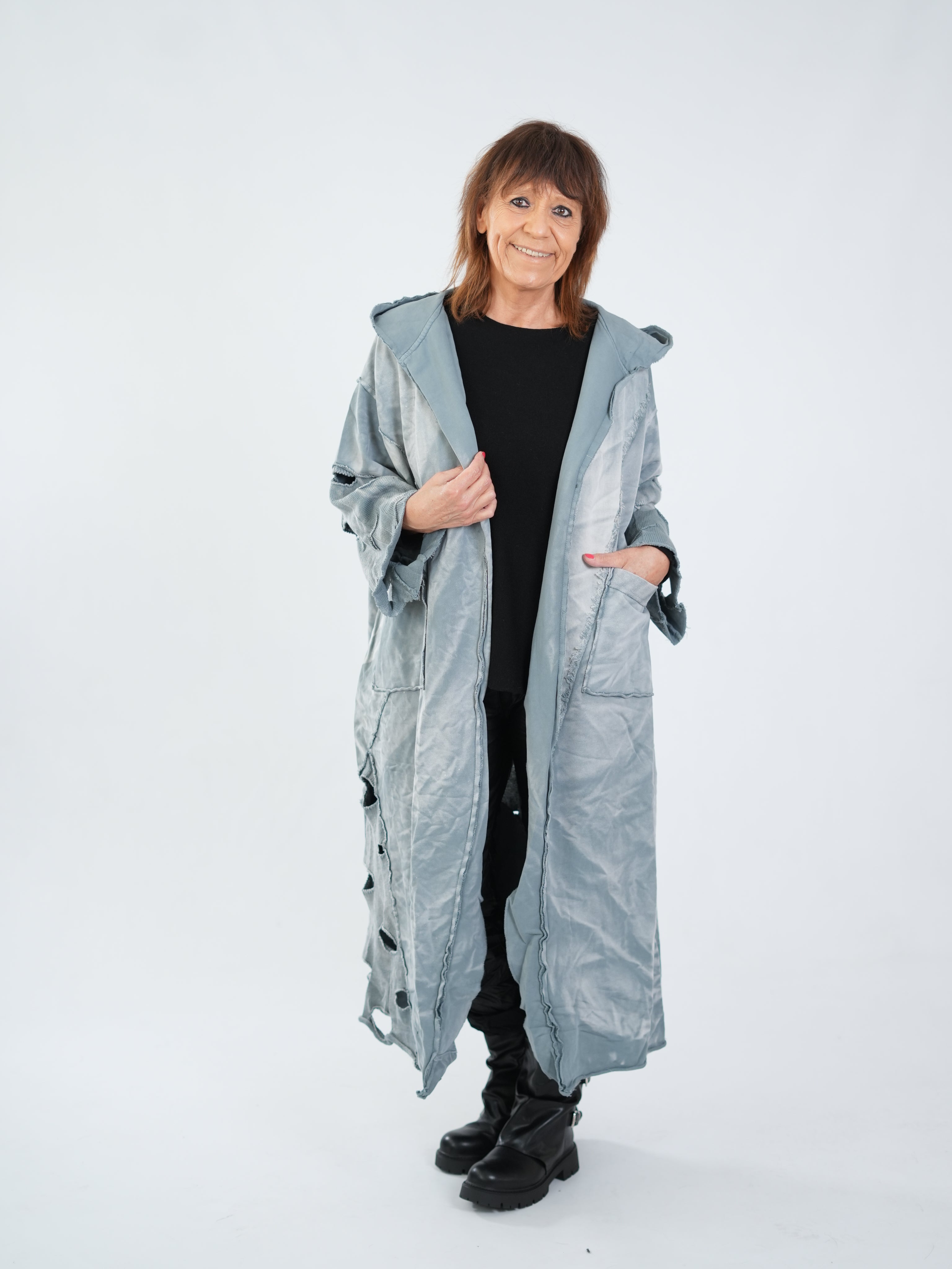 Marion ist 172cm groß und trägt Größe 40/42. Sie ist auf allen Produktbildern zu sehen und präsentiert die wunderschönen onesize Outfits.