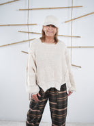 Ein lässiges Sweaty im coolen Materialmix – vorne in edlem Strick, hinten aus weichem Sweatstoff. 💫