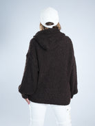 Dieser Bouclé-Strickpulli in Dark Schoko ist gerade geschnitten und etwas dicker gearbeitet – perfekt für kühle Tage. Er hat eine Kapuze, bleibt aber dank des angenehmen Ausschnitts schön bequem. Ein gemütliches Teil mit lässigem Look!