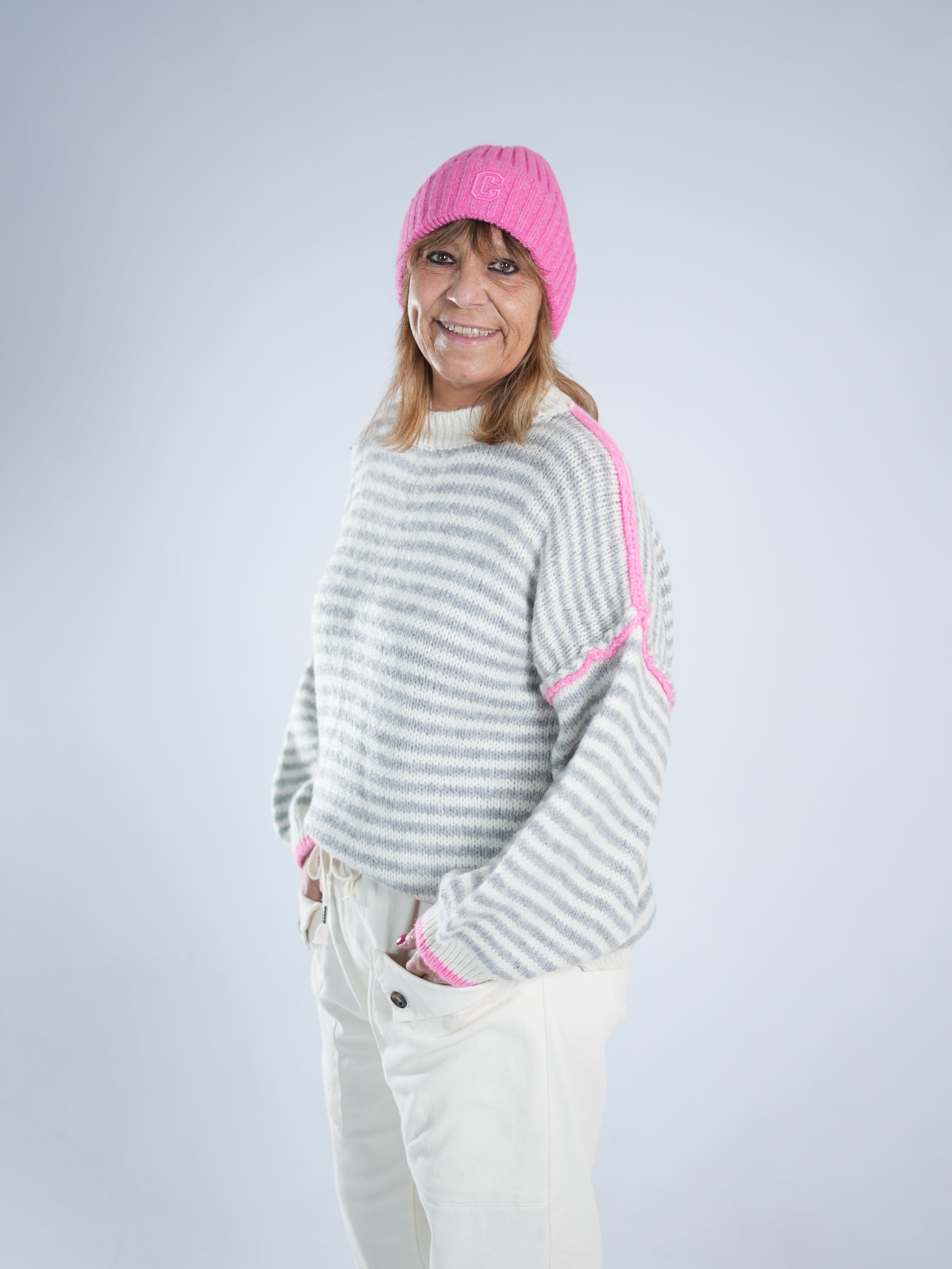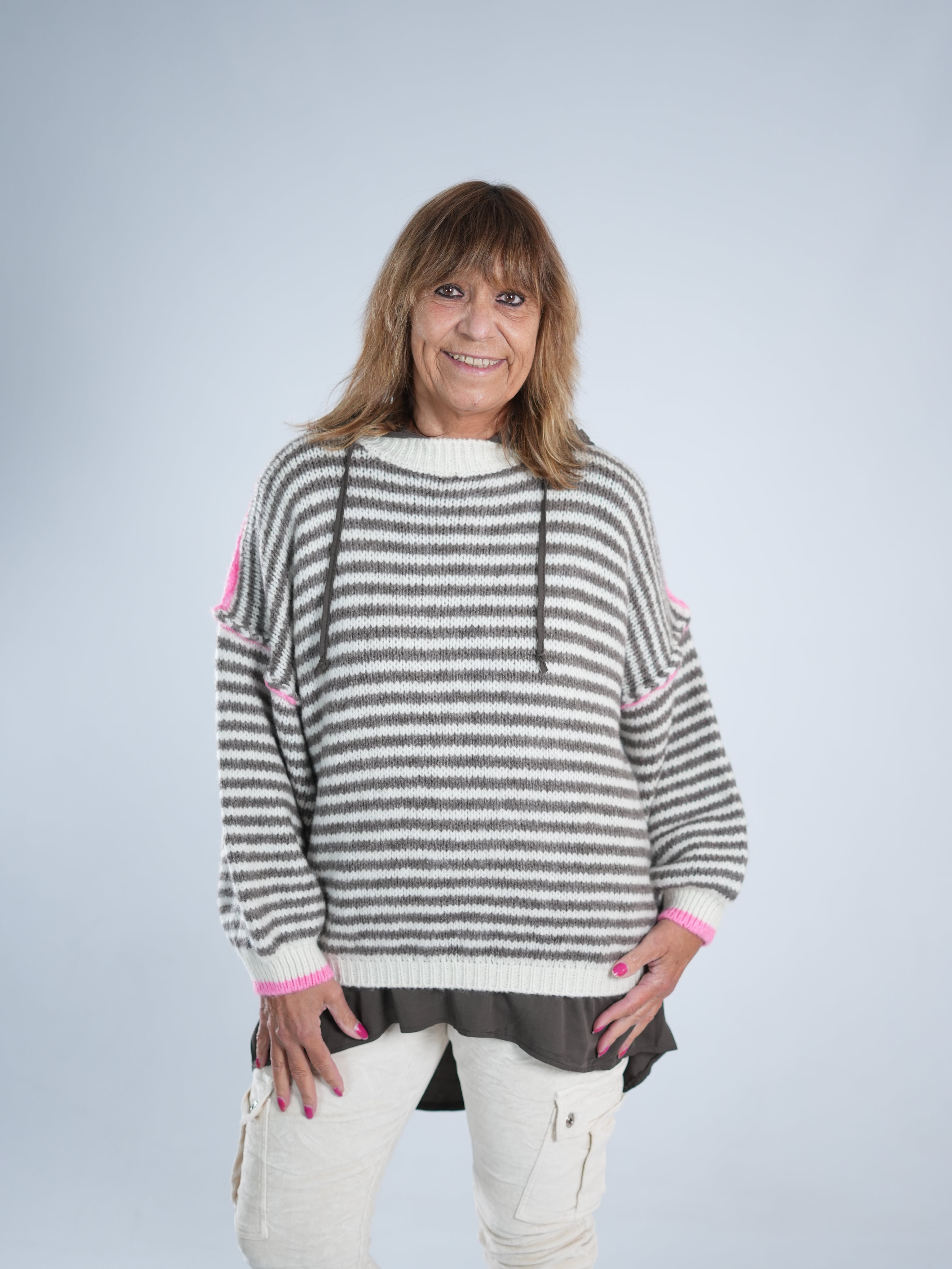 Marion ist 172cm groß und trägt Größe 40/42. Sie ist auf allen Produktbildern zu sehen und präsentiert die wunderschönen onesize Outfits.
