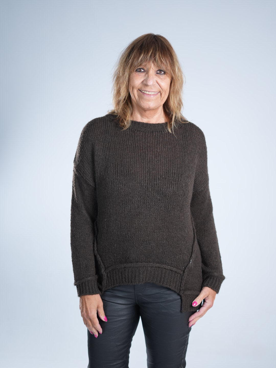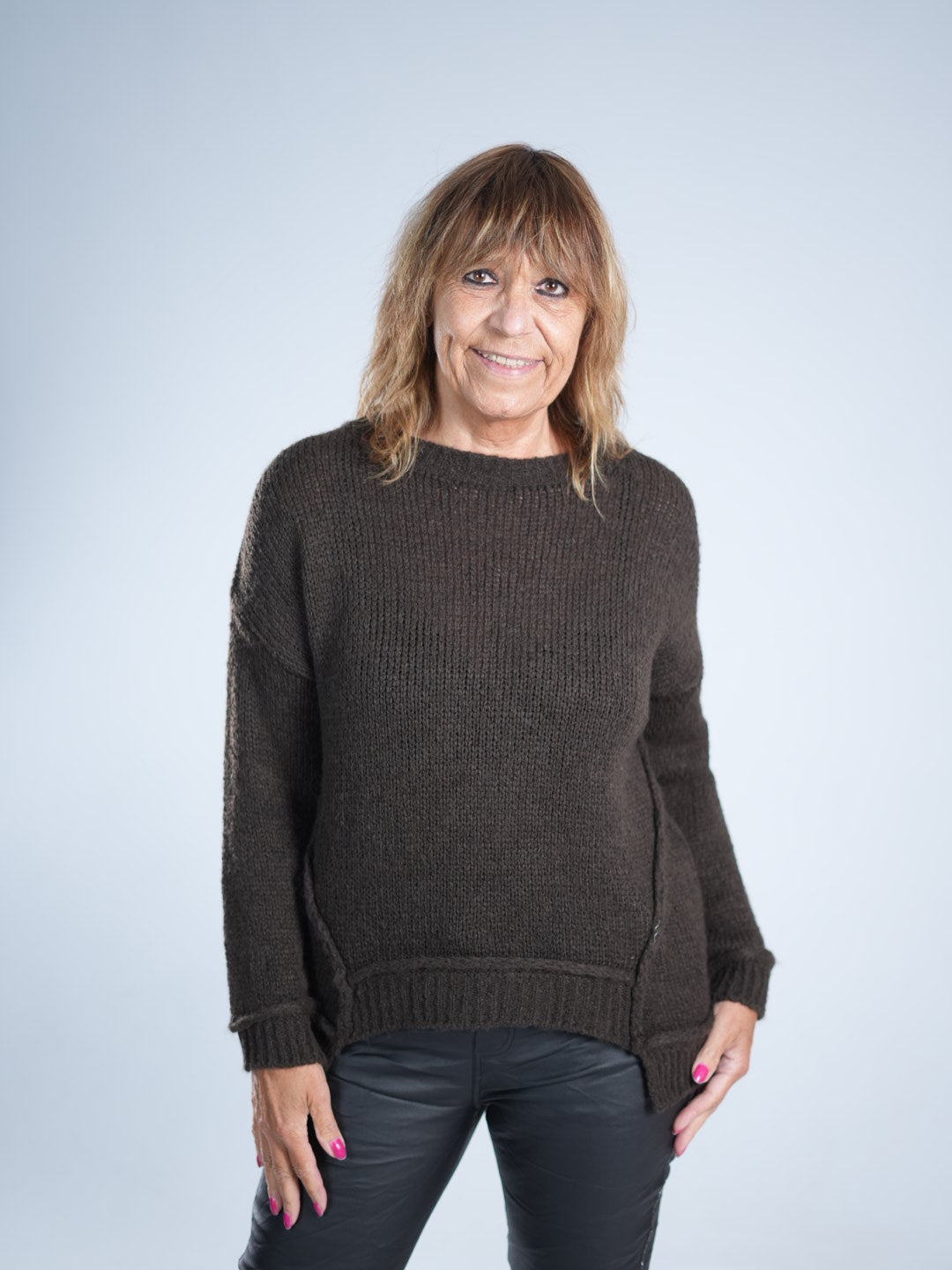 Marion ist 172cm groß und trägt Größe 40/42. Sie ist auf allen Produktbildern zu sehen und präsentiert die wunderschönen onesize Outfits.