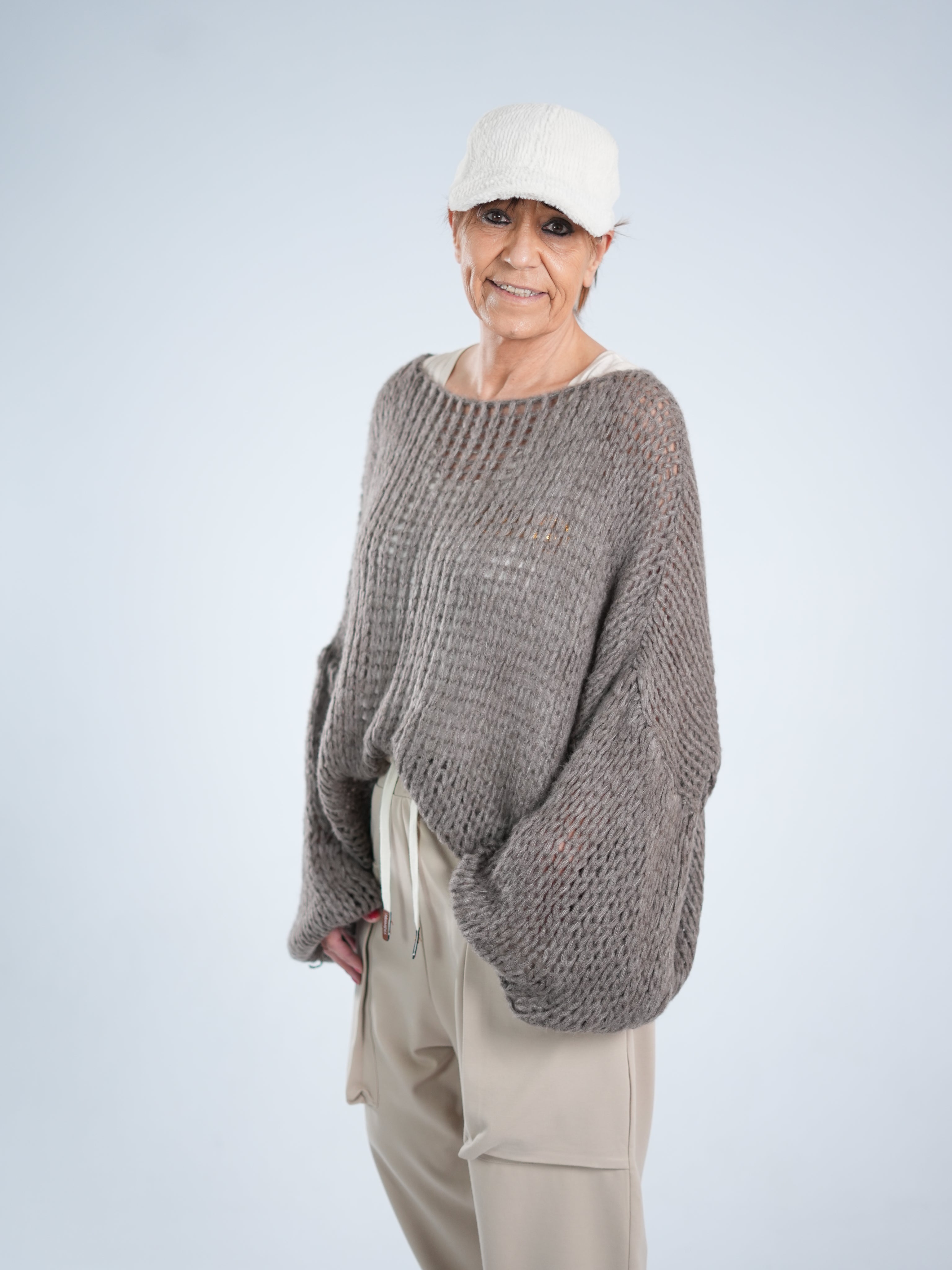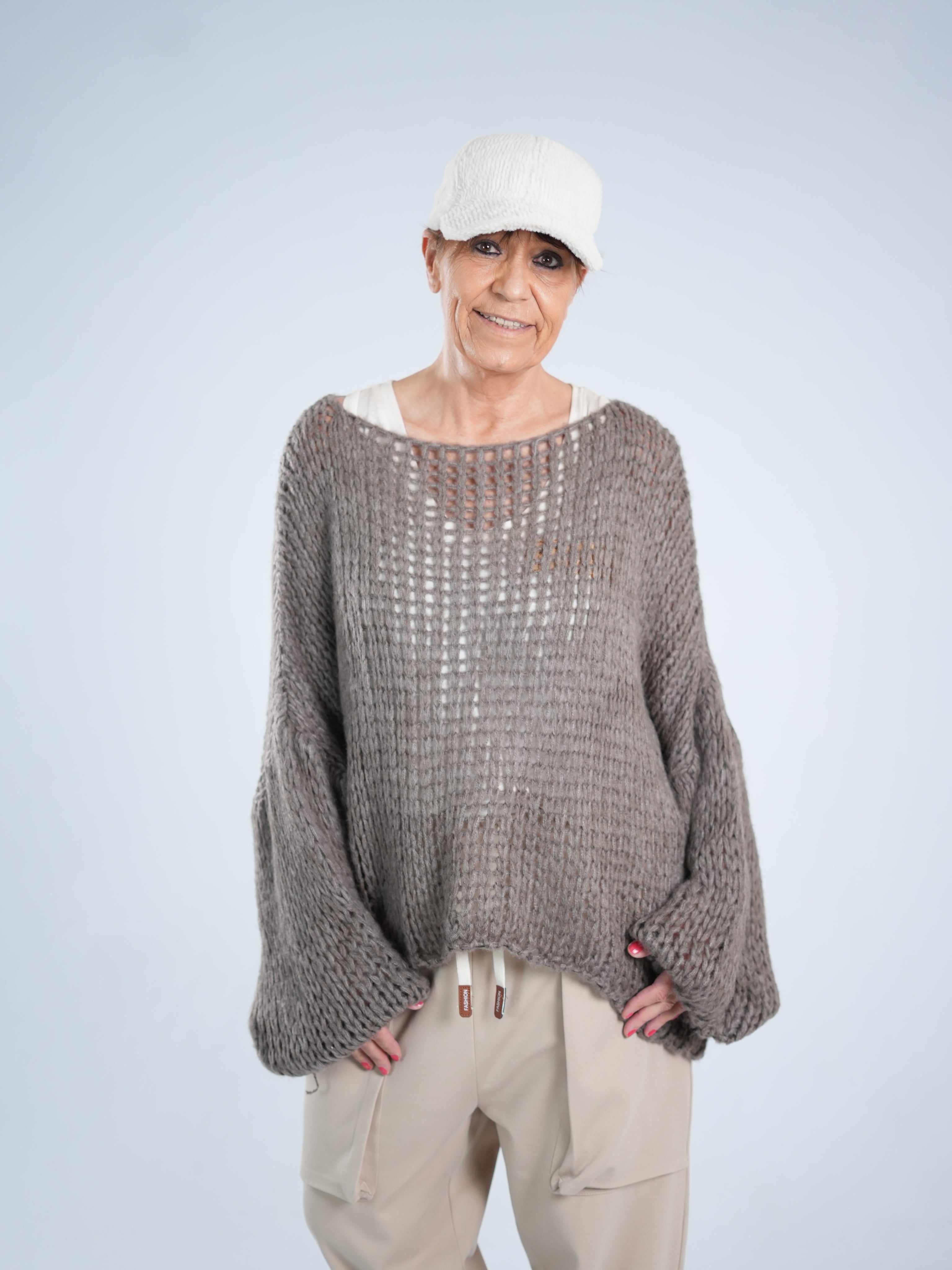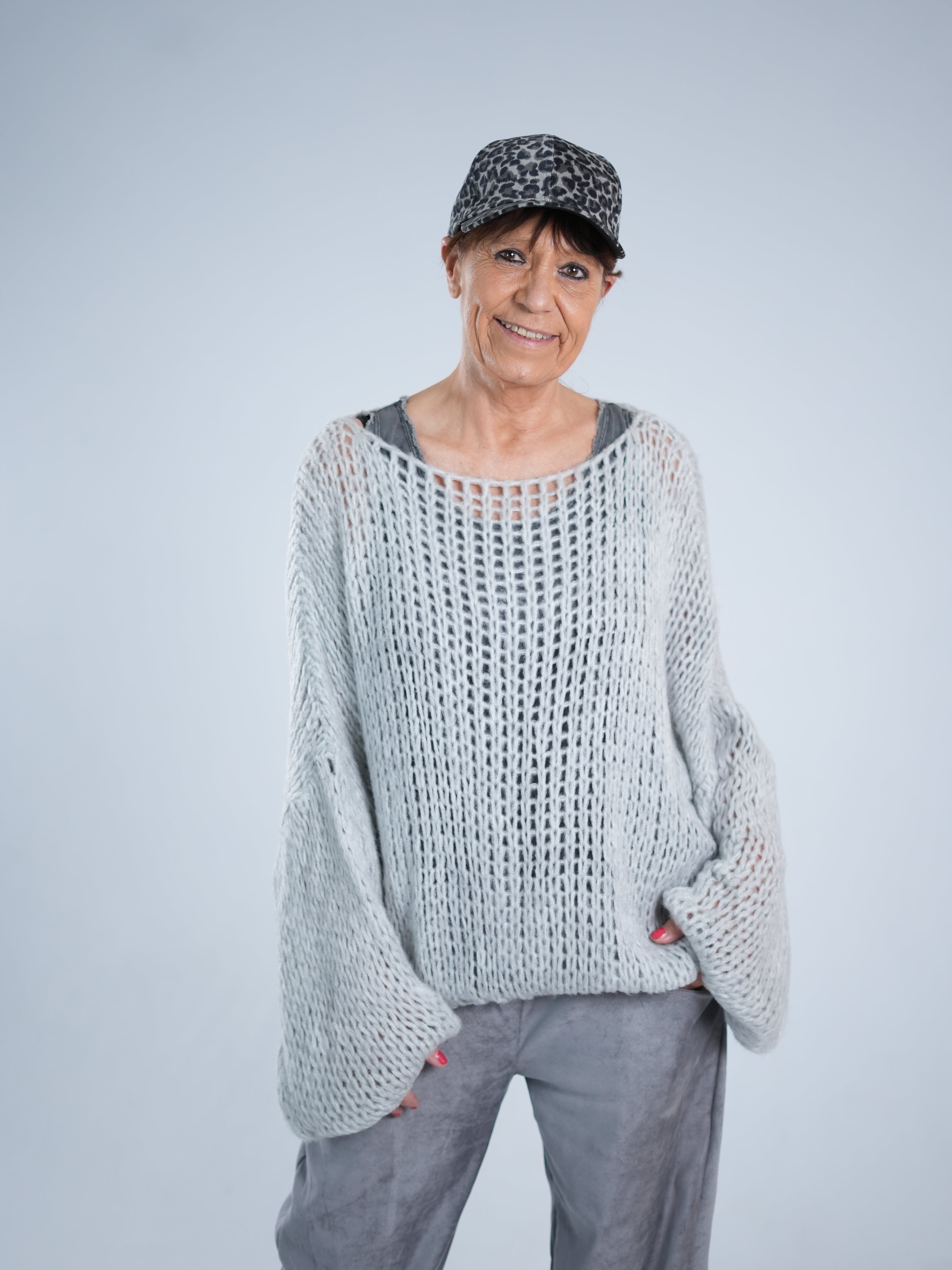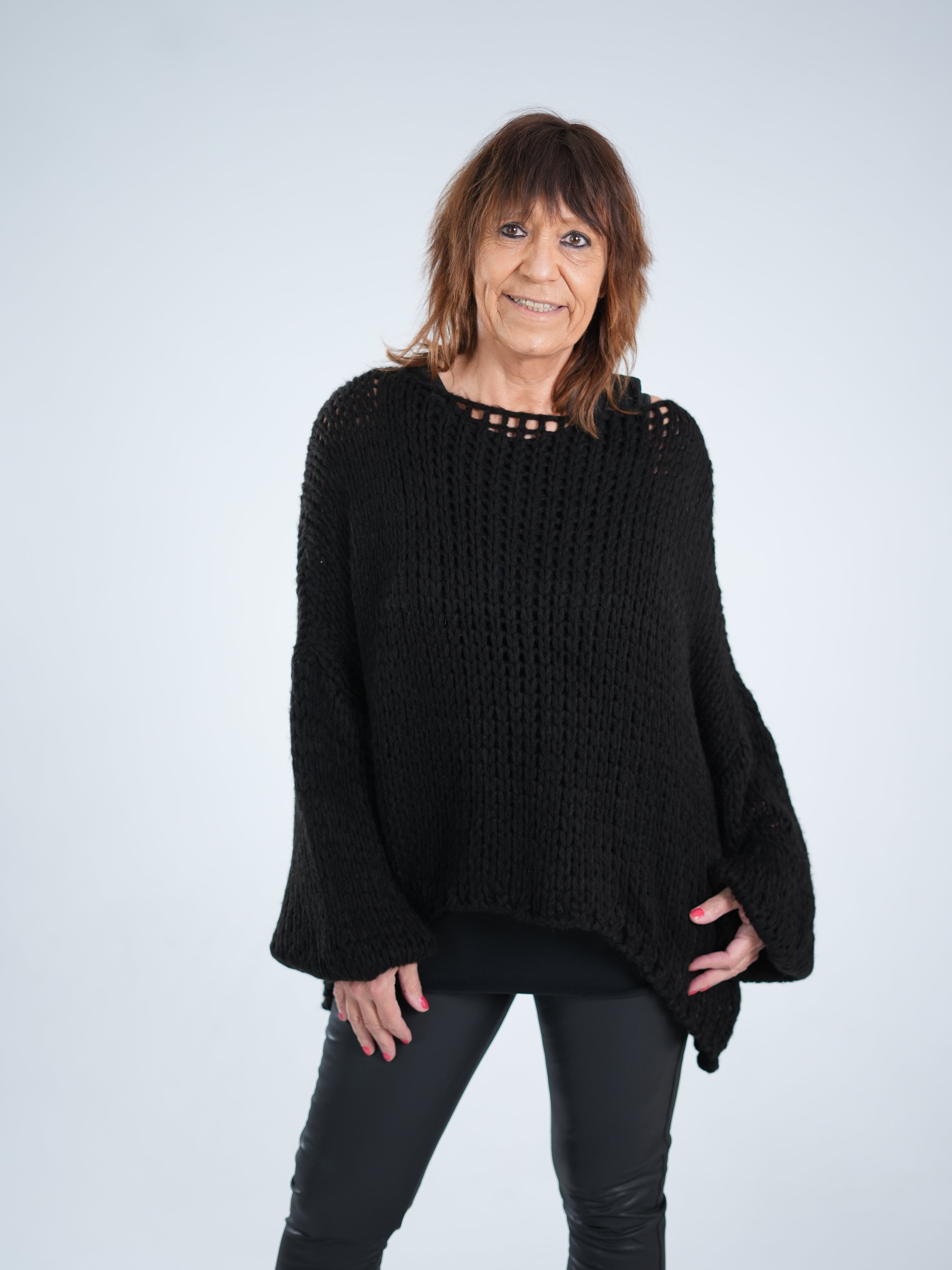 Marion ist 172cm groß und trägt Größe 40/42. Sie ist auf allen Produktbildern zu sehen und präsentiert die wunderschönen onesize Outfits.