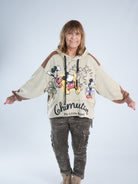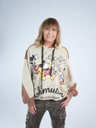 Marion ist 172cm groß und trägt Größe 40/42. Sie ist auf allen Produktbildern zu sehen und präsentiert die wunderschönen onesize Outfits.