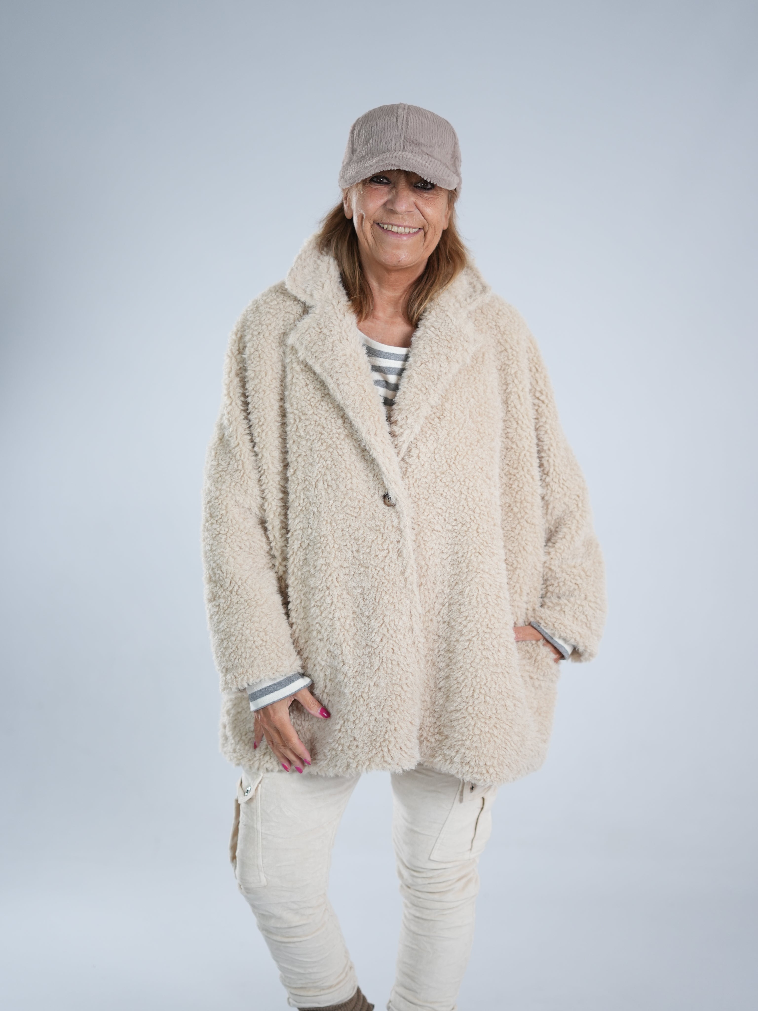Marion ist 172cm groß und trägt Größe 40/42. Sie ist auf allen Produktbildern zu sehen und präsentiert die wunderschönen onesize Outfits.