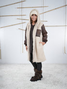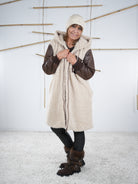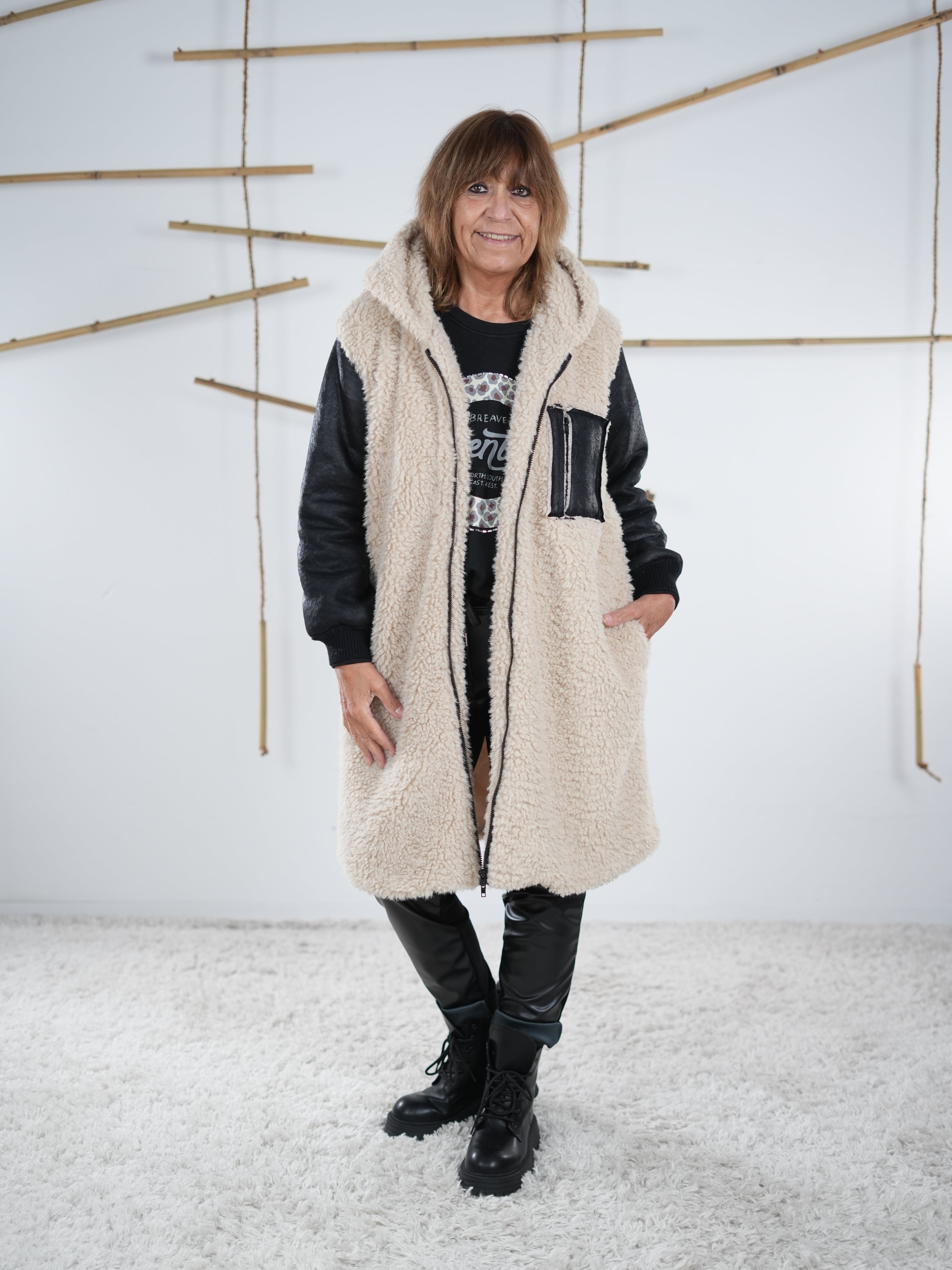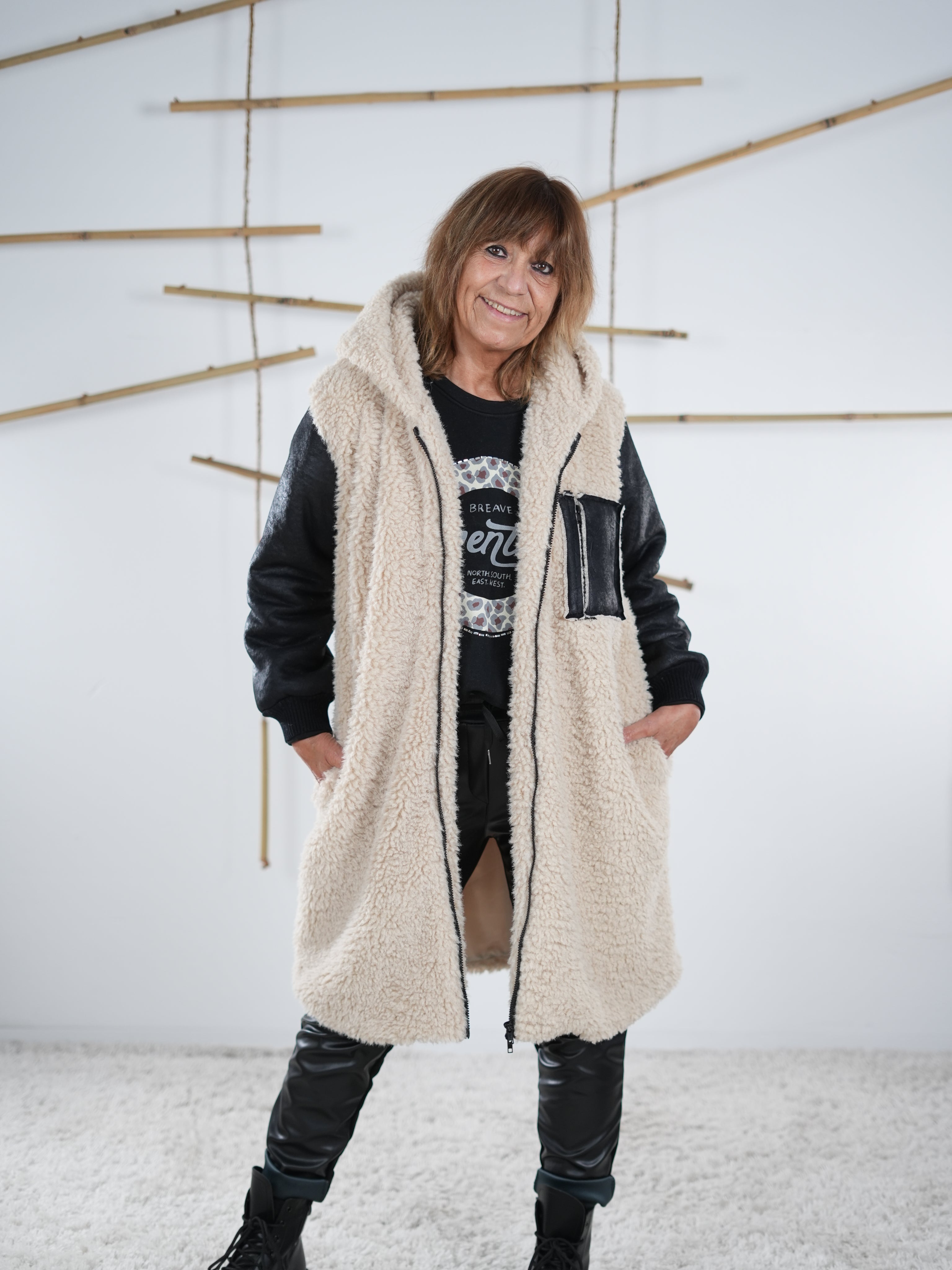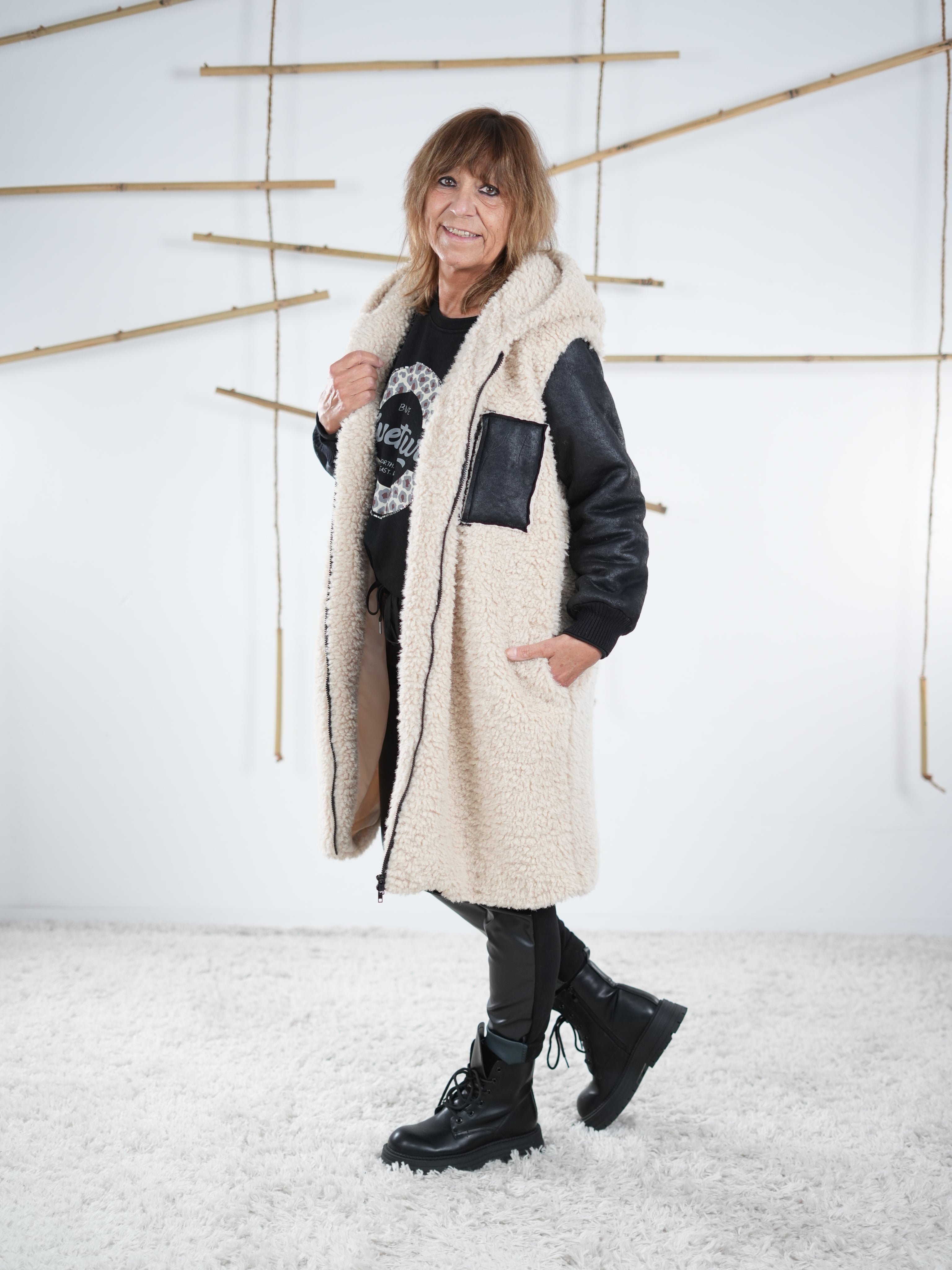 Marion ist 172cm groß und trägt Größe 40/42. Sie ist auf allen Produktbildern zu sehen und präsentiert die wunderschönen onesize Outfits.