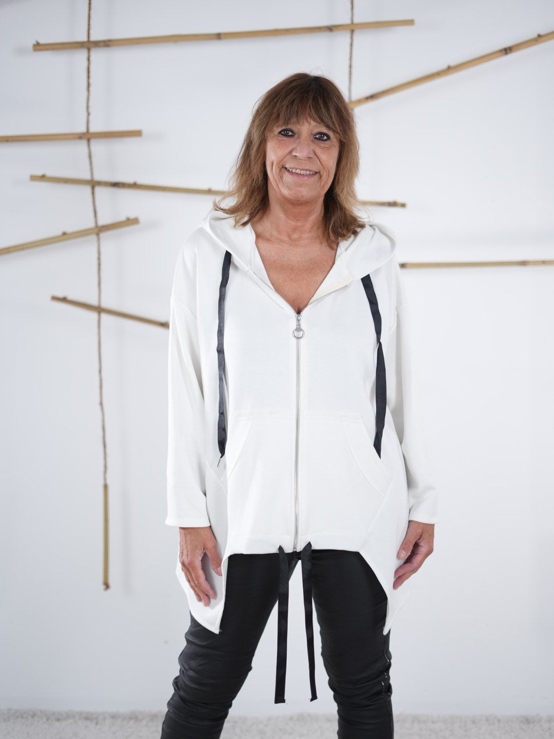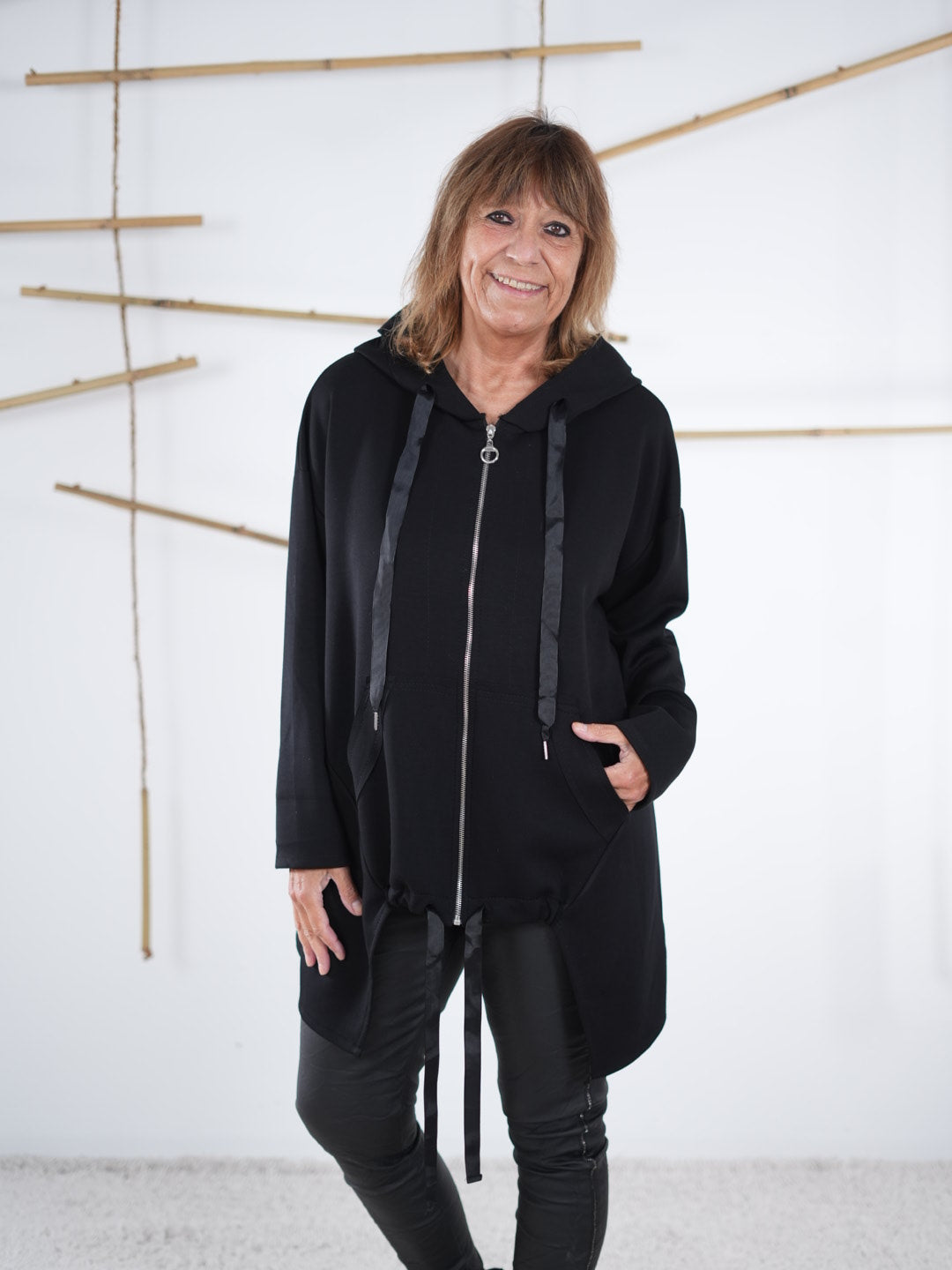 Marion ist 172cm groß und trägt Größe 40/42. Sie ist auf allen Produktbildern zu sehen und präsentiert die wunderschönen onesize Outfits.