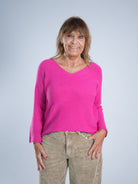 Marion ist 172cm groß und trägt Größe 40/42. Sie ist auf allen Produktbildern zu sehen und präsentiert die wunderschönen onesize Outfits.