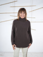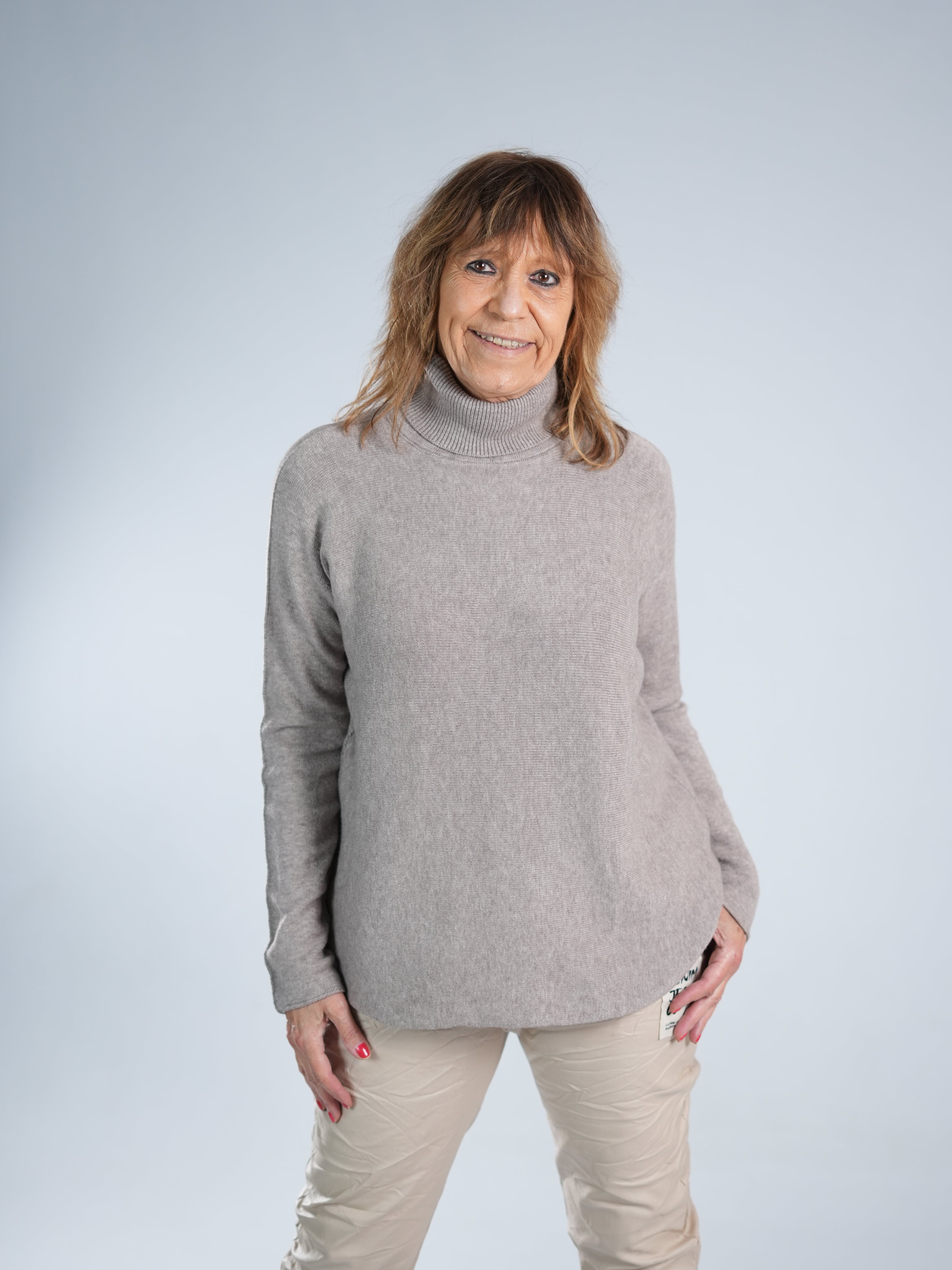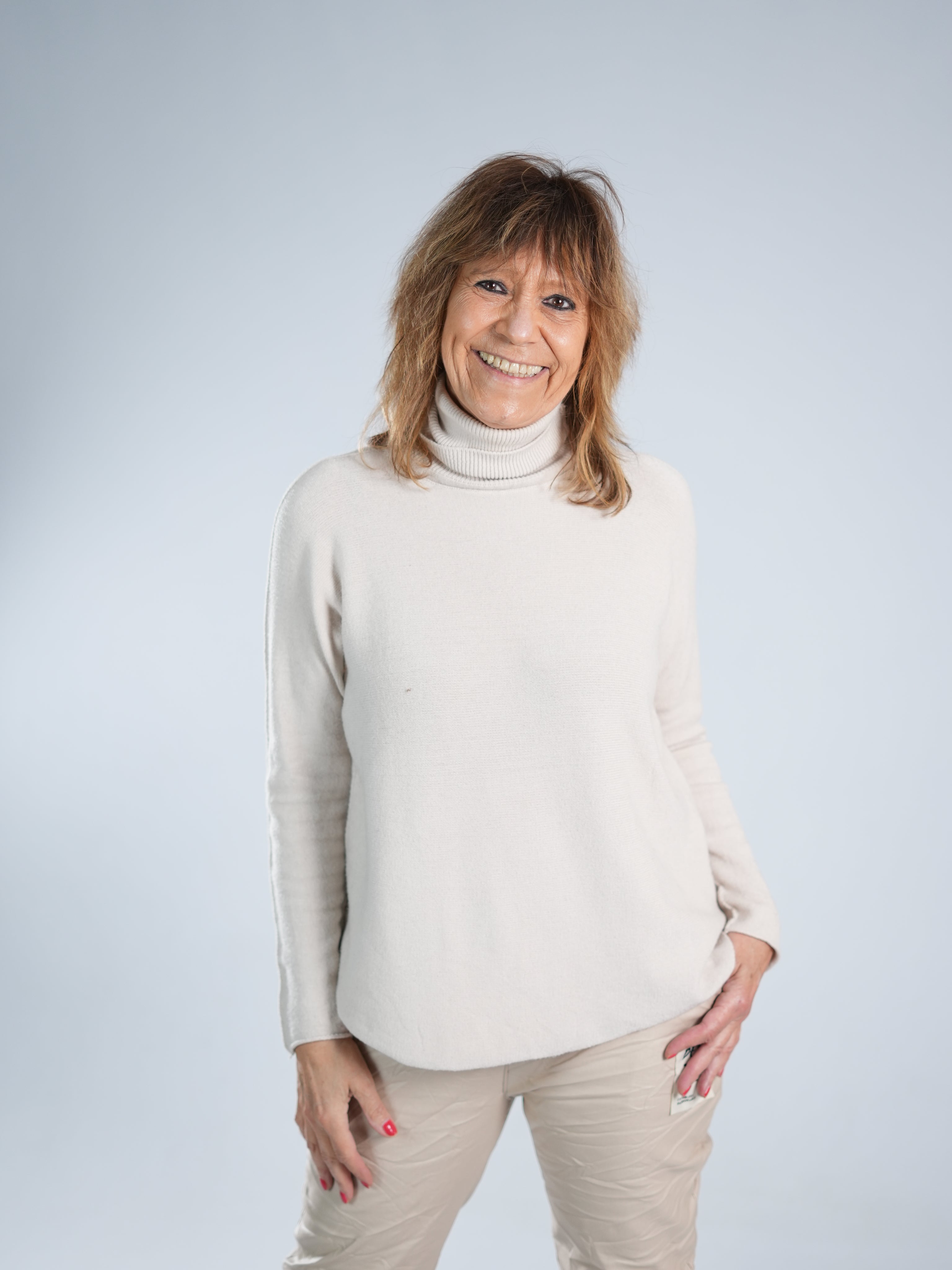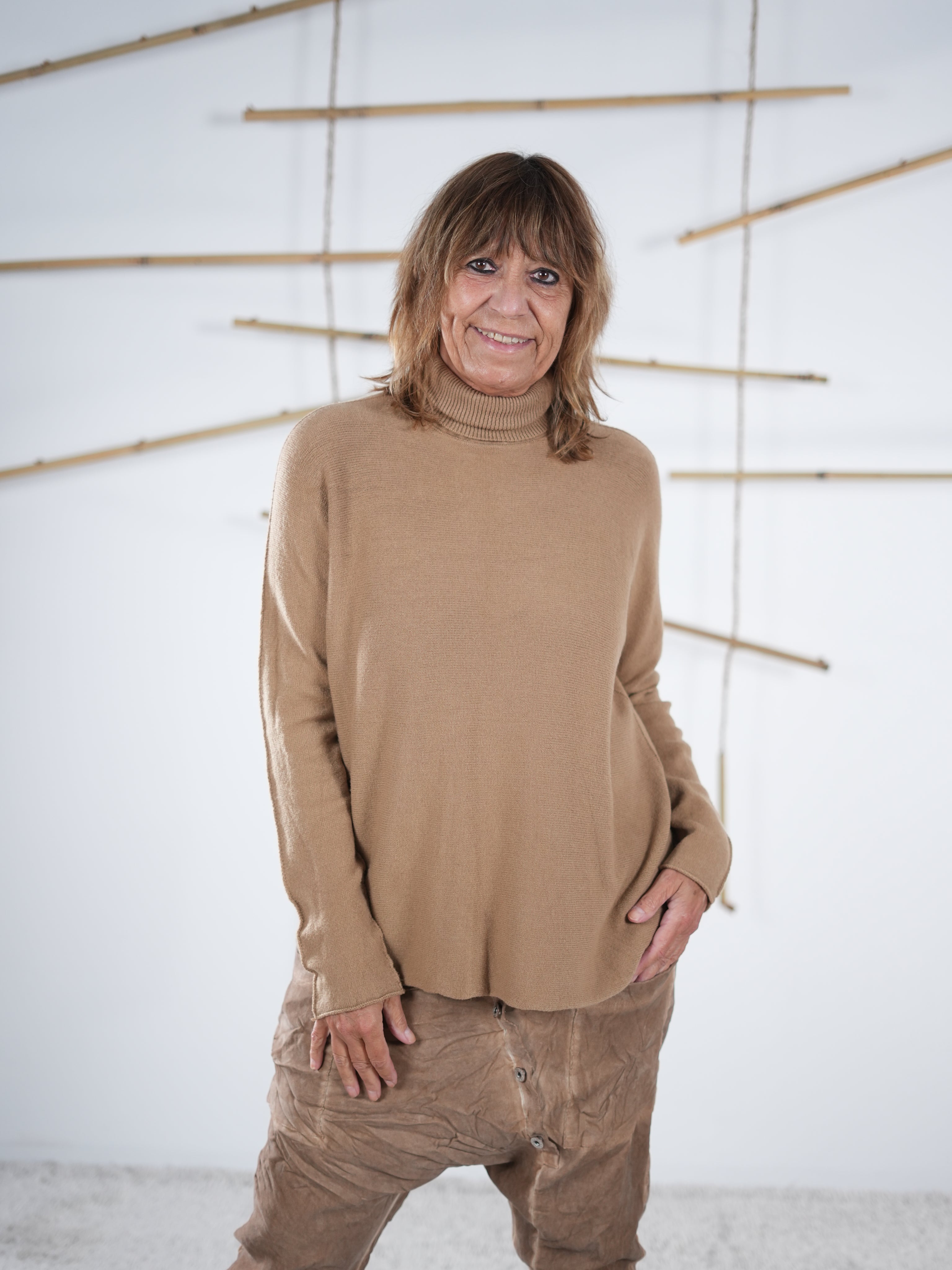 Marion ist 172cm groß und trägt Größe 40/42. Sie ist auf allen Produktbildern zu sehen und präsentiert die wunderschönen onesize Outfits.
