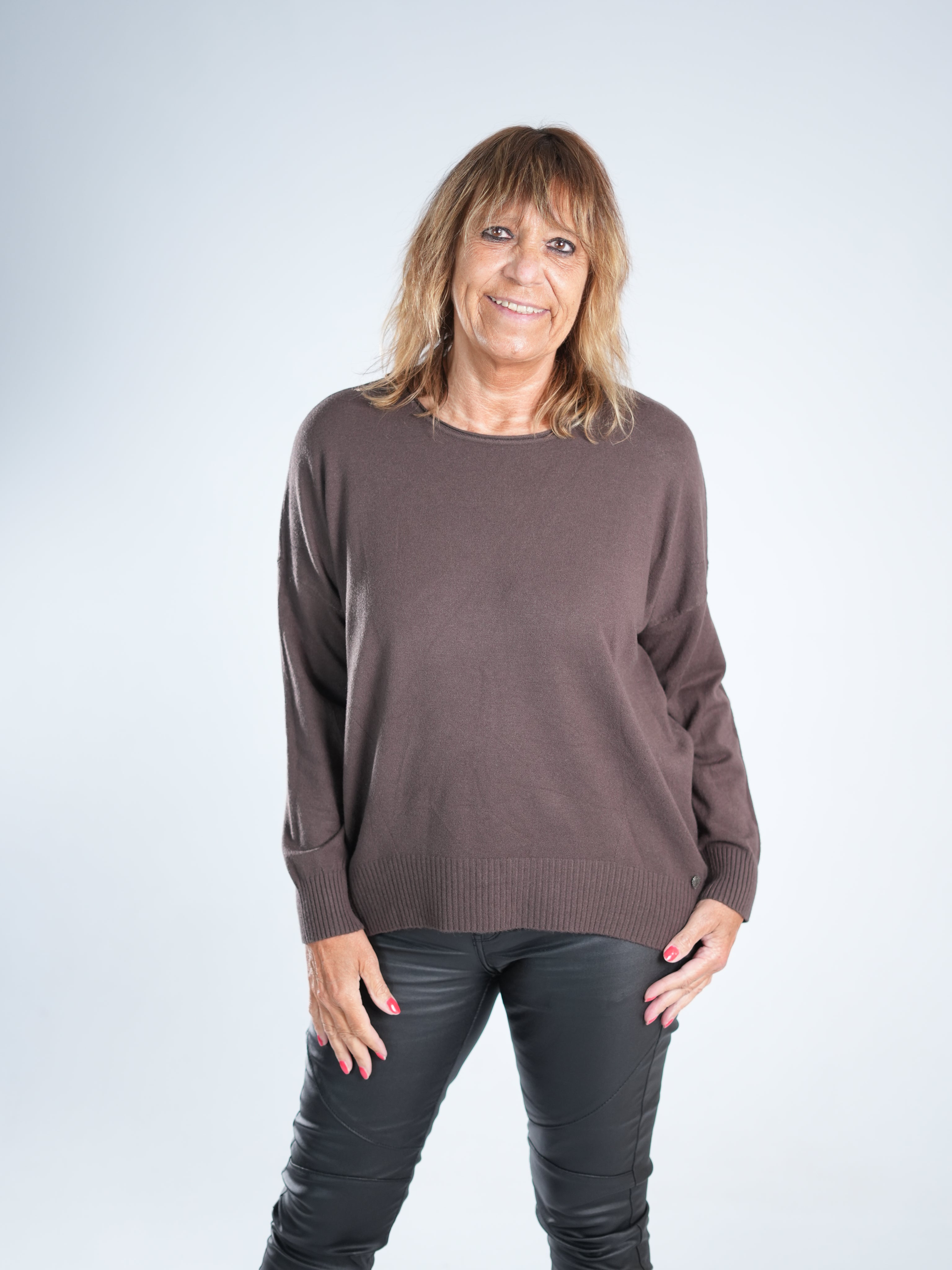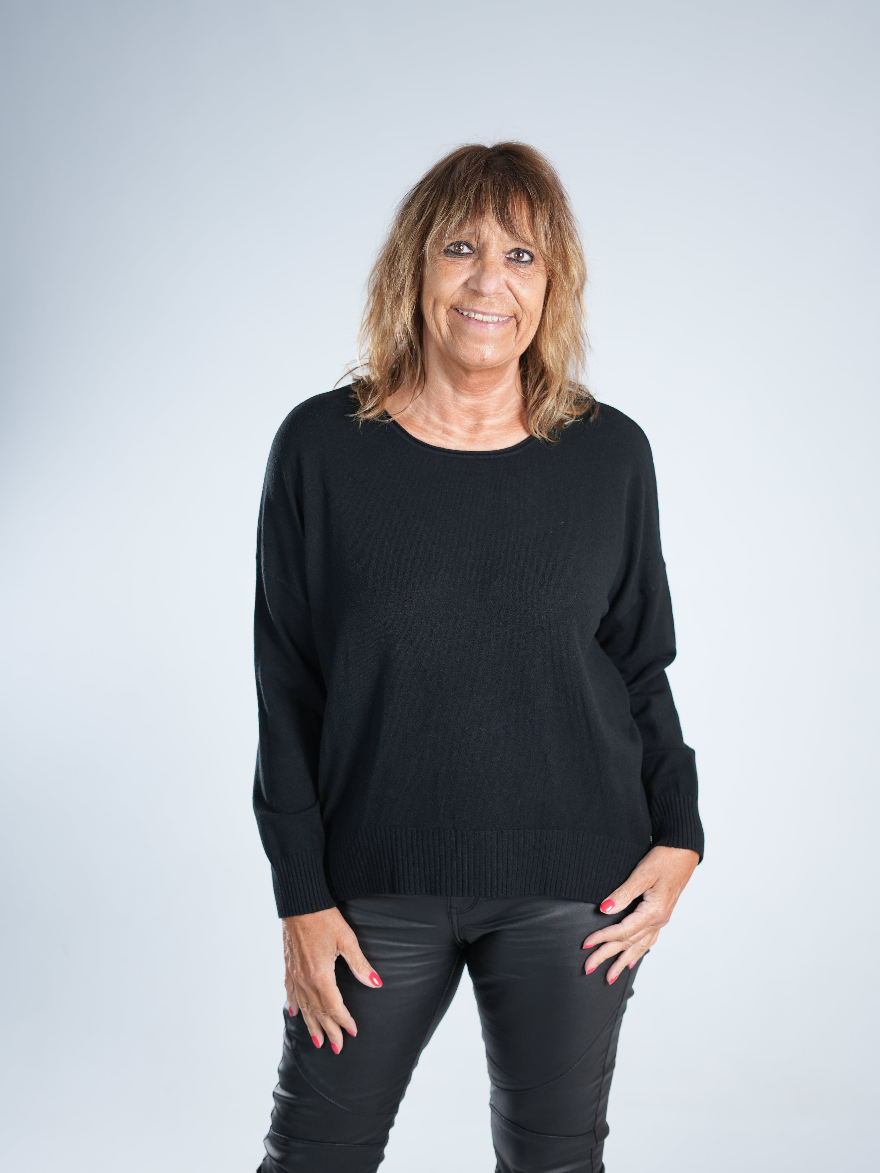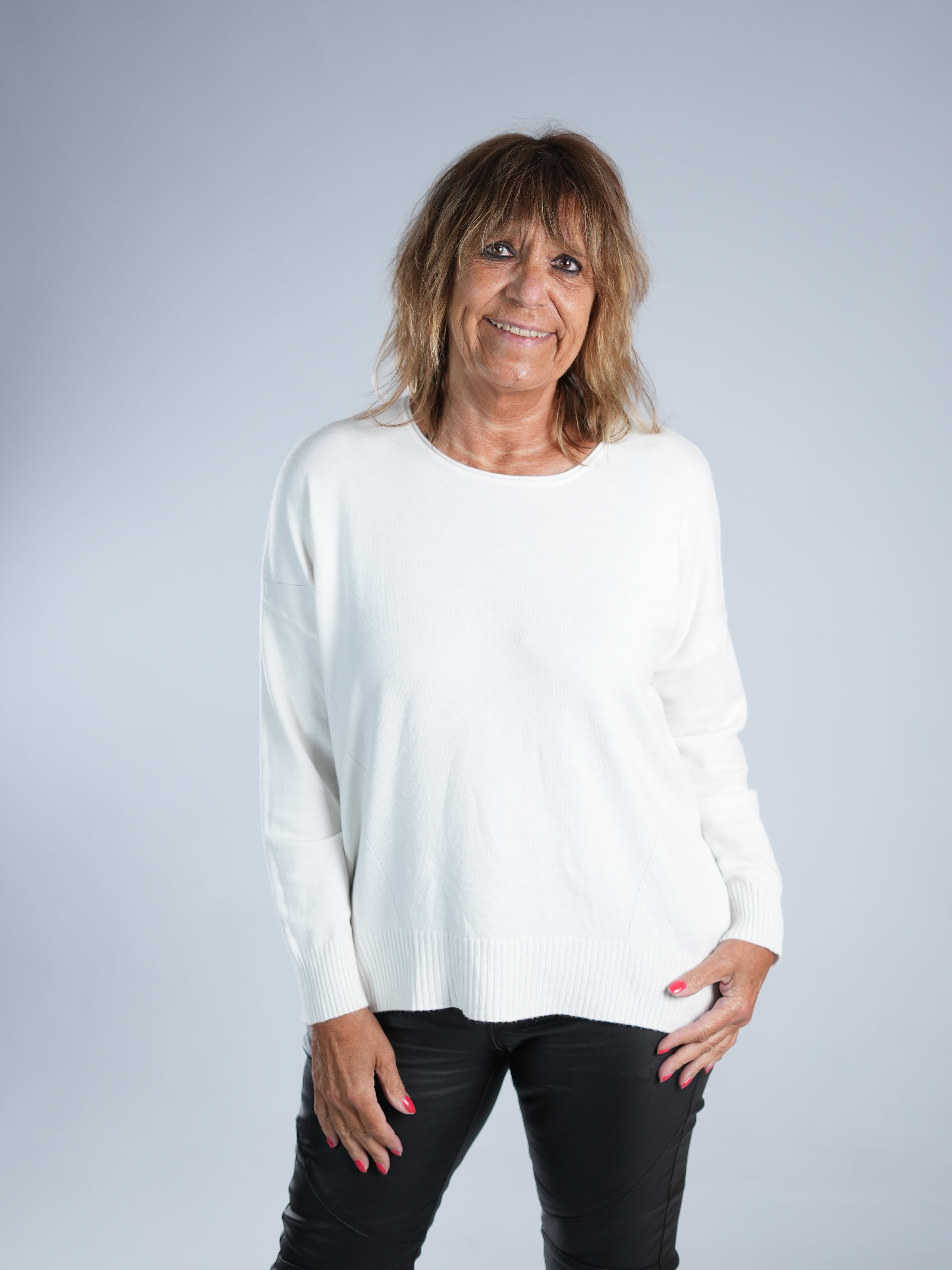 Marion ist 172cm groß und trägt Größe 40/42. Sie ist auf allen Produktbildern zu sehen und präsentiert die wunderschönen onesize Outfits.
