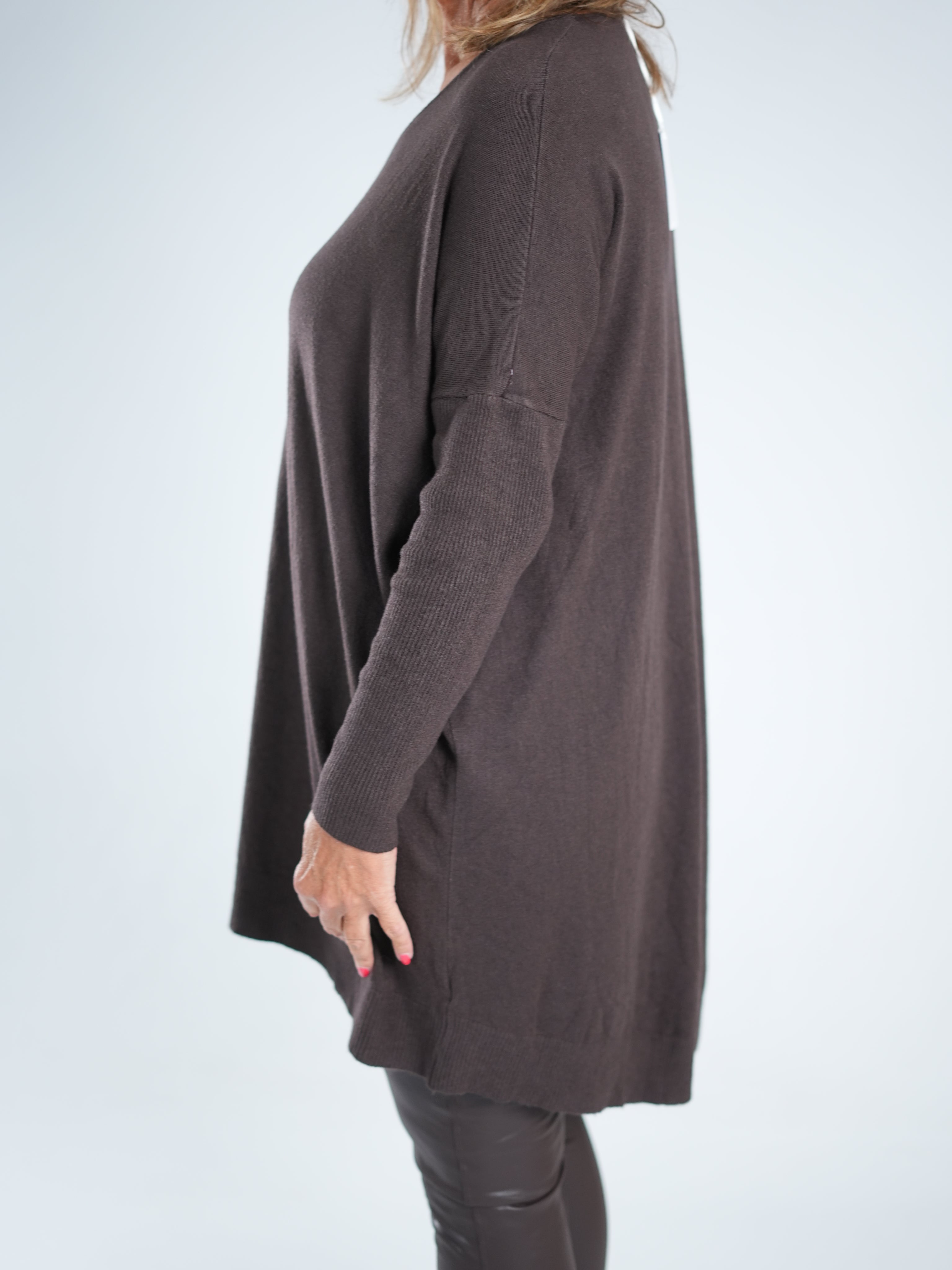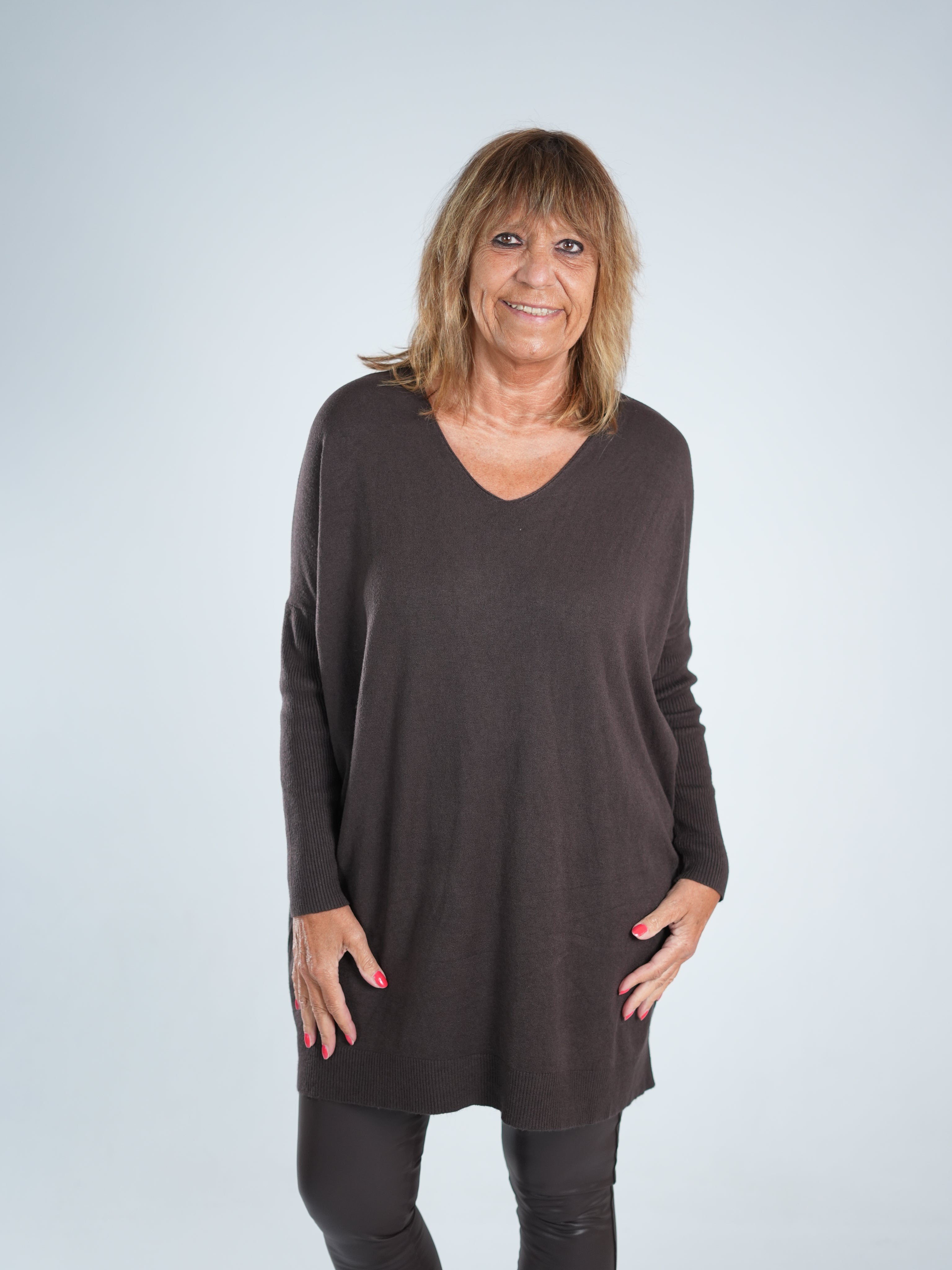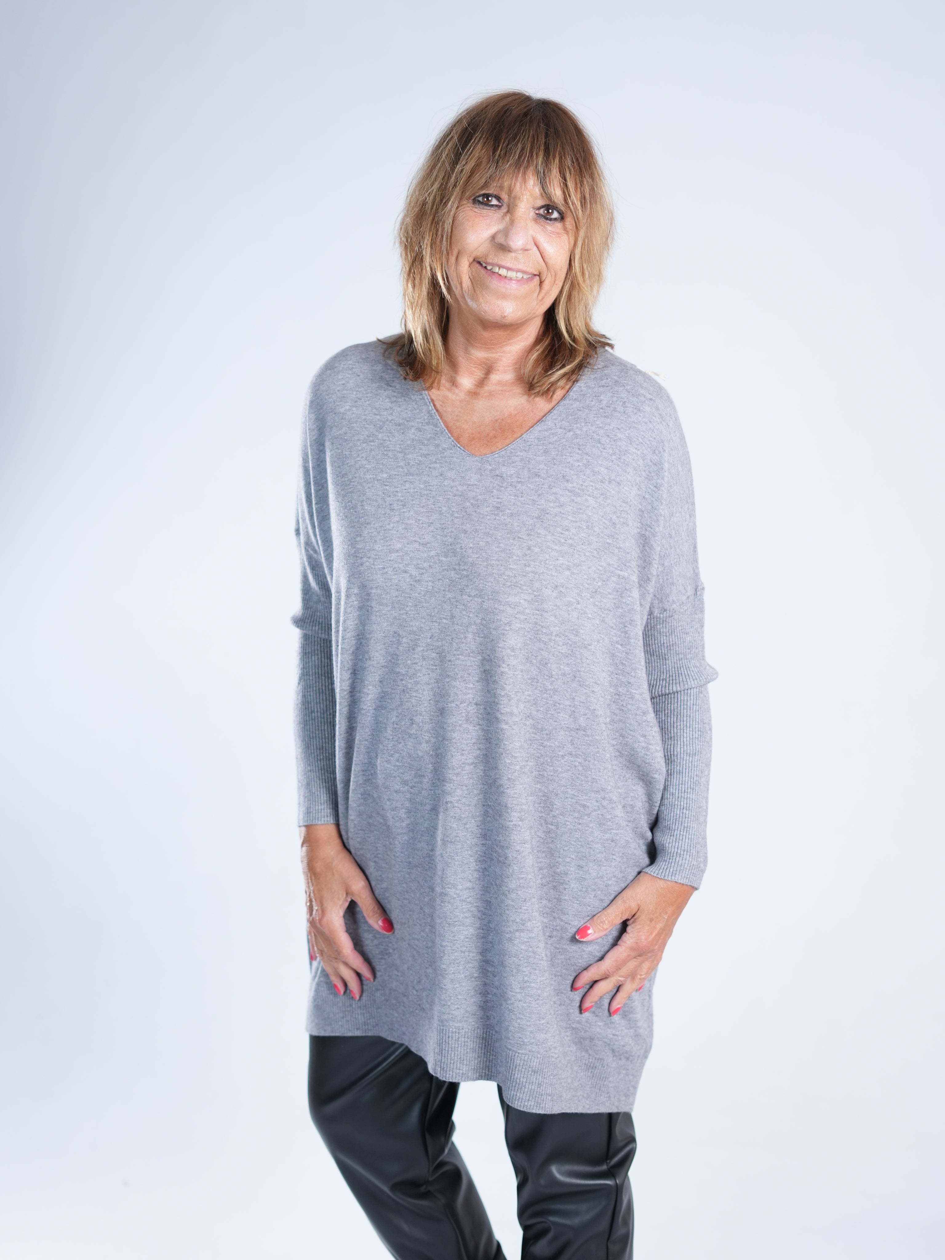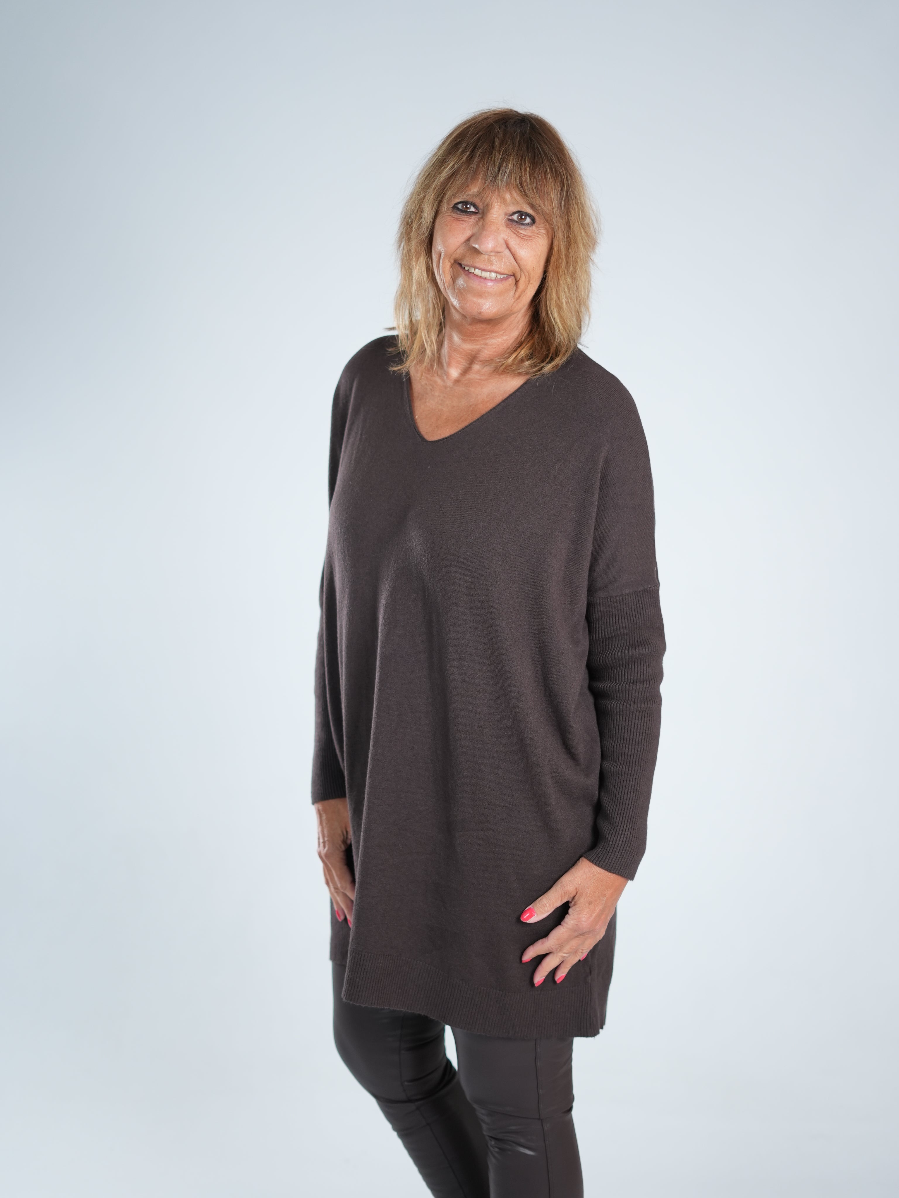 Marion ist 172cm groß und trägt Größe 40/42. Sie ist auf allen Produktbildern zu sehen und präsentiert die wunderschönen onesize Outfits.
