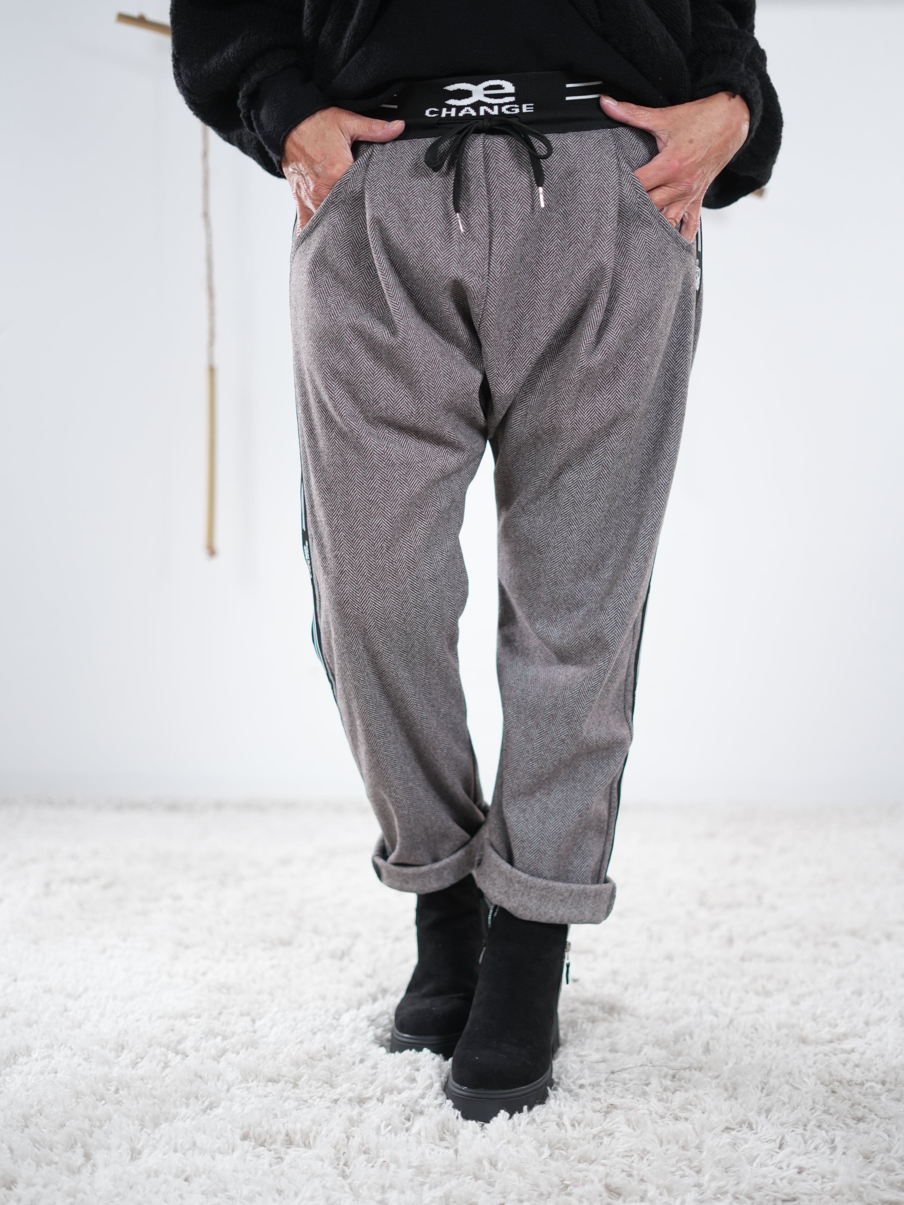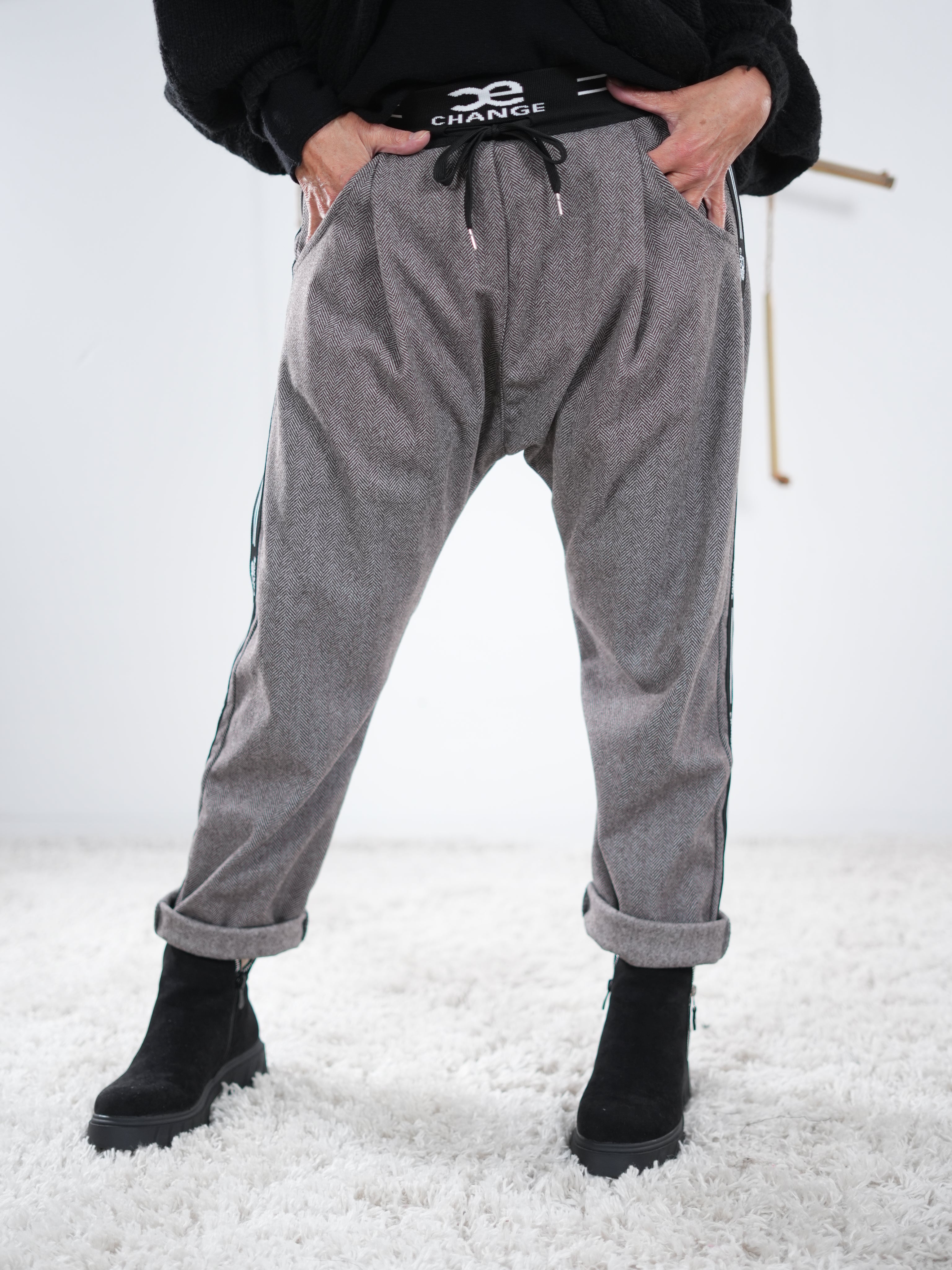 Eine lässige, weiche Bundfalten-Baggy mit trendigem Hahnentrittmuster.