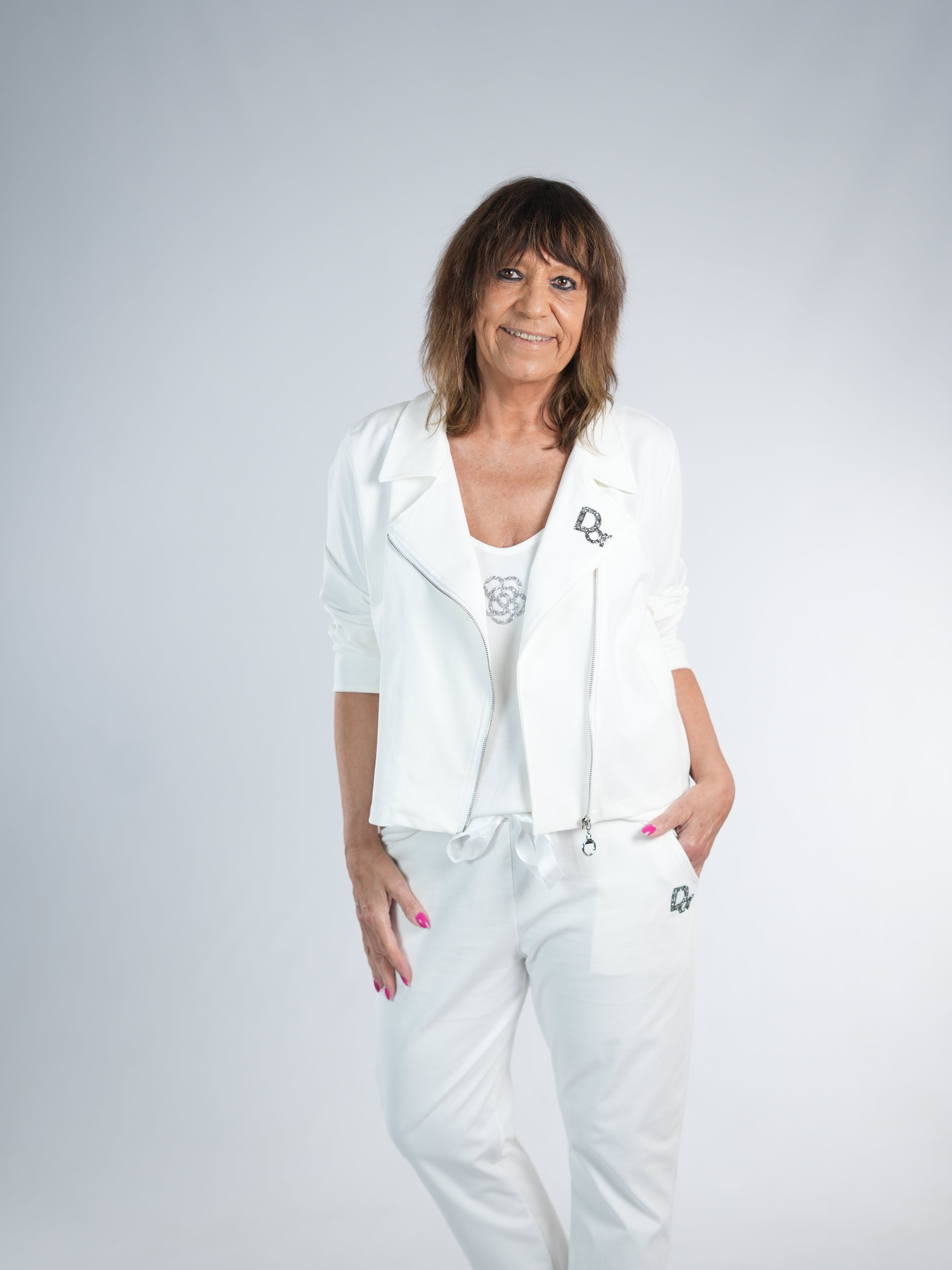 Marion ist 172cm groß und trägt Größe 40/42. Sie ist auf allen Produktbildern zu sehen und präsentiert die wunderschönen onesize Outfits.