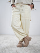 Mit Gummizugbündchen, zwei großen aufgesetzten Taschen und pumpigem Schnitt ist sie lässig, bequem und absolut alltagstauglich.
