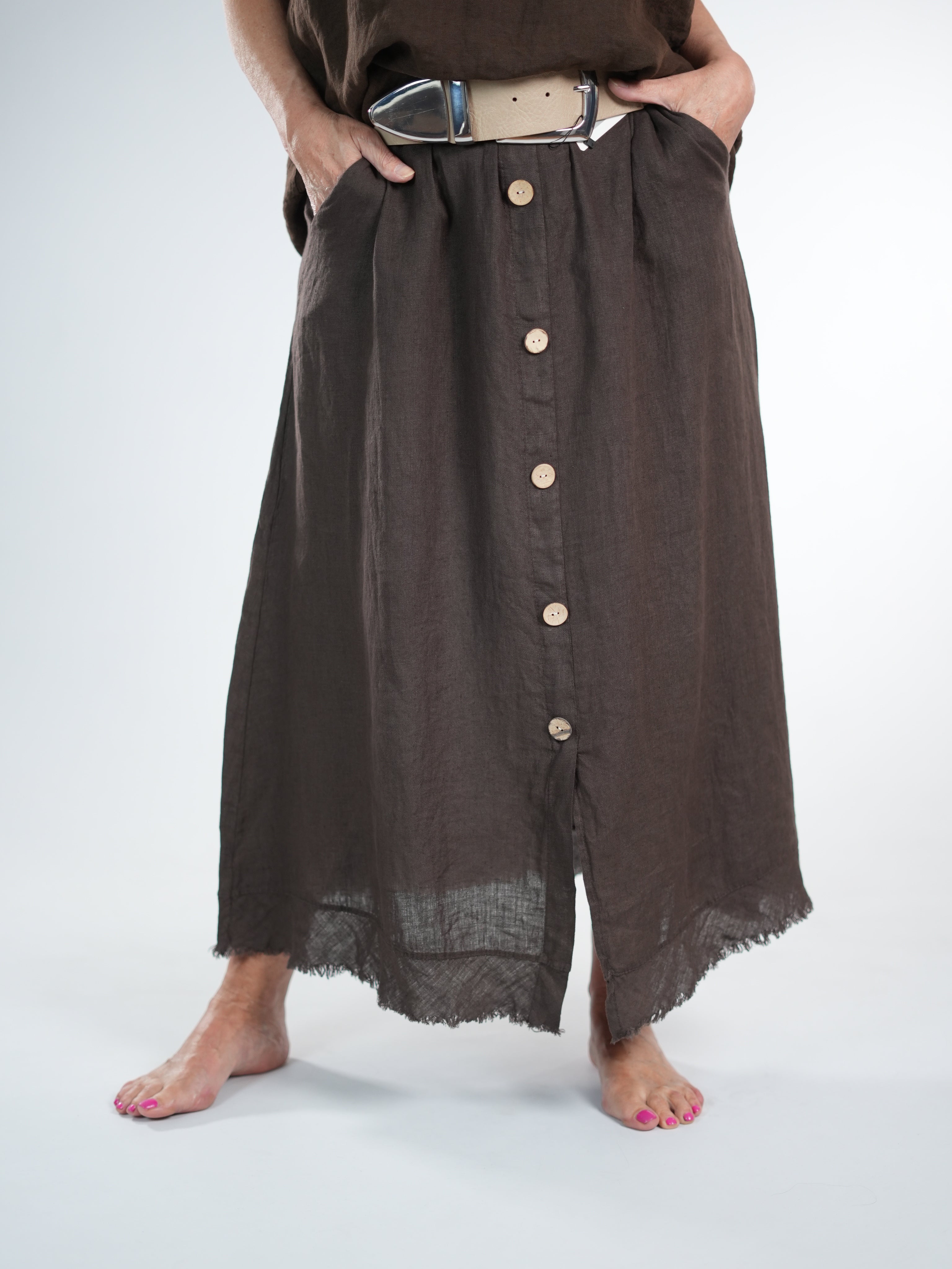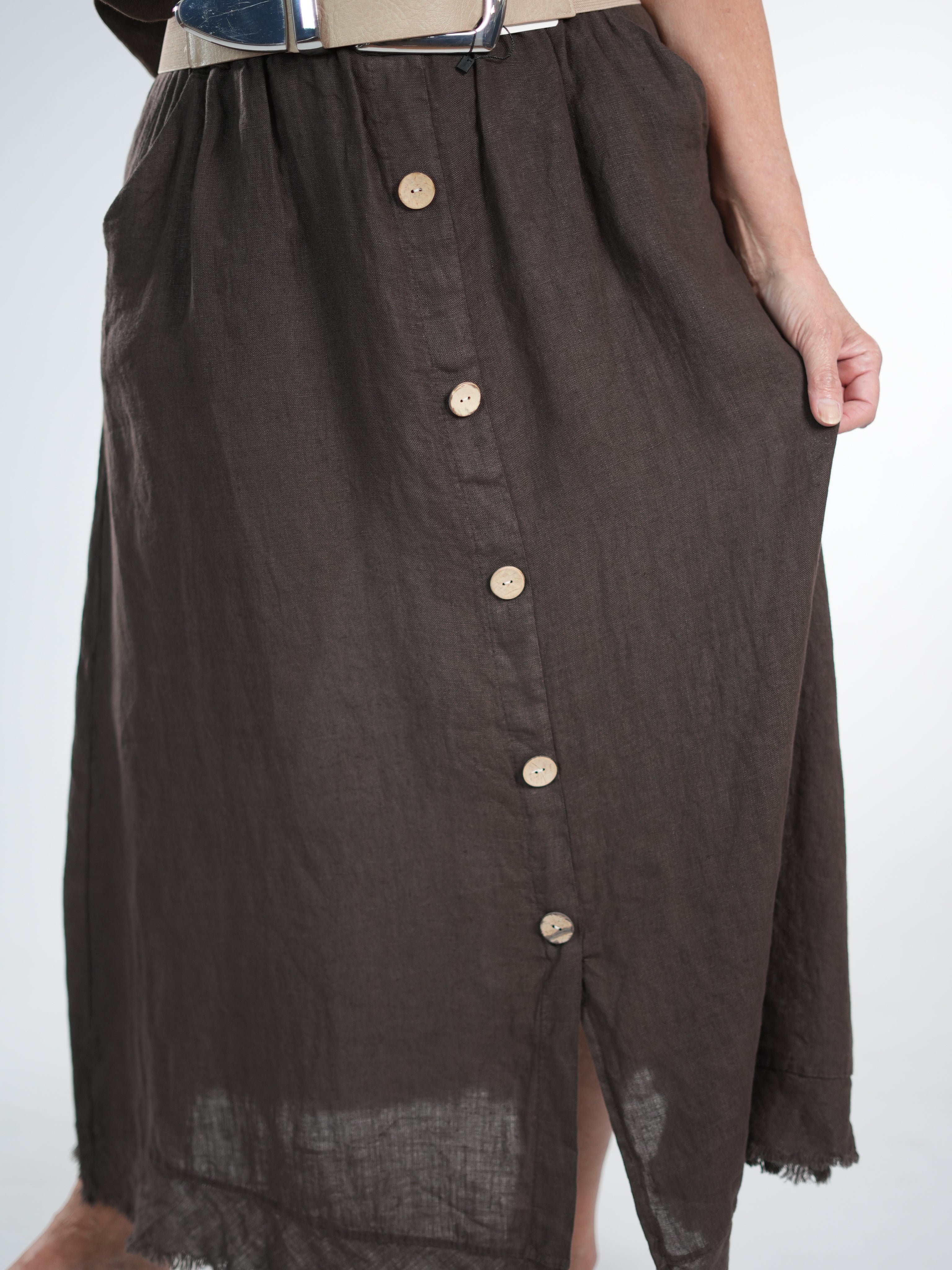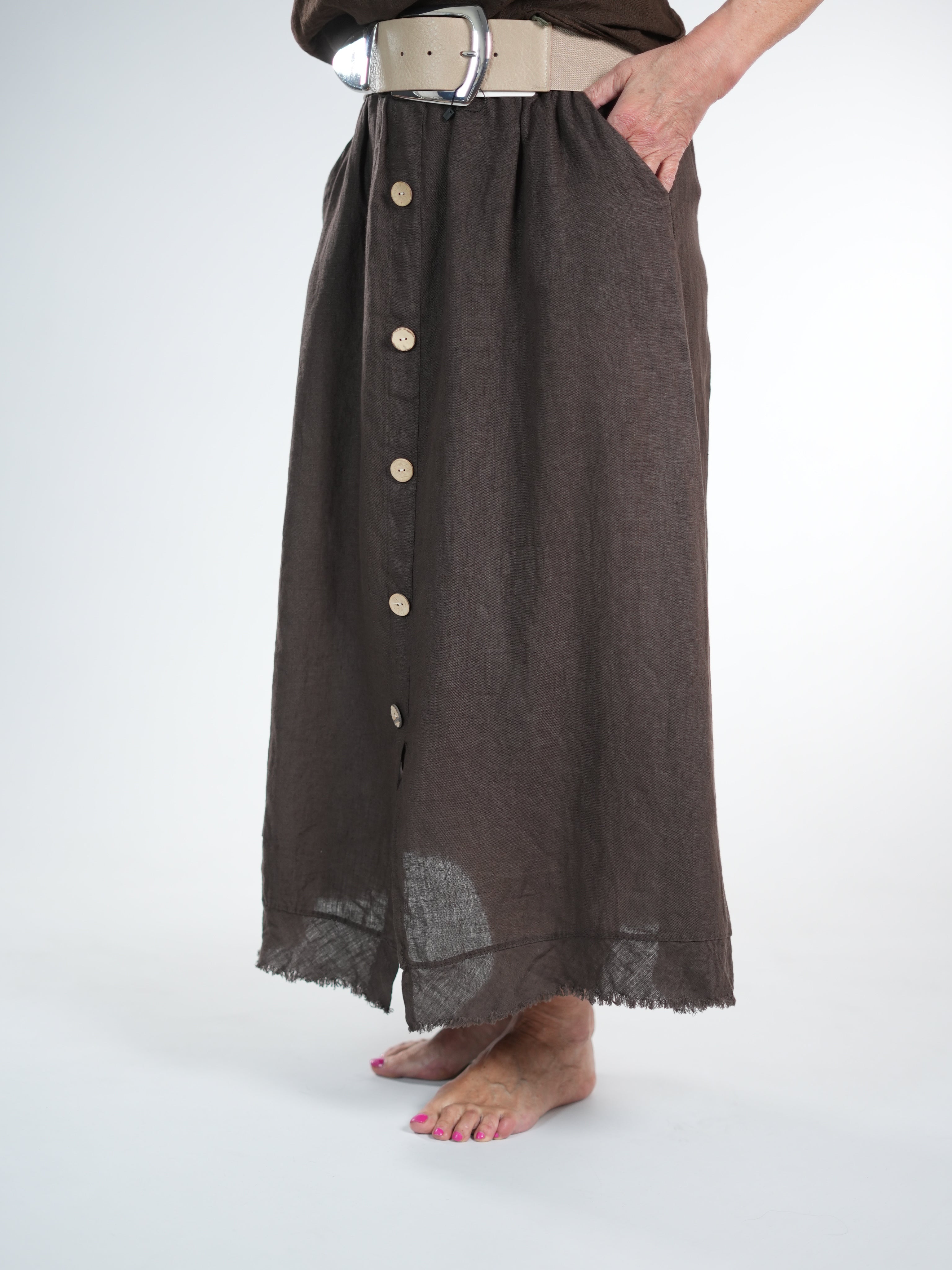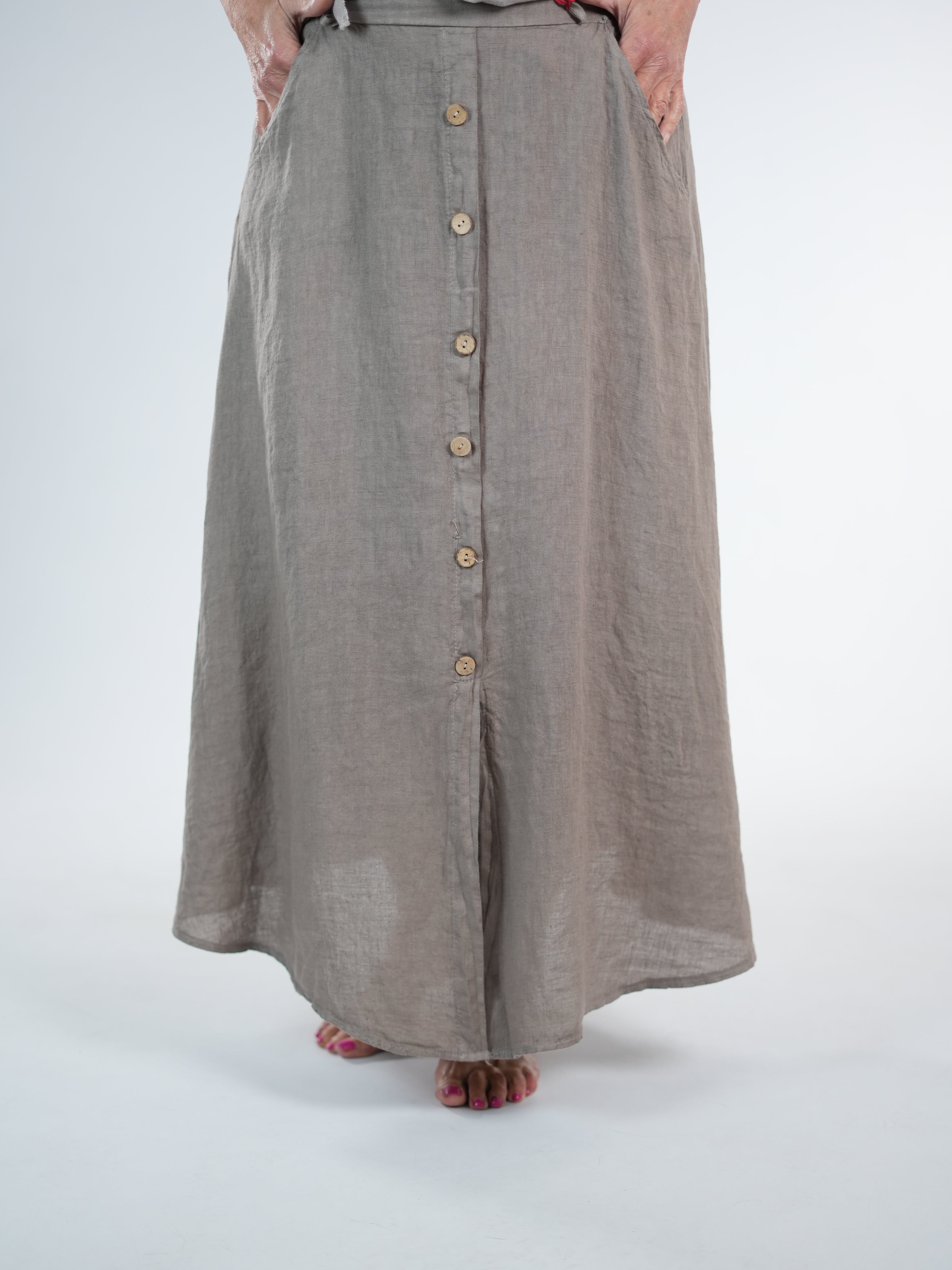 Marion ist 172cm groß und trägt Größe 40/42. Sie ist auf allen Produktbildern zu sehen und präsentiert die wunderschönen onesize Outfits.