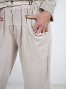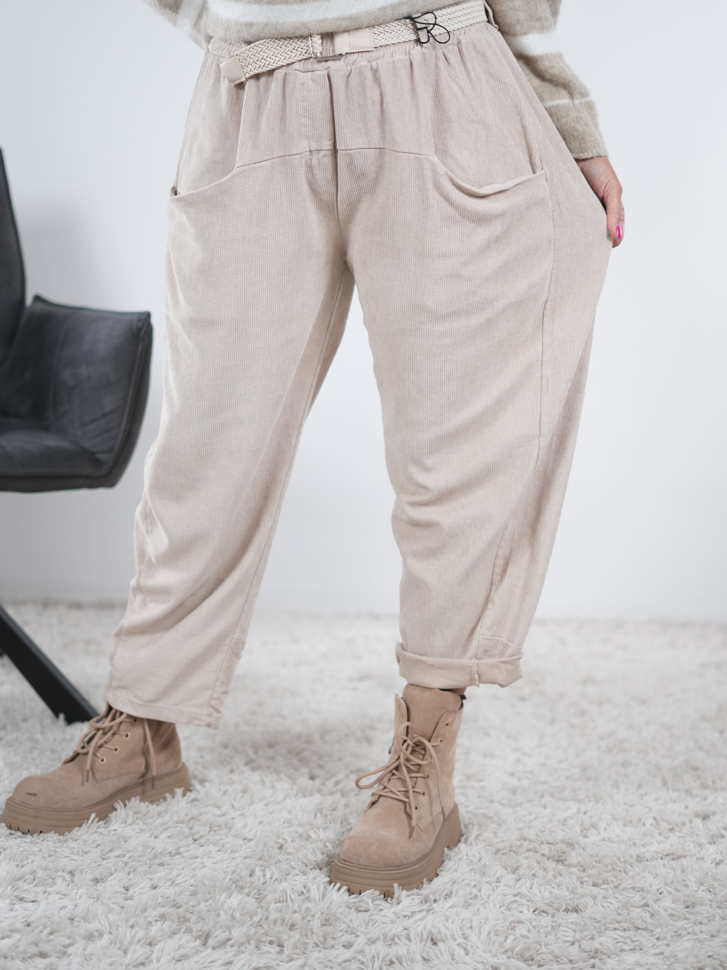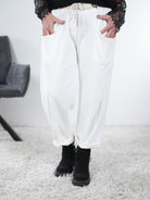 Marion ist 172cm groß und trägt Größe 40/42. Sie ist auf allen Produktbildern zu sehen und präsentiert die wunderschönen onesize Outfits.