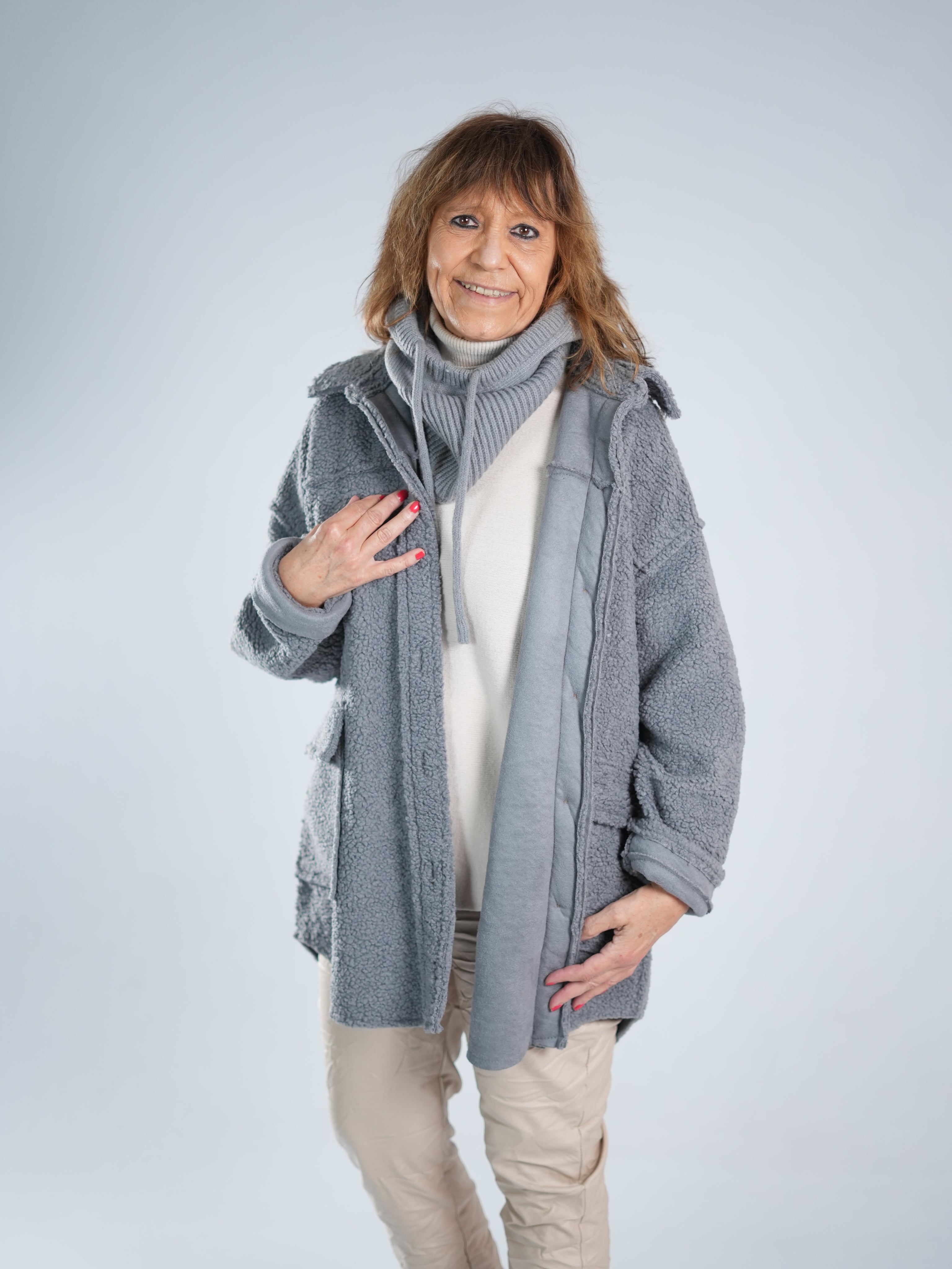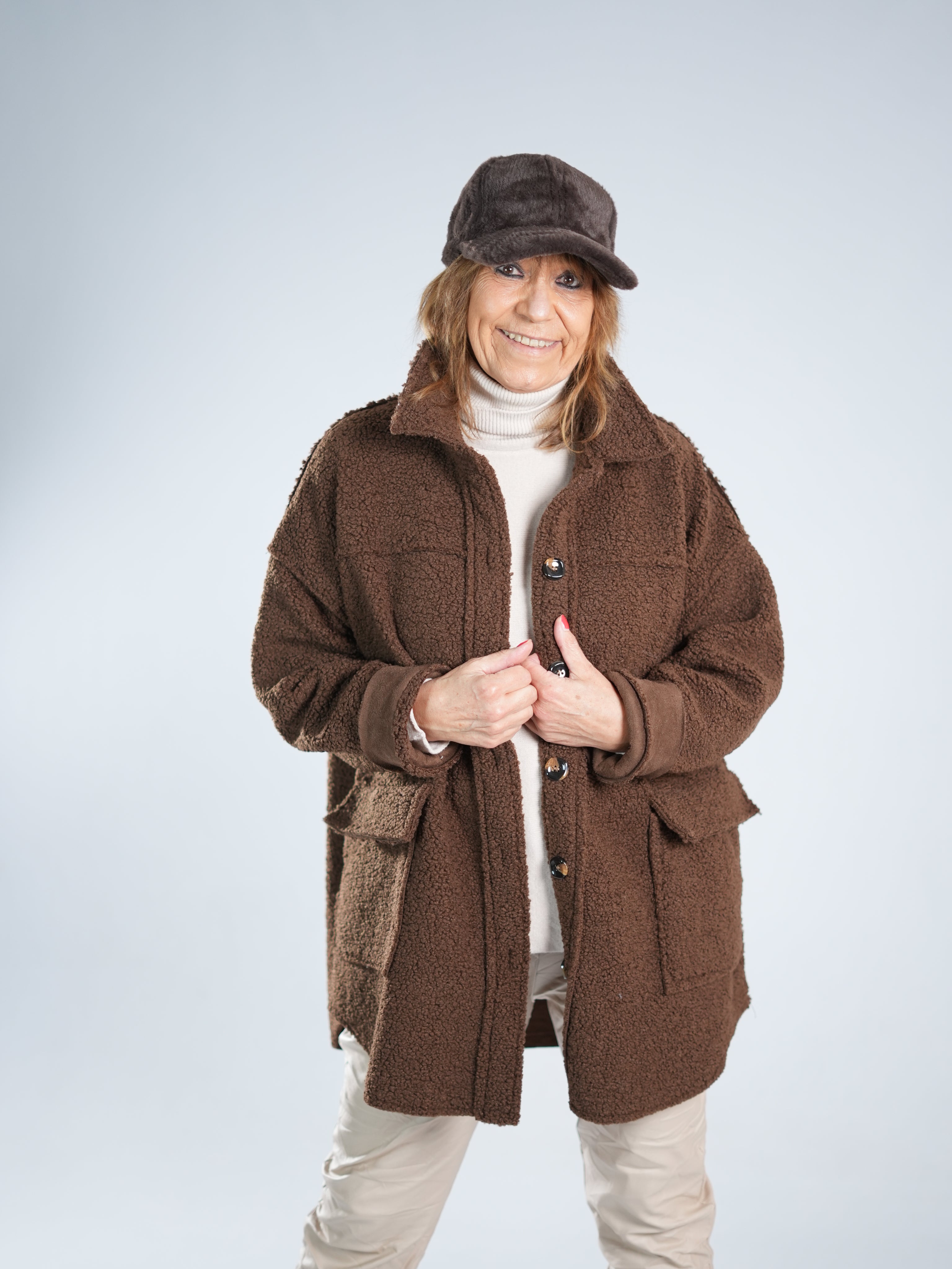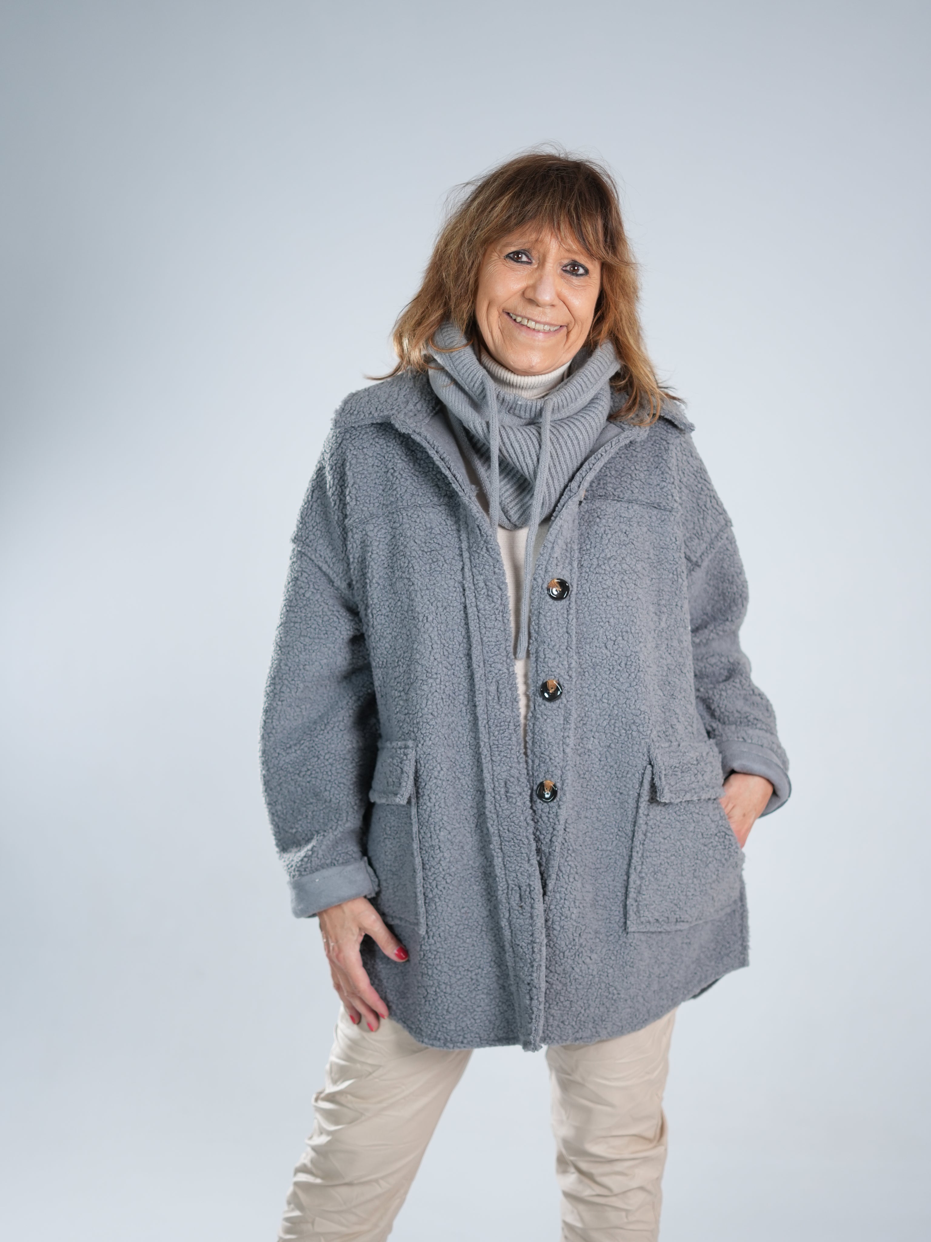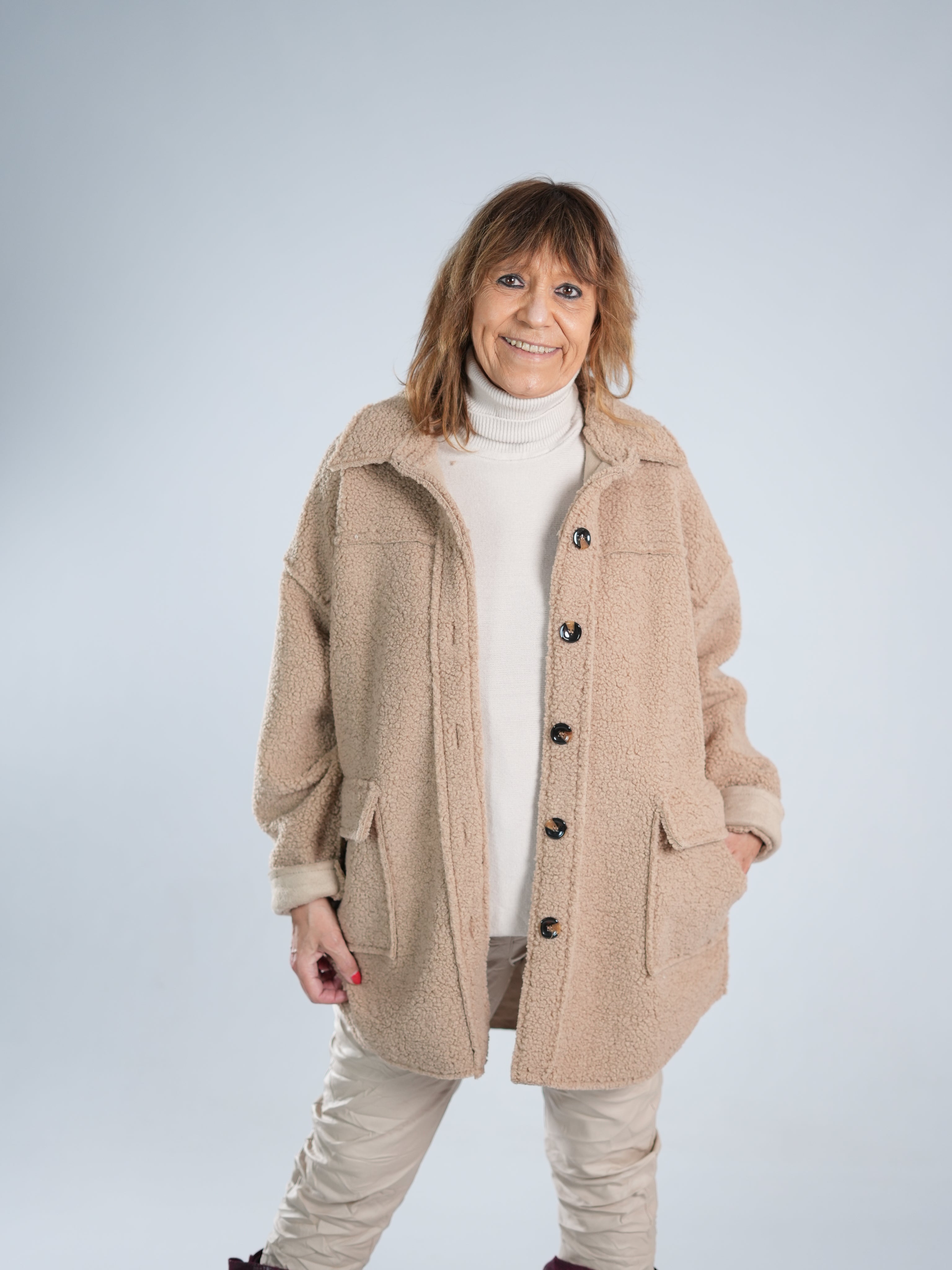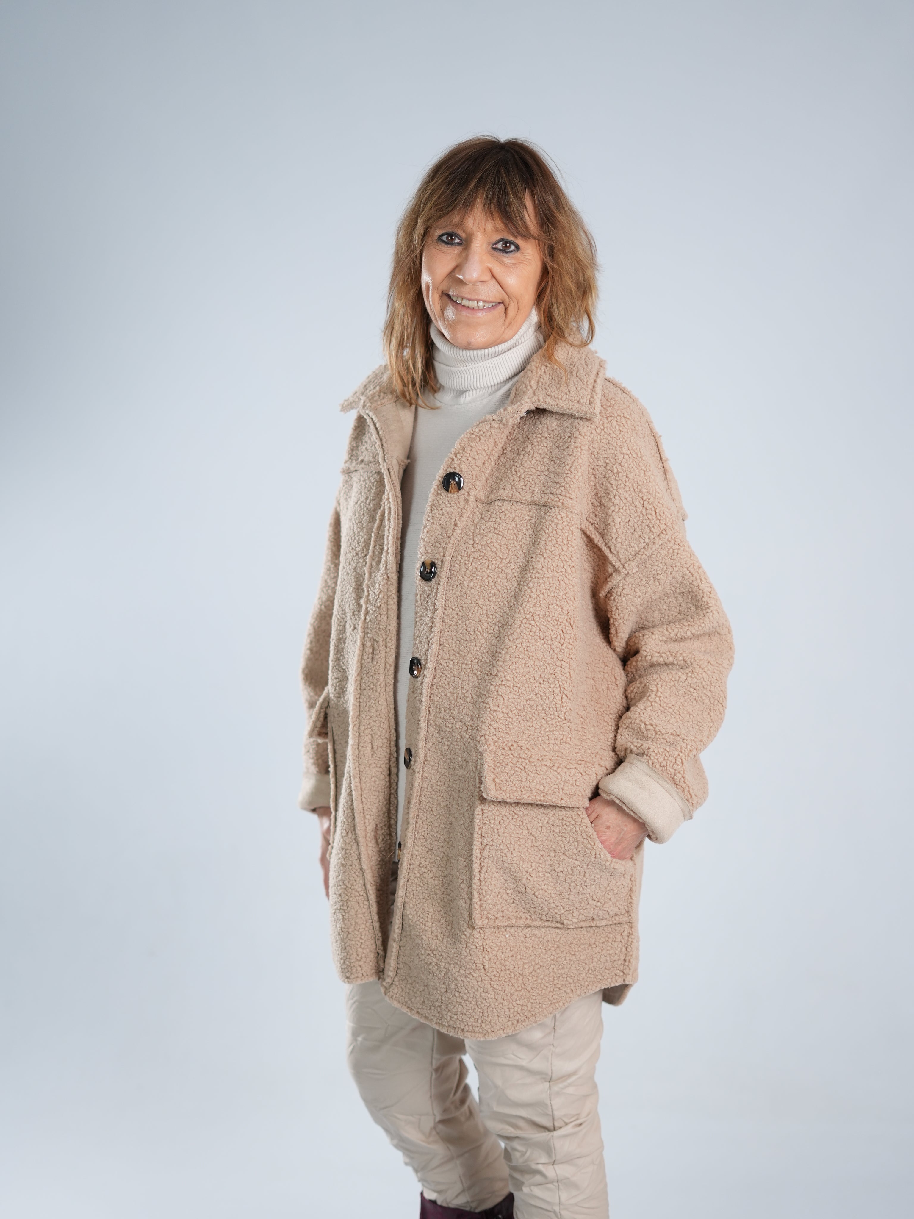 Marion ist 172cm groß und trägt Größe 40/42. Sie ist auf allen Produktbildern zu sehen und präsentiert die wunderschönen onesize Outfits.