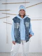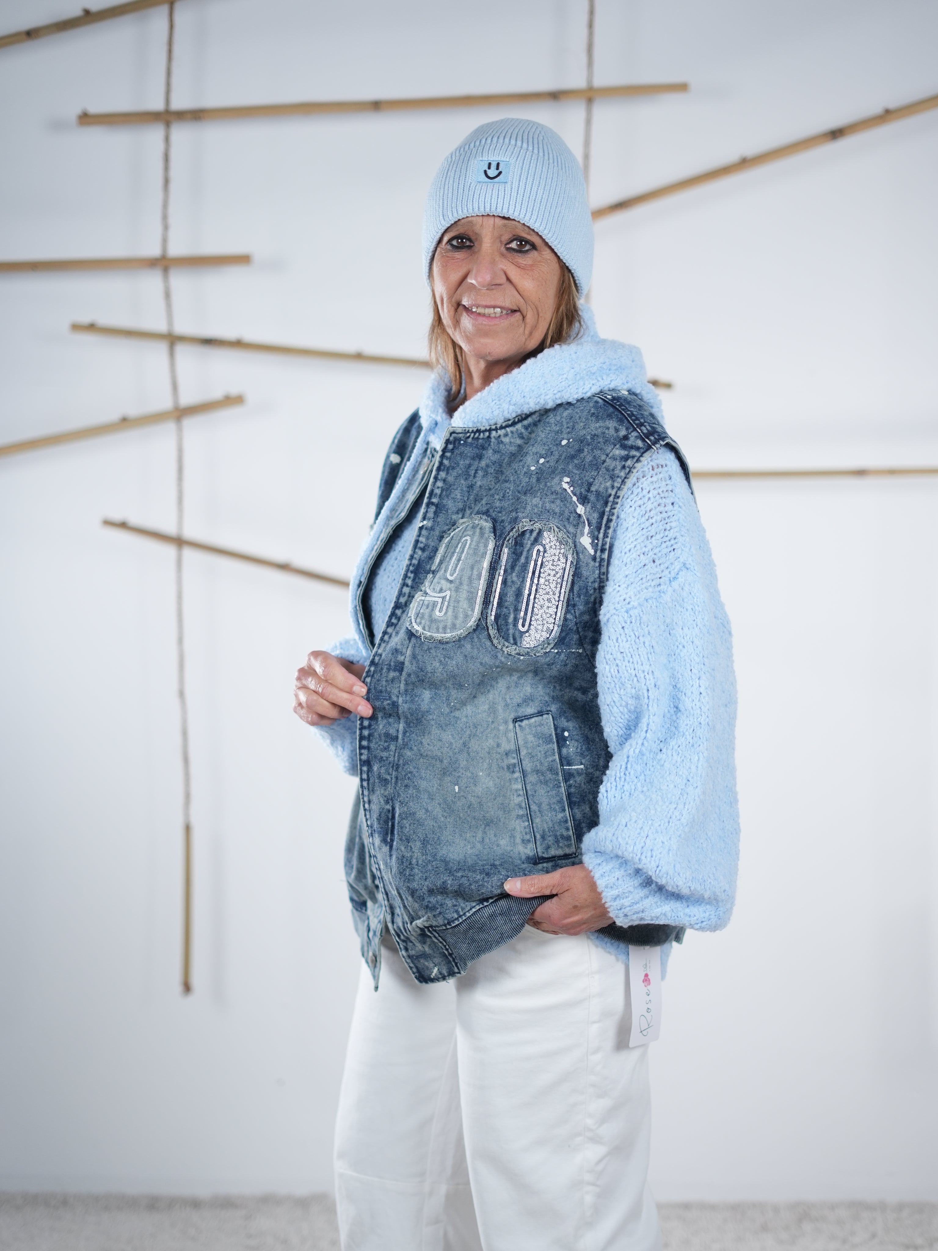 Marion ist 172cm groß und trägt Größe 40/42. Sie ist auf allen Produktbildern zu sehen und präsentiert die wunderschönen onesize Outfits.