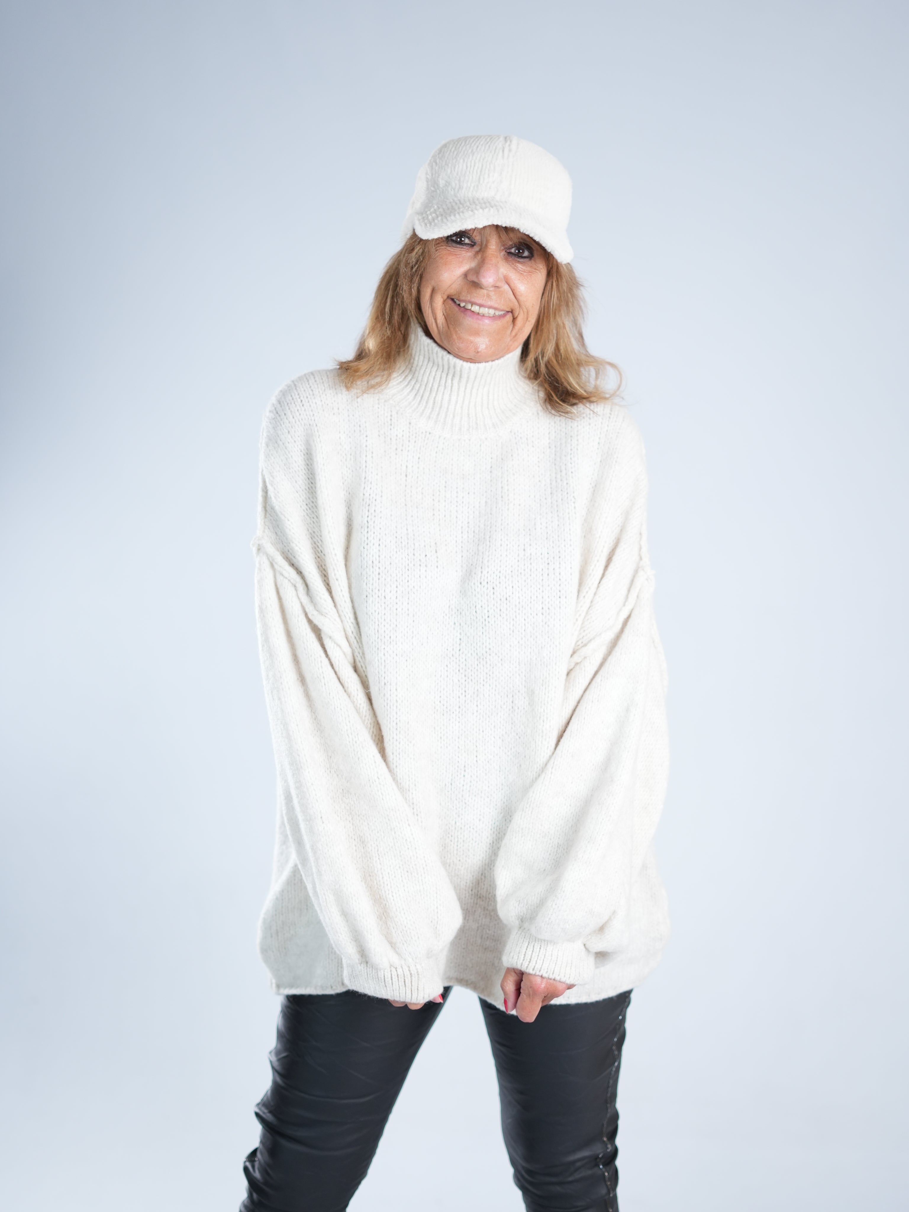 Marion ist 172cm groß und trägt Größe 40/42. Sie ist auf allen Produktbildern zu sehen und präsentiert die wunderschönen onesize Outfits.