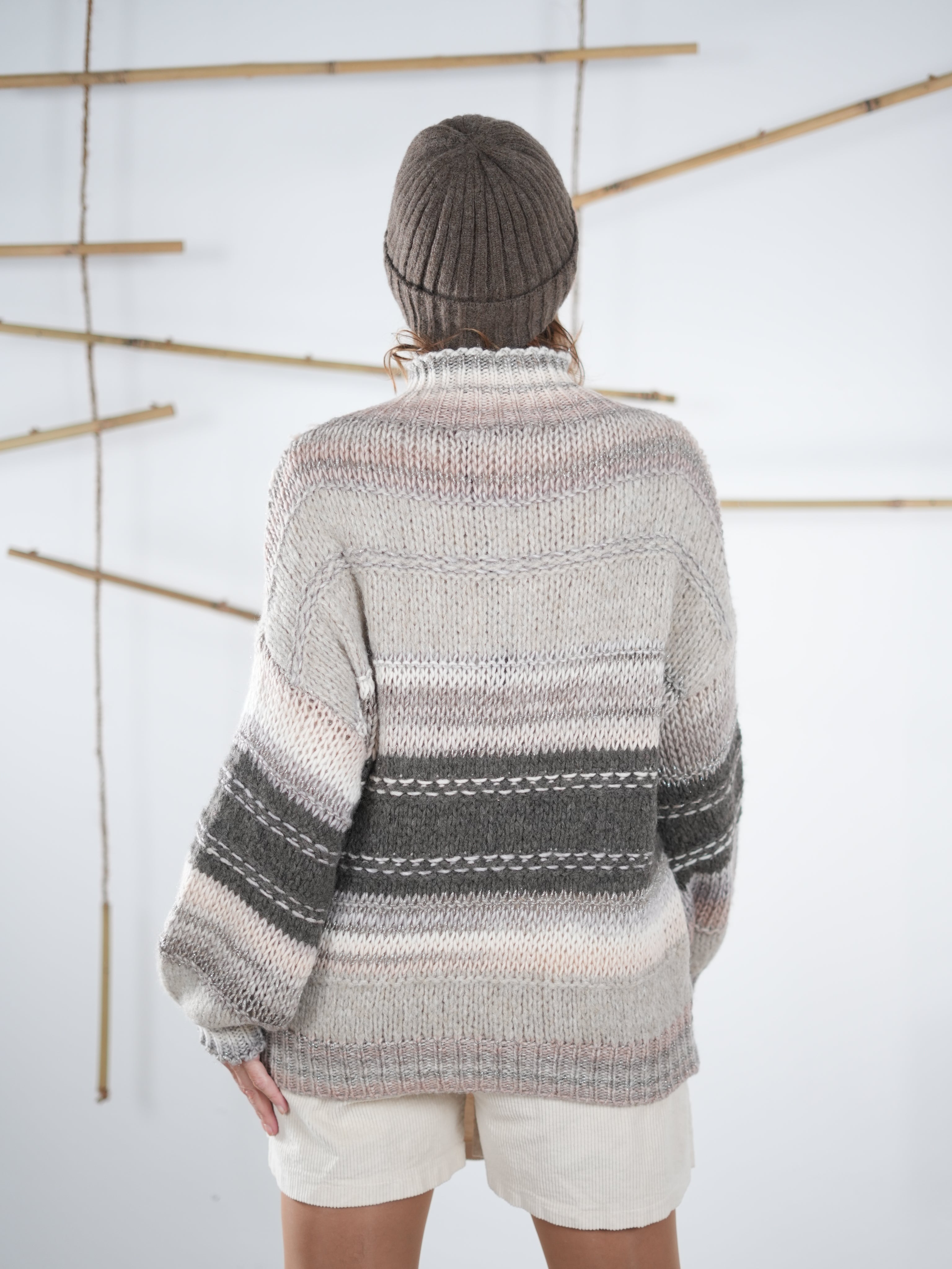 Gestreifter Strickpulli mit Lurex