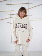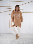 Marion ist 172cm groß und trägt Größe 40/42. Sie ist auf allen Produktbildern zu sehen und präsentiert die wunderschönen onesize Outfits.
