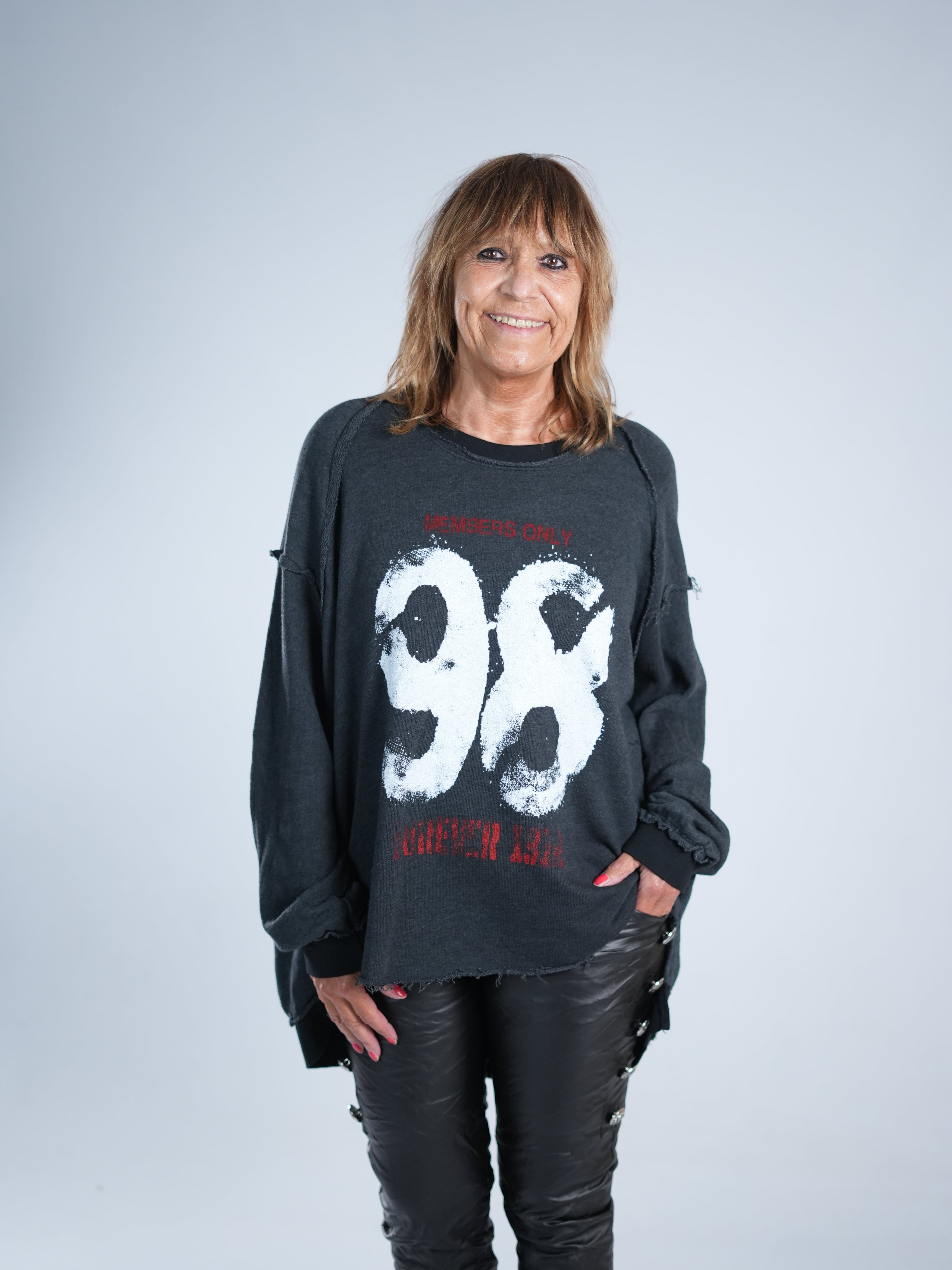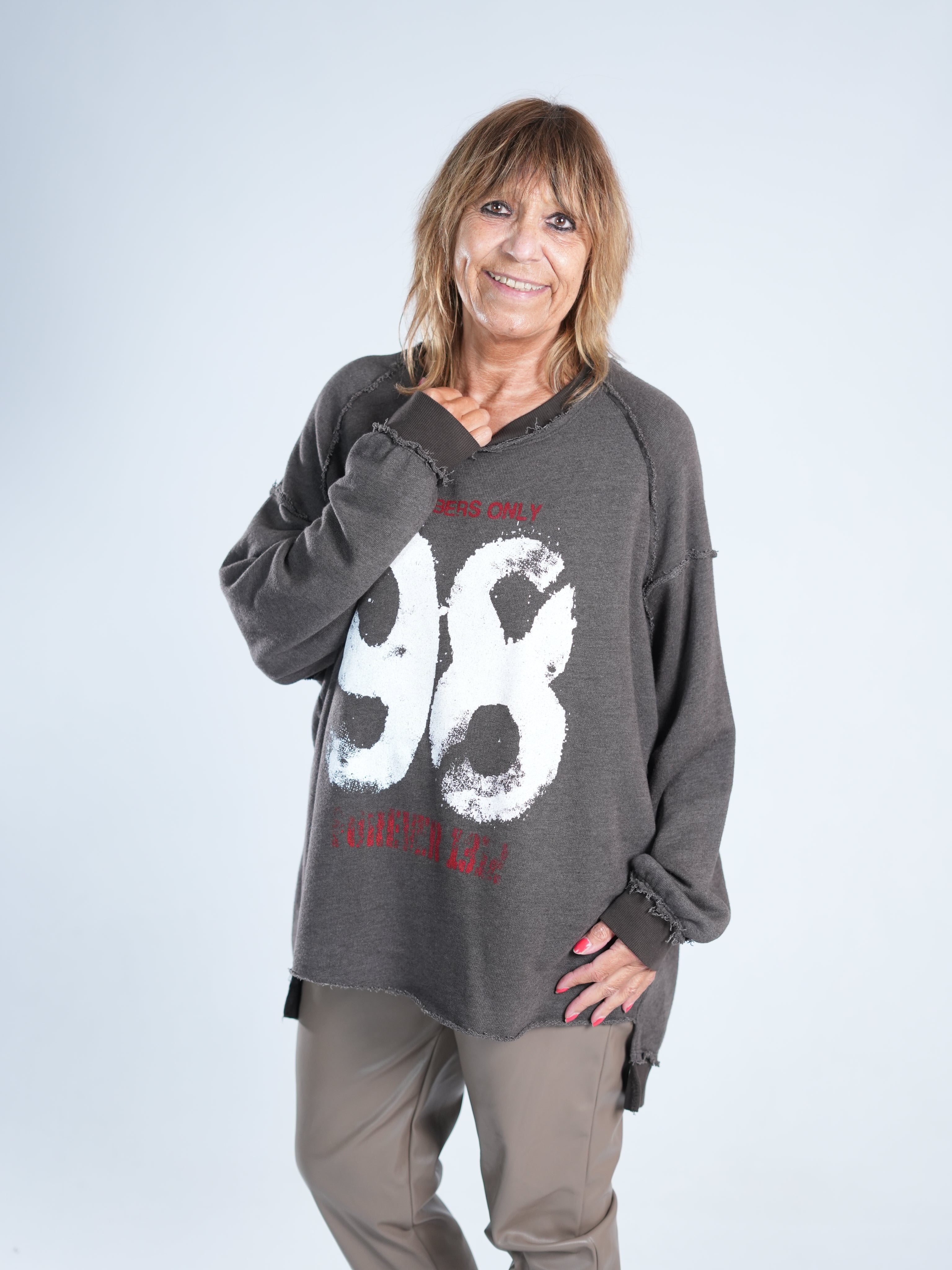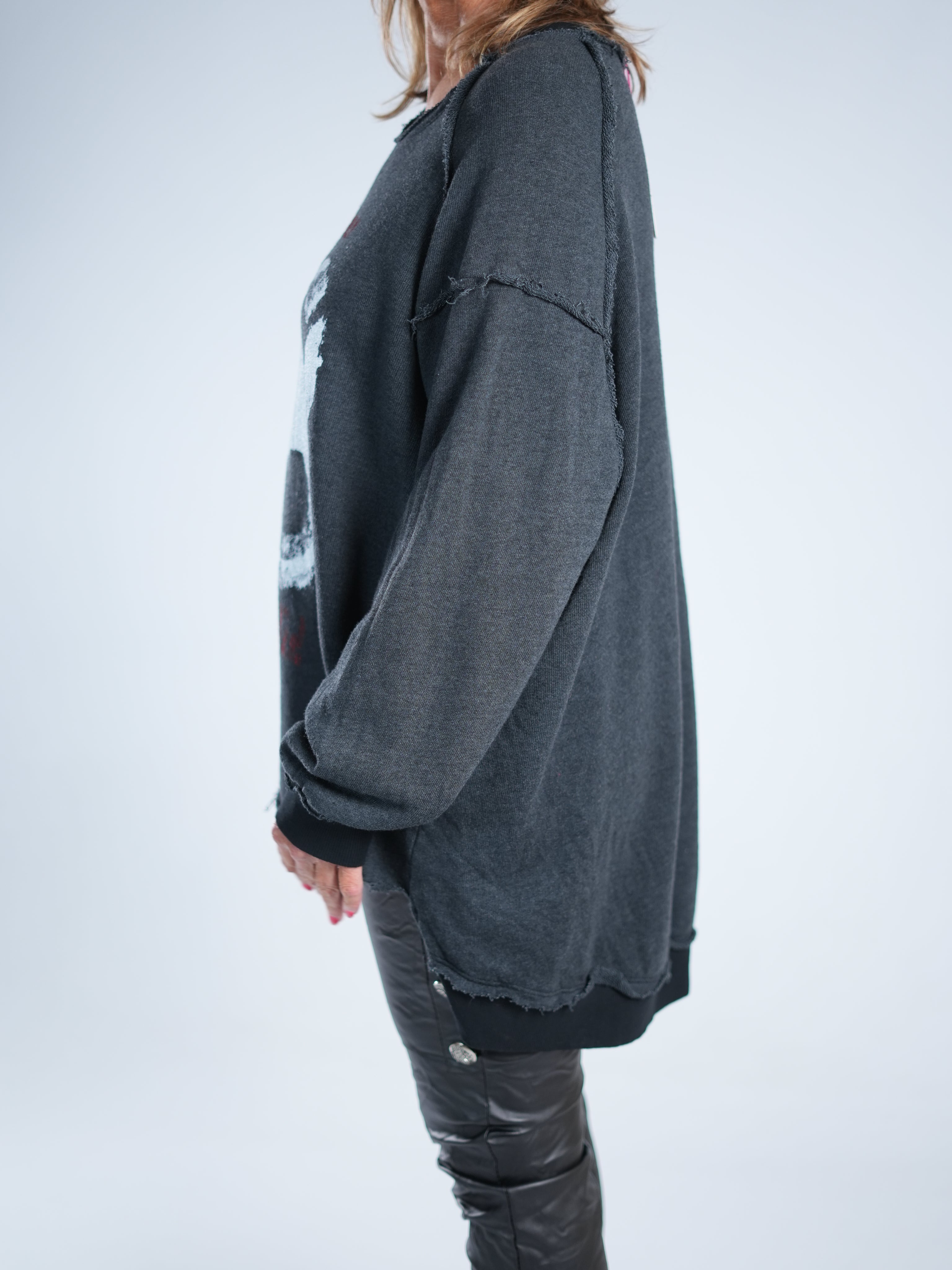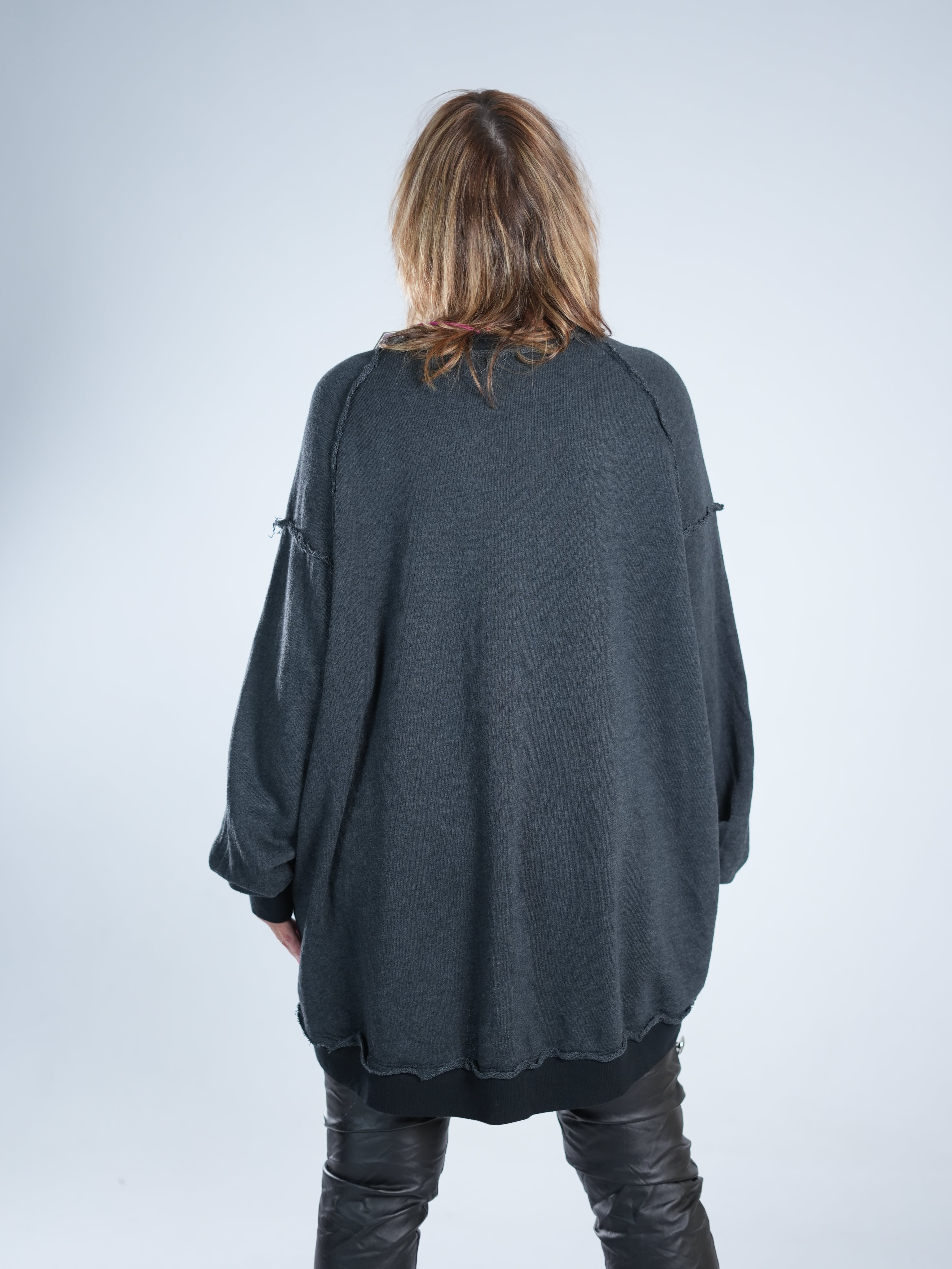 Überschnittene Ärmel, ausgefranste Abschlüsse und Bündchen an den Ärmeln runden den Look ab und machen ihn zum idealen Teil für entspannte Outfits.