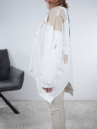 Marion ist 172cm groß und trägt Größe 40/42. Sie ist auf allen Produktbildern zu sehen und präsentiert die wunderschönen onesize Outfits.