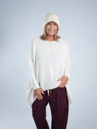Marion ist 172cm groß und trägt Größe 40/42. Sie ist auf allen Produktbildern zu sehen und präsentiert die wunderschönen onesize Outfits.