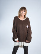 Marion ist 172cm groß und trägt Größe 40/42. Sie ist auf allen Produktbildern zu sehen und präsentiert die wunderschönen onesize Outfits.