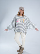 Marion ist 172cm groß und trägt Größe 40/42. Sie ist auf allen Produktbildern zu sehen und präsentiert die wunderschönen onesize Outfits.