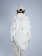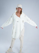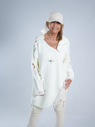 Marion ist 172cm groß und trägt Größe 40/42. Sie ist auf allen Produktbildern zu sehen und präsentiert die wunderschönen onesize Outfits.