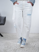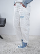 Diese weiße Bottle Jeans hat genau die richtige Mischung aus lässig und besonders.