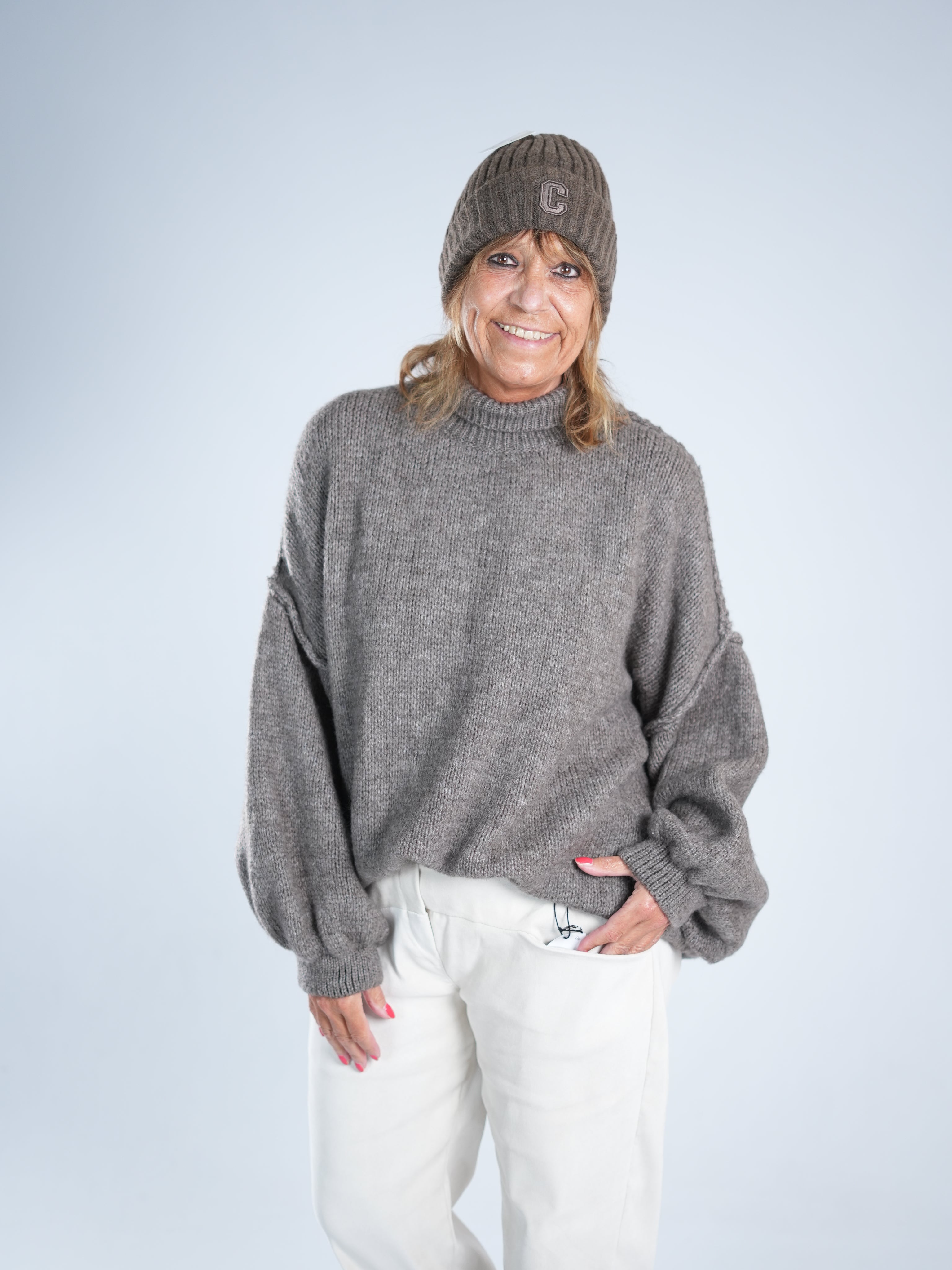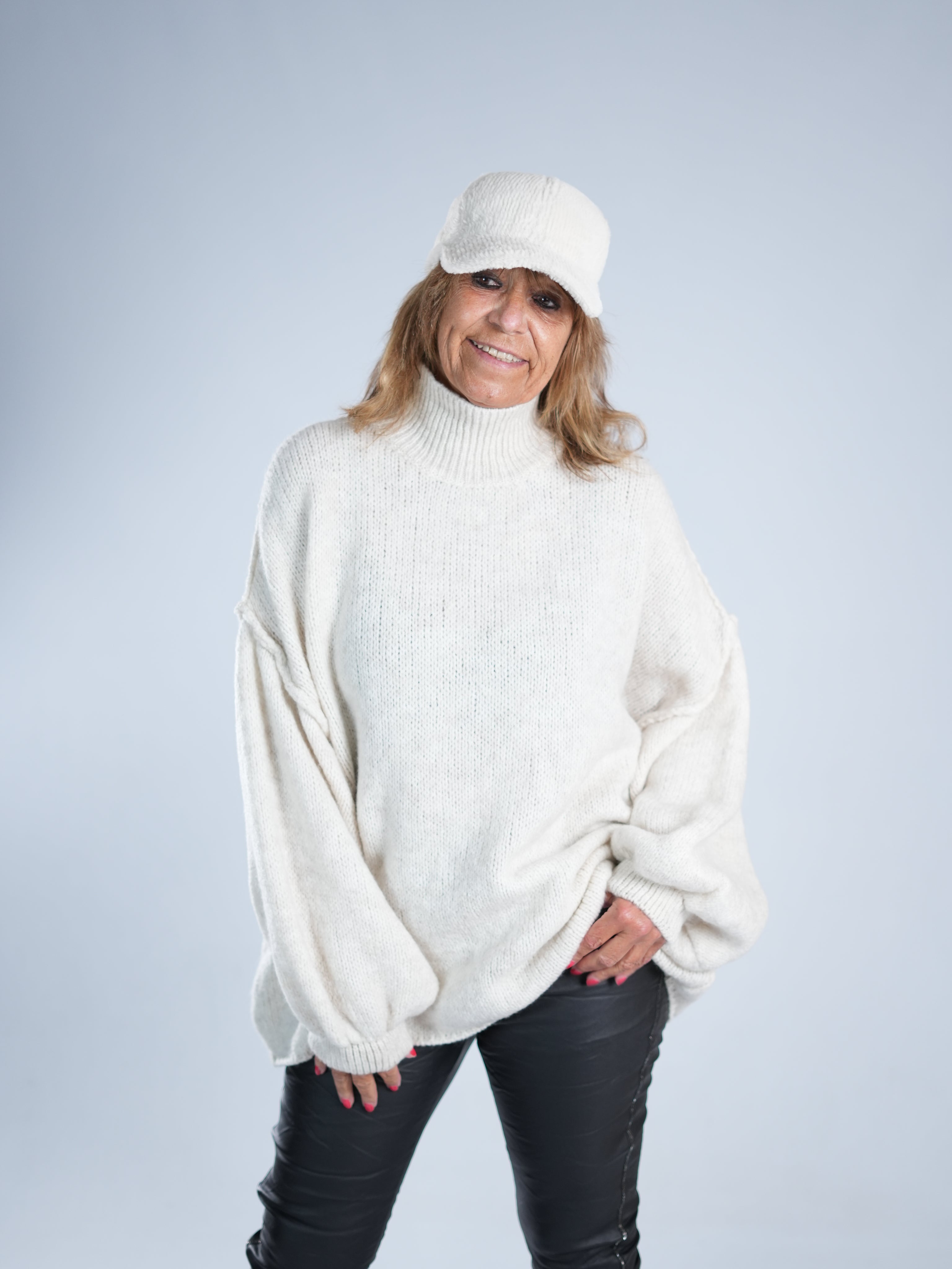 Marion ist 172cm groß und trägt Größe 40/42. Sie ist auf allen Produktbildern zu sehen und präsentiert die wunderschönen onesize Outfits.