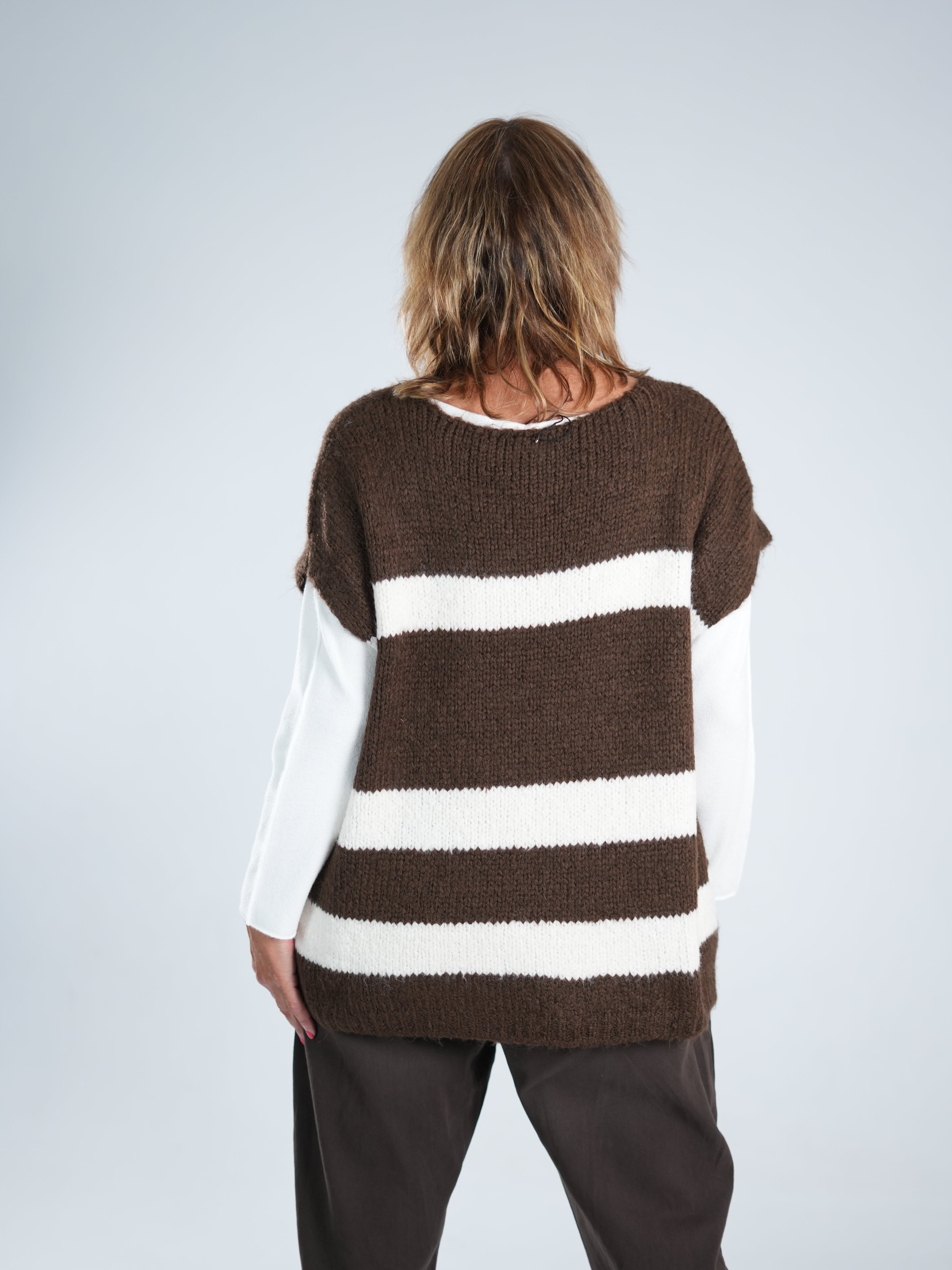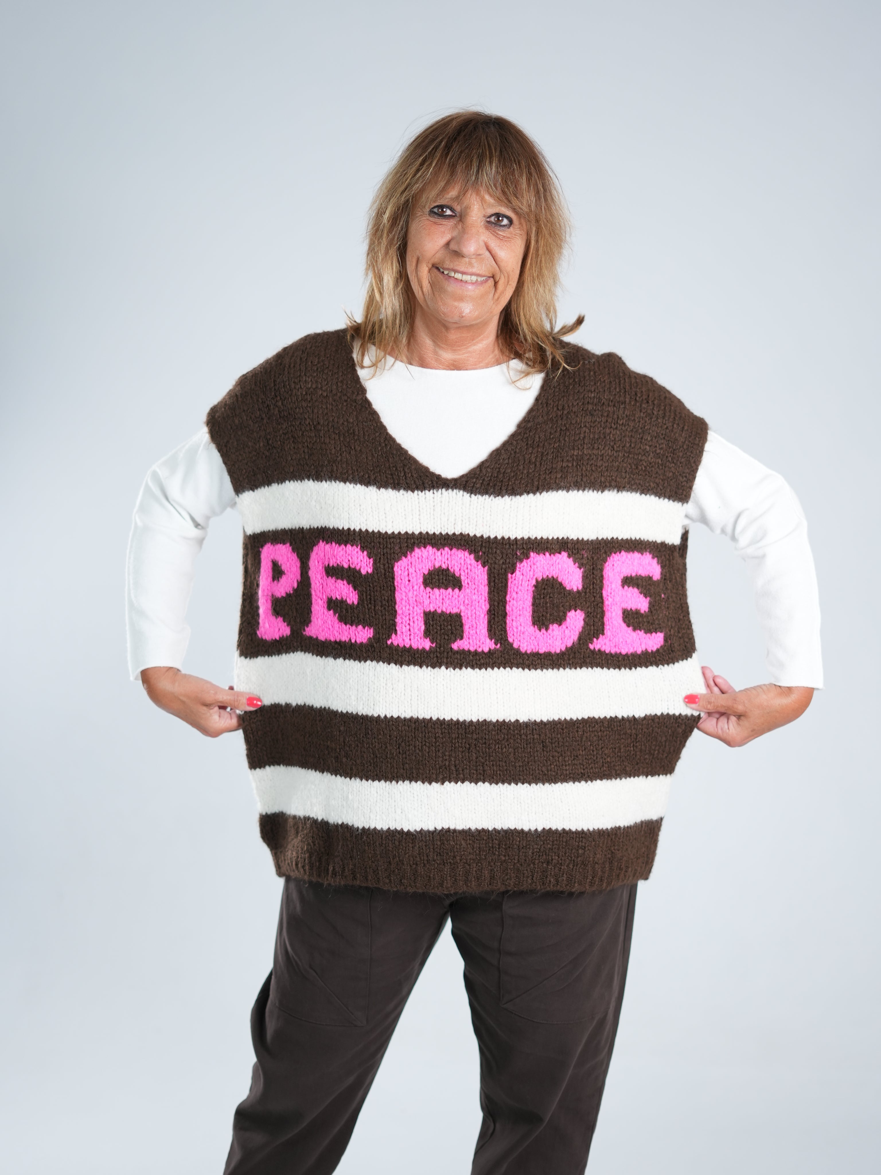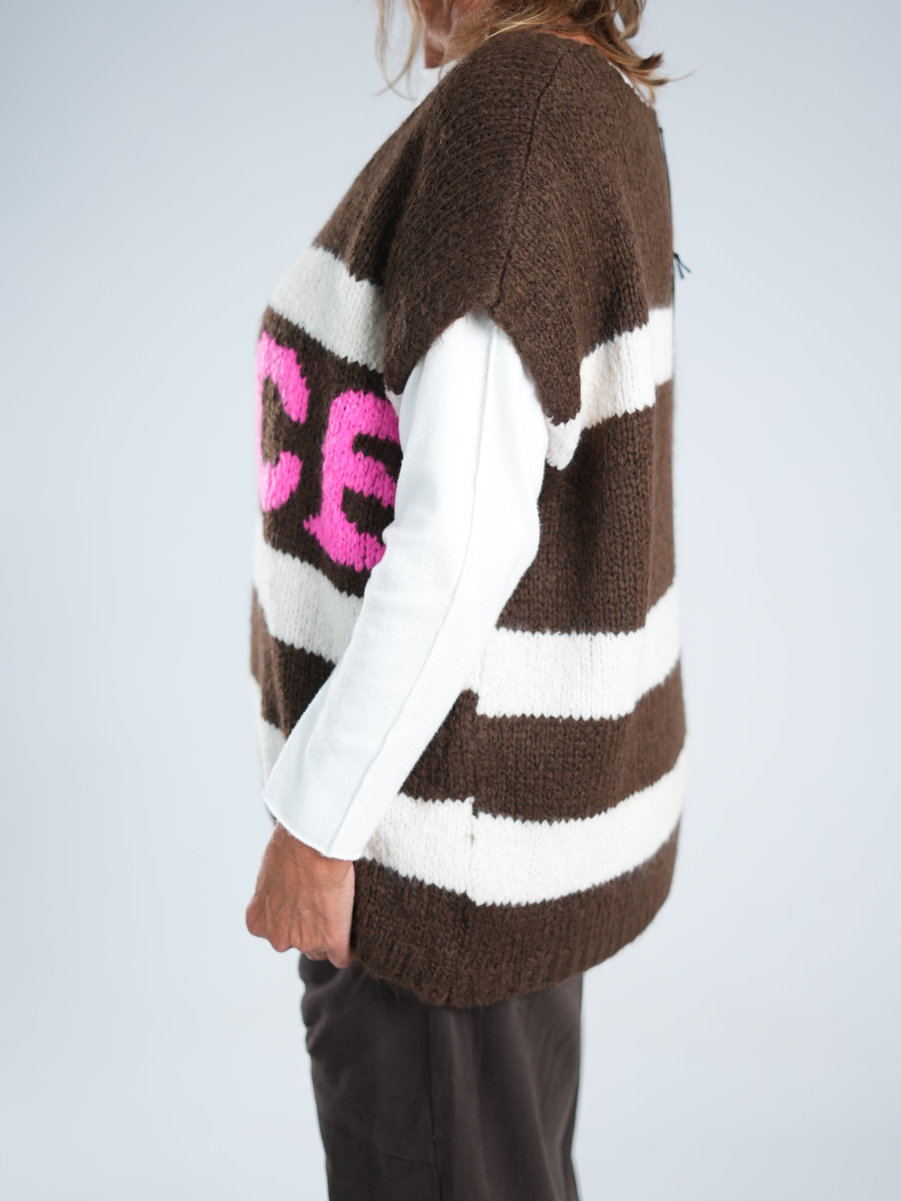 Dieser Pullunder begeistert mit seinem eingestrickten Schriftzug in Pink und bringt damit frische Farbe in dein Outfit. Der große V-Ausschnitt setzt einen schönen Akzent und lässt sich super mit Blusen oder Shirts kombinieren. Gerade geschnitten, trägt er sich lässig und unkompliziert – perfekt für stylische Layering-Looks.